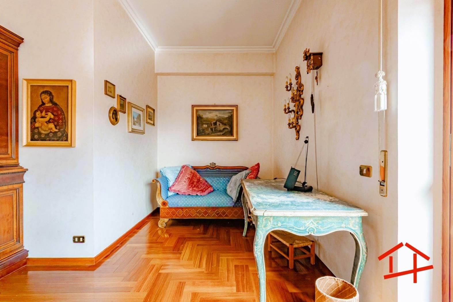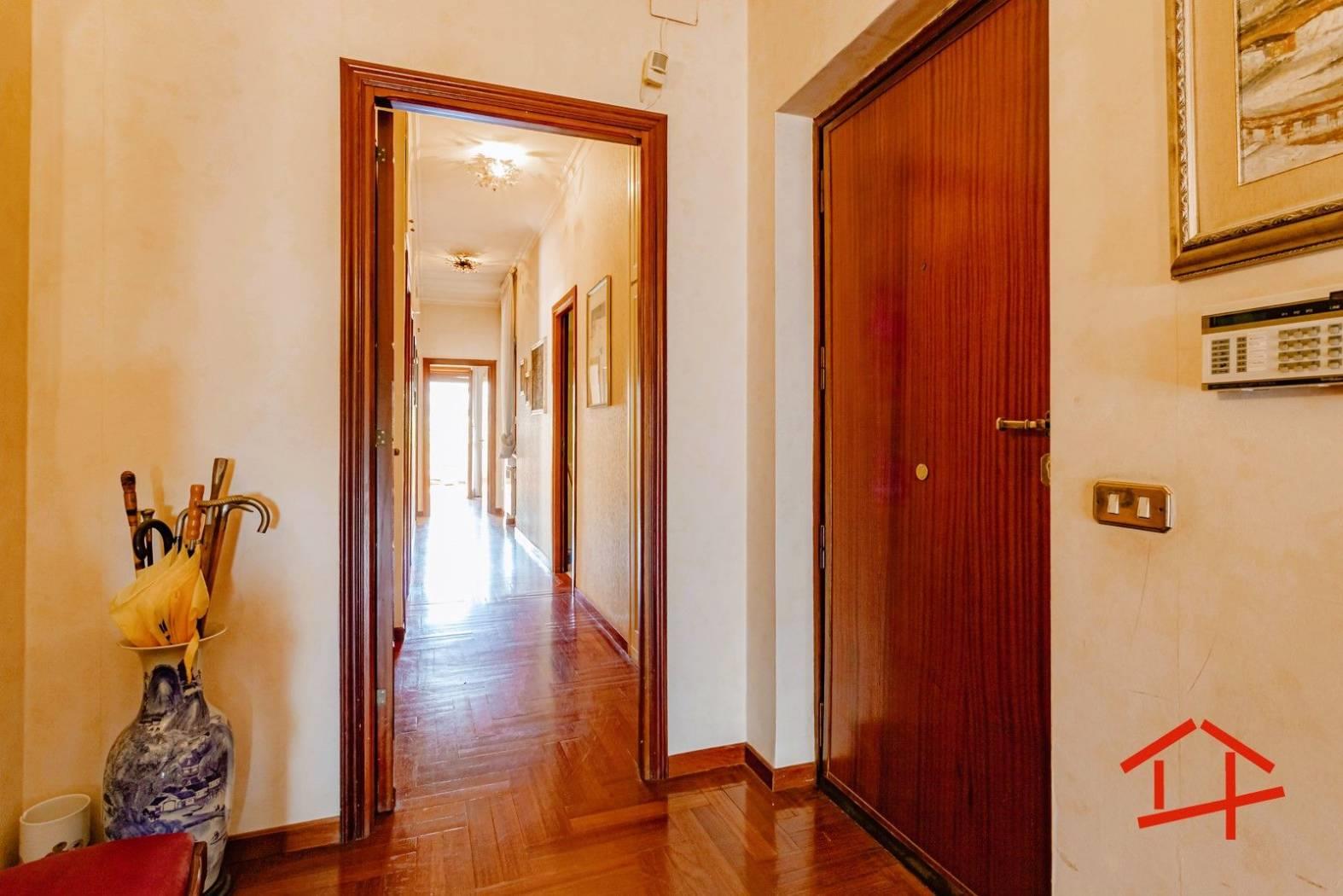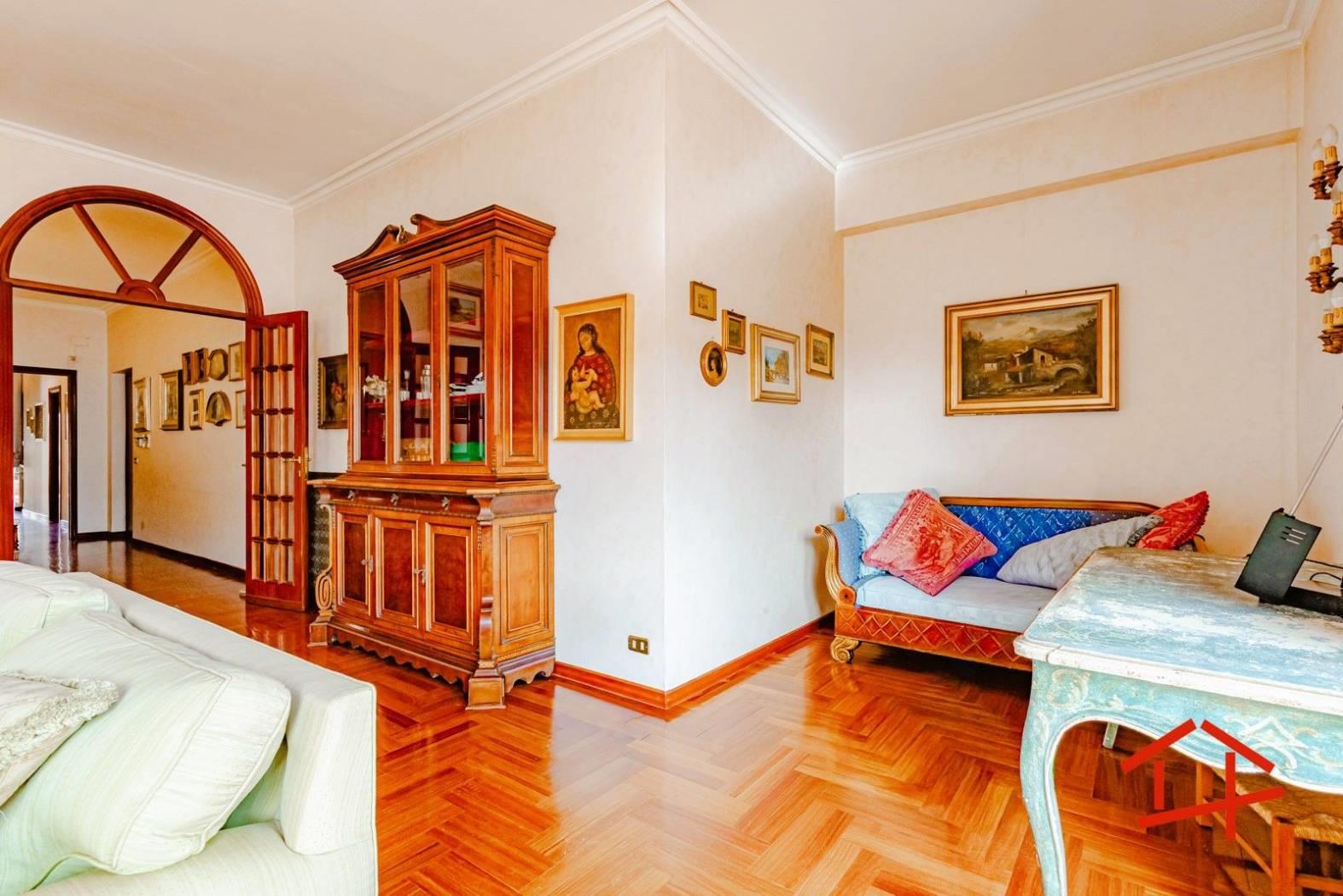 All'interno l'immobile si compone di salone doppio con accesso al terrazzo panoramico, cucina separata, funzionale e ben distribuita, con doppio accesso sia dalla zona living che dal corridoio, quattro camere da letto e doppi servizi finestrati.