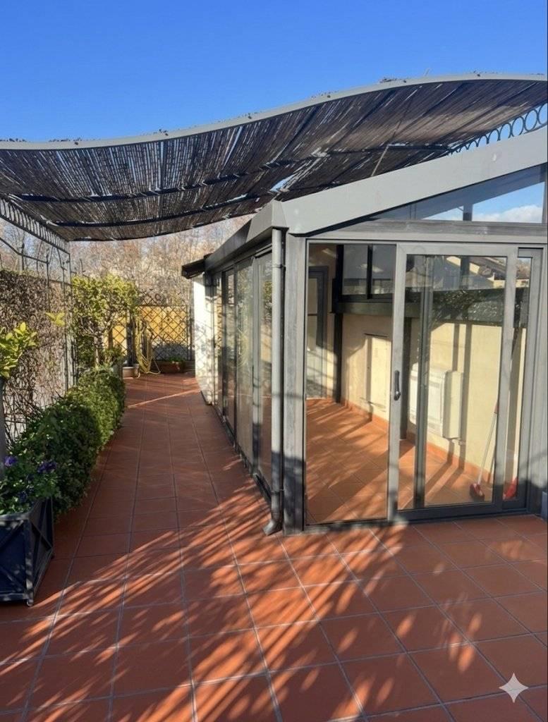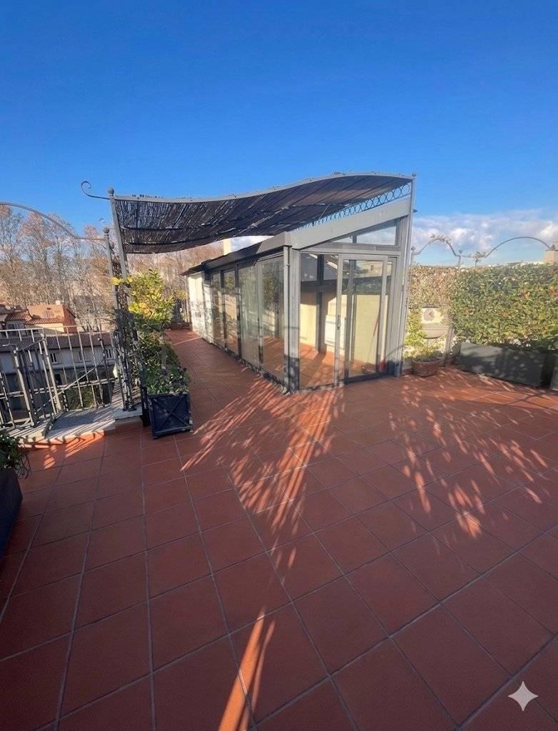 Proponiamo in affitto in un immobile di rappresentanza, completamente ristrutturato, un attico e superattico per un totale di 110 mq, oltre 50 mq di terrazza con bellissima vista panoramica. L'appartamento si compone di un piccolo ingresso, dal quale si accede ad una cameretta/studio con bagno, tramite una rampa di scale si giunge al livello superiore dove abbiamo un open space con zona soggiorno/pranzo e accesso al balcone di circa 10 mq, due piccole camere da letto, di cui una matrimoniale ed una singola, due bagni (uno con vasca ed uno con doccia), cucina arredata, ripostiglio. Dalla zona soggiorno, tramite una rampa di scale, si arriva al livello del superattico, dove si trova un piccolo studio con caminetto ed un terrazzo spazioso con una veranda e con un ripostiglio sotto-tetto. Aria condizionata ed aria calda autonome. Luminoso e silenzioso. Completamente ristrutturato con ottimi materiali, parquet, marmo. Porta blindata. Servizio di portineria e ascensore. L'appartamento è disponibile da subito, con possibilità anche di contratto a società. Il canone è di 6.500 euro, oltre oneri condominiali. No uso recettivo. TELEFONARE SOLO A ISABELLA 337/554053
