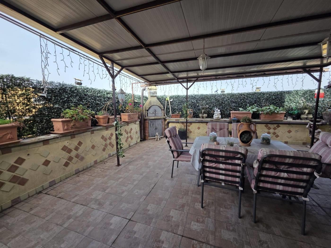 Completa la proprietà lo splendido terrazzo con pergolato e tende da sole di circa 50 Mq con una vista panoramica e ottima esposizione, ideale per trascorrere le serate estive.