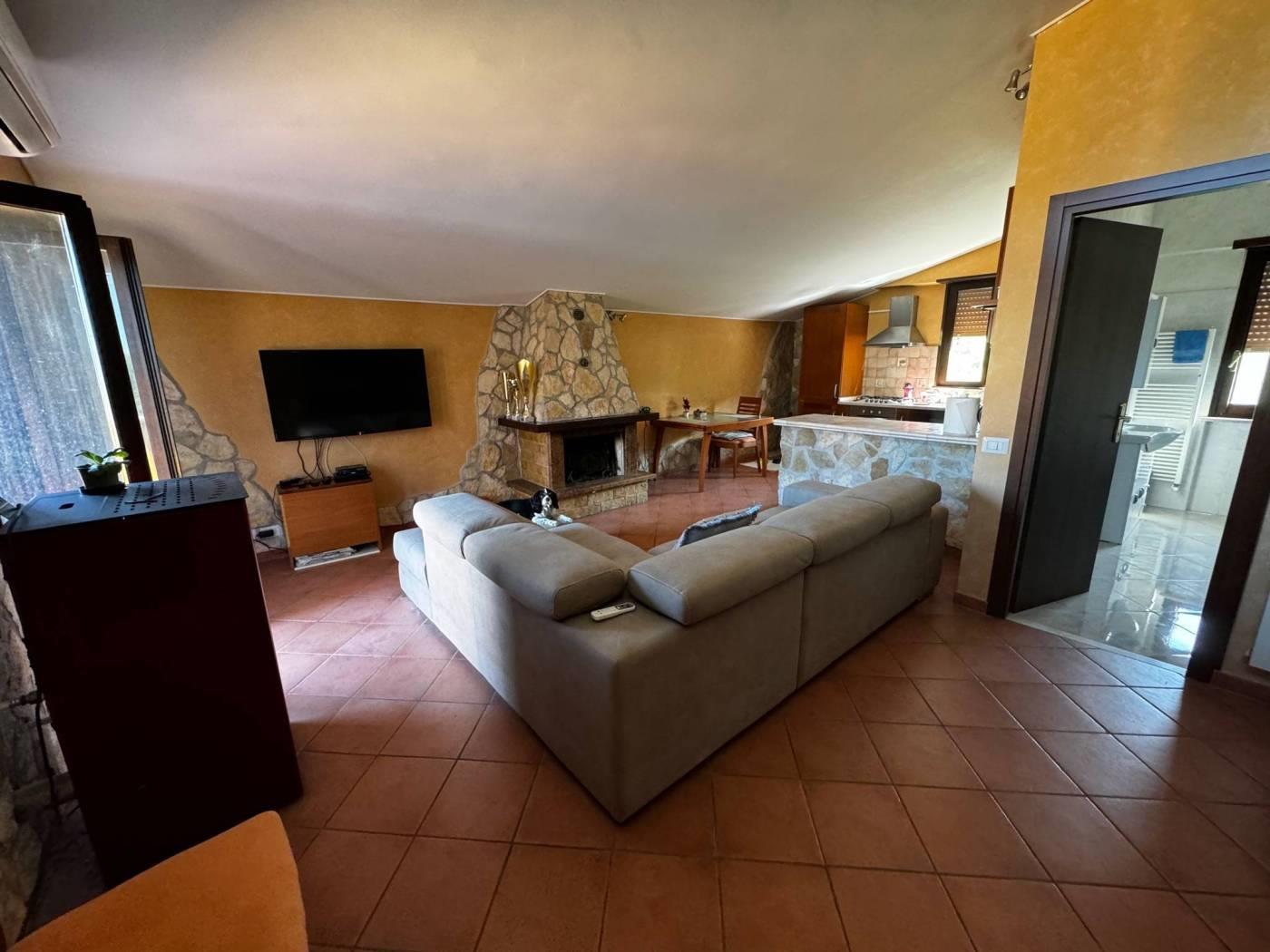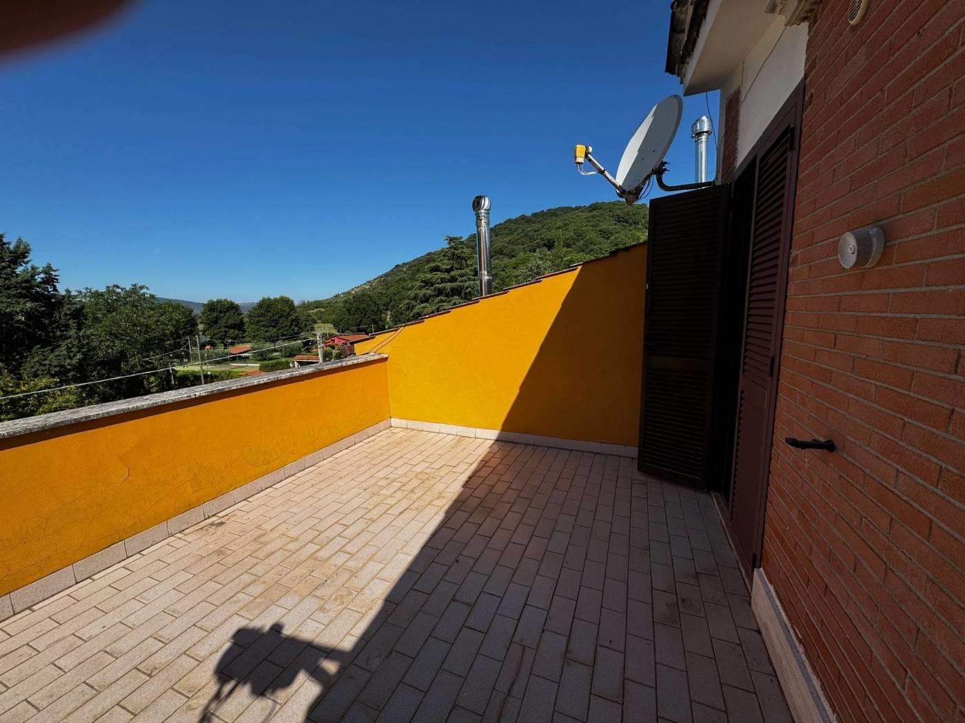 Castel Madama, in posizione collinare con ottima luminosità interna, all'interno di un piccolo fabbricato di sole tre unità immobiliari, proponiamo in vendita un attico completamente ristrutturato ed internamente composto da ampio salone con camino ed ampia cucina a vista, disimpegno, due camere, bagno e due terrazzi.