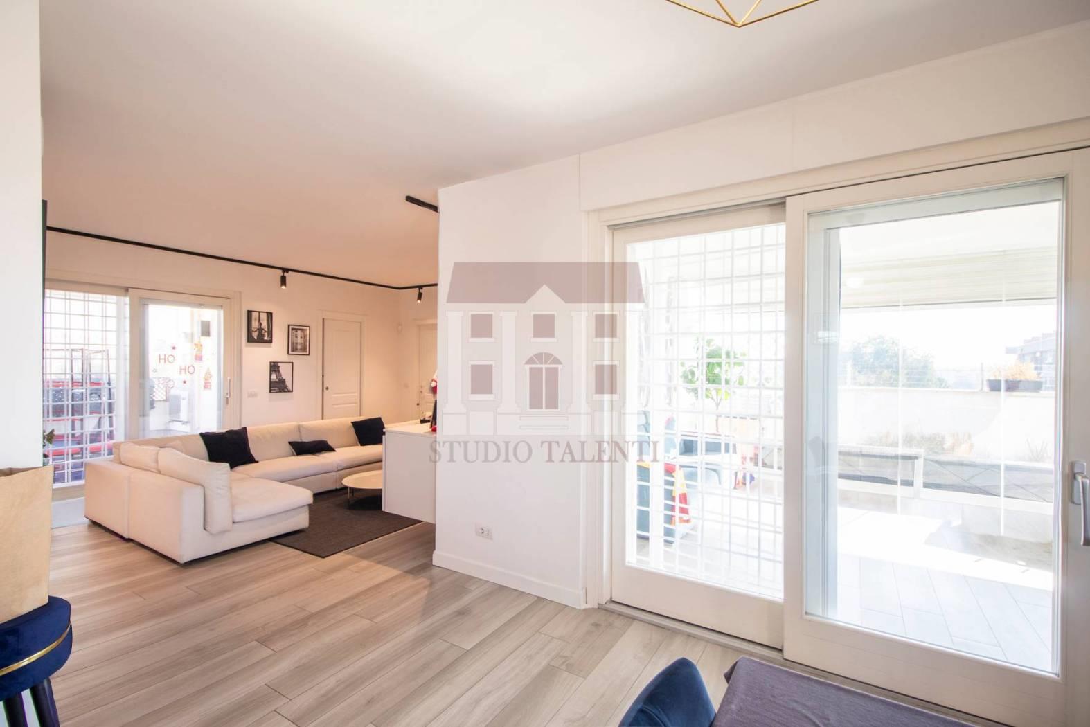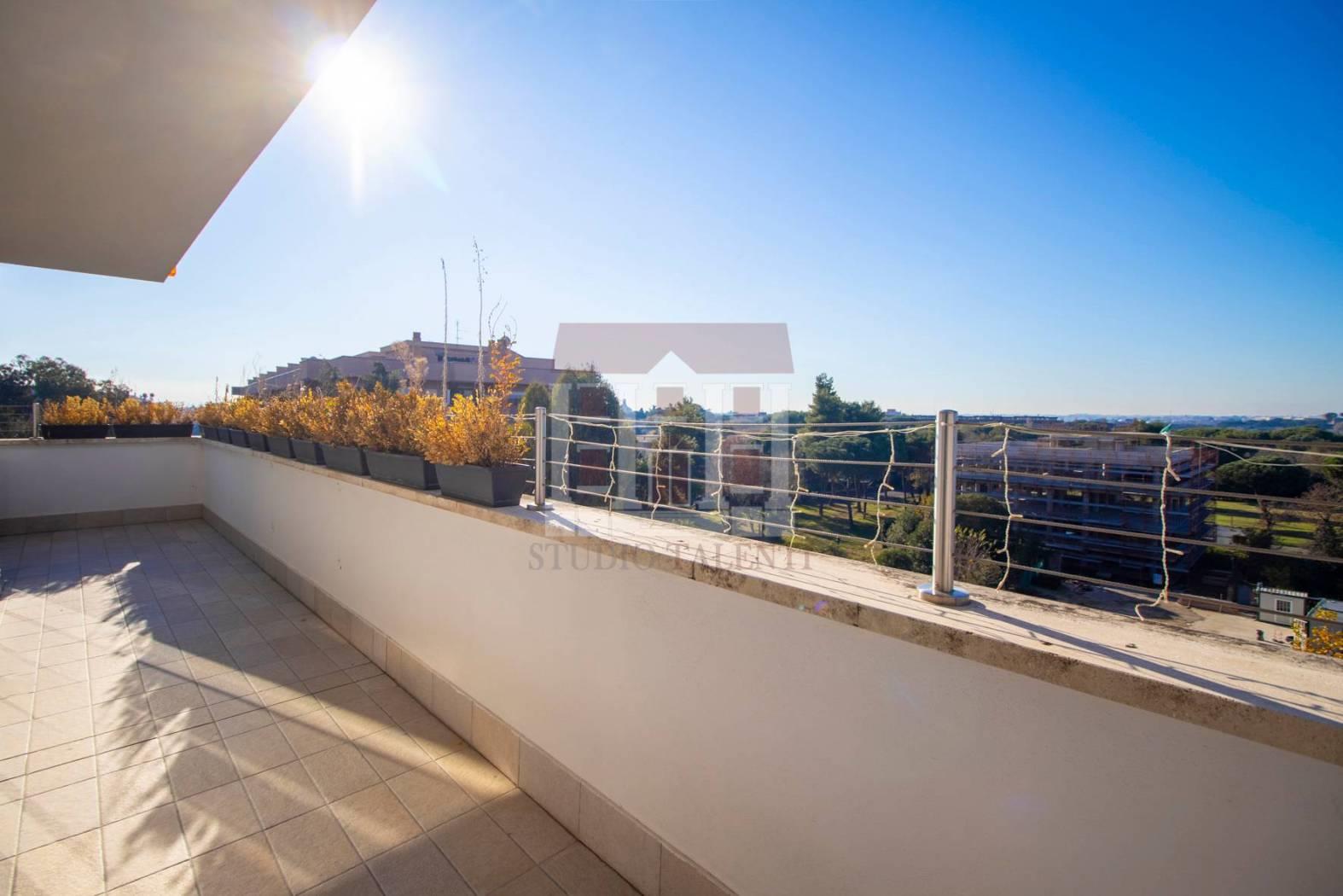 Via Peirce- Attico esclusivo di grande pregio, caratterizzato da spazi ampi e luminosi e da eccellenti rifiniture. L’abitazione si apre su un magnifico salone doppio, ideale per ricevere ospiti e vivere momenti di rappresentanza, con affacci diretti sugli spazi esterni. La zona notte è composta da tre camere da letto, tutte ben dimensionate e confortevoli, e da tre bagni moderni e finemente rifiniti. Completa la proprietà un’ampia cabina armadio, funzionale ed elegante. Il vero punto di forza dell’attico è l’ampio terrazzo principale, perfetto per vivere all’aperto in totale privacy, affiancato da due terrazzi più piccoli che donano ulteriore luminosità e vivibilità agli ambienti interni. Le ottime rifiniture, curate nei minimi dettagli, conferiscono all’immobile un elevato livello qualitativo. Completano la proprietà tre comodi box auto, un valore aggiunto raro e prezioso. Studio Talenti Srl, via Franco Sacchetti n° 6/b, proponiamo valutazioni gratuite e senza impegno, appartamenti, locali commerciali, box, uffici ecc. , in vendita e locazione, chiamateci per un appuntamento 0687135333 – 0687132455, e seguiteci sul nostro sito internet www.studiotalenti.com, sulla pagina Facebook Studio Talenti Srl e su Instagram @studiotalenti1. I dati si intendono corretti ma non garantiti. La presente non costituisce, in nessun caso, documento contrattuale. ceg IPE 175 kWh/m²