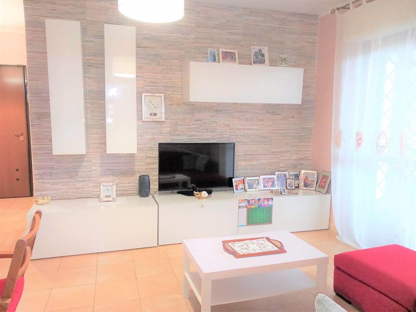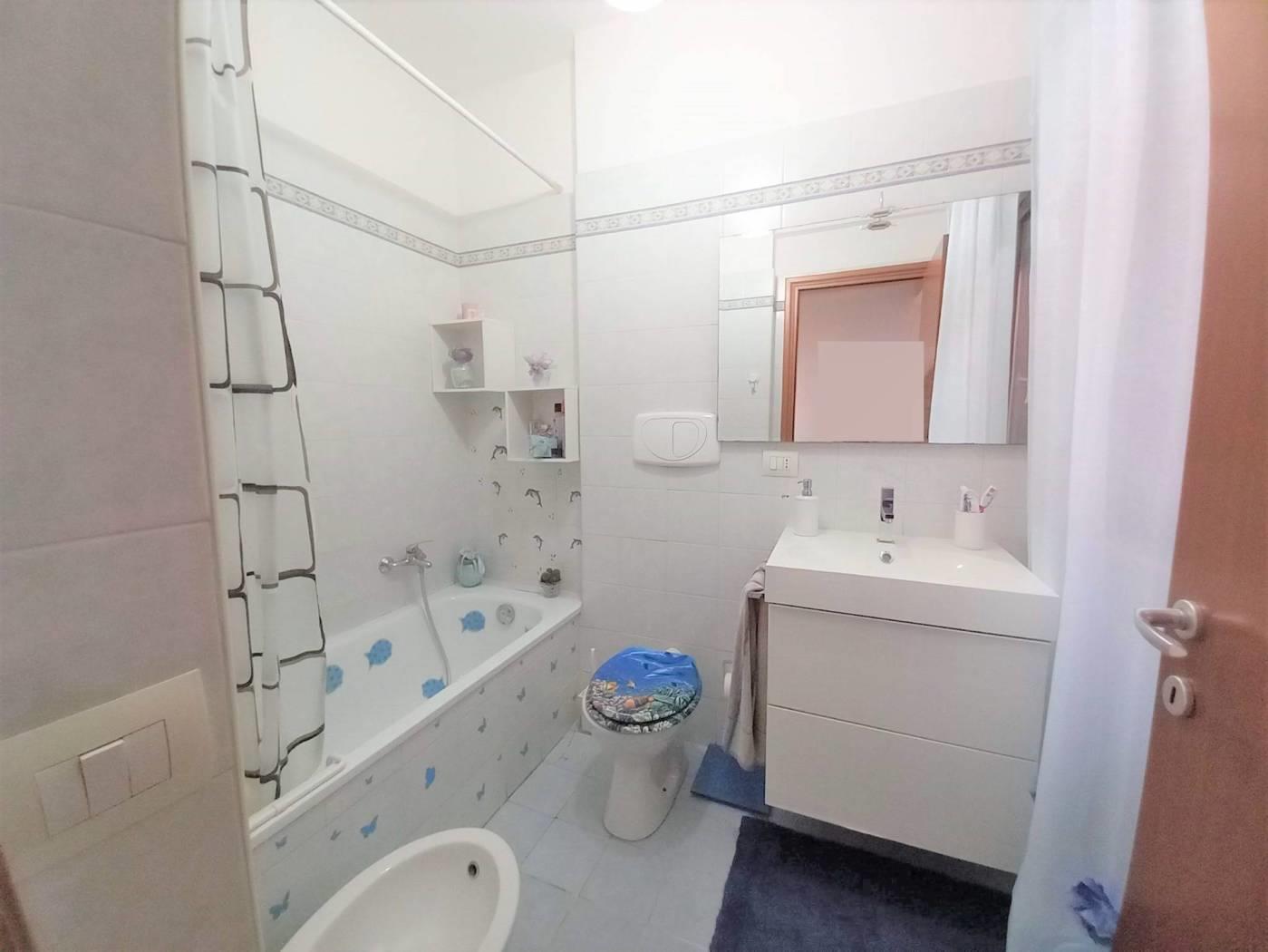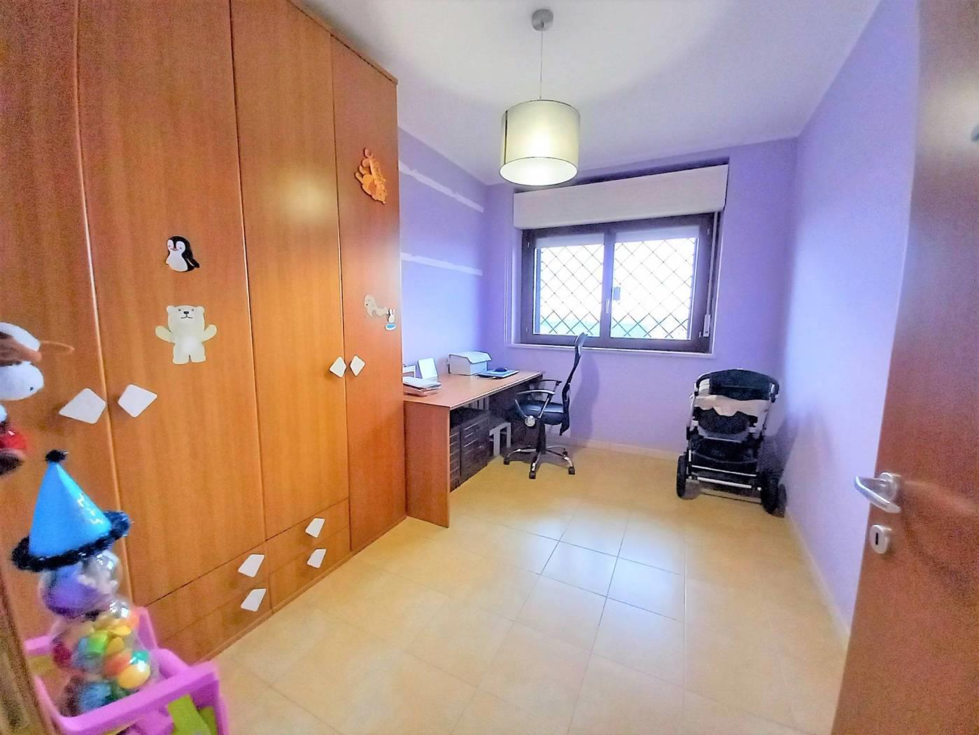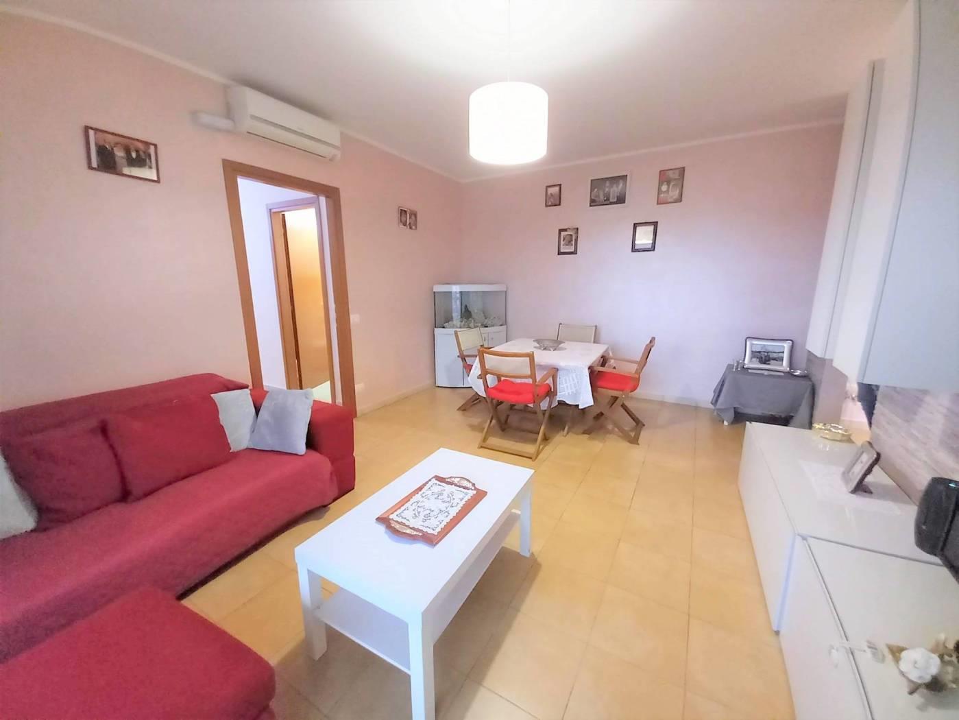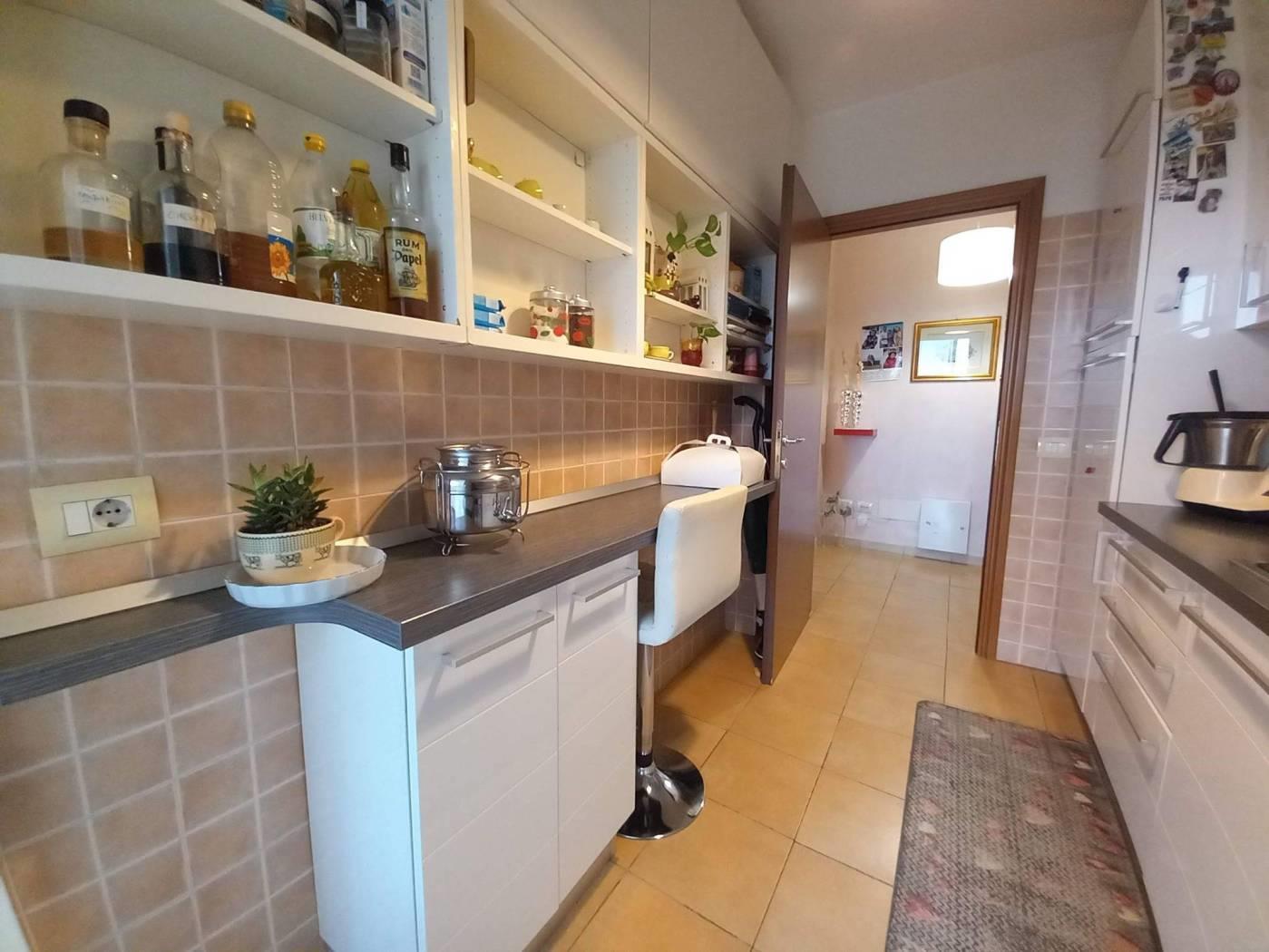 L' appartamento è composto da: ingresso, cucina semi abitabile, soggiorno comodo, corridoio, 2 camere spaziose, doppi servizi entrambi finestrati, uno con box doccia e uno con vasca. Due comodi terrazzi donano luce all'immobile e rendono la permanenza piacevolissima, essendo sfruttabili per buona parte dell'anno: uno è coperto, vi si accede dalla cucina e dal soggiorno, affaccia sulla vallata retrostante la palazzina e permette di assistere ad incantevoli tramonti, è inoltre dotato di armadiatura in alluminio da esterno che ospita la lavatrice e l'asciugatrice; l'altro terrazzo ha accesso dalla fine del corridoio, è semicoperto e molto soleggiato, solitamente funge da solarium e può ospitare una piscina per bambini.
