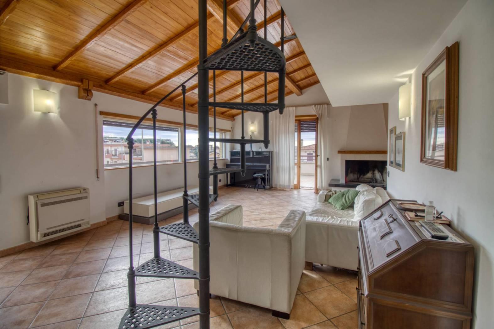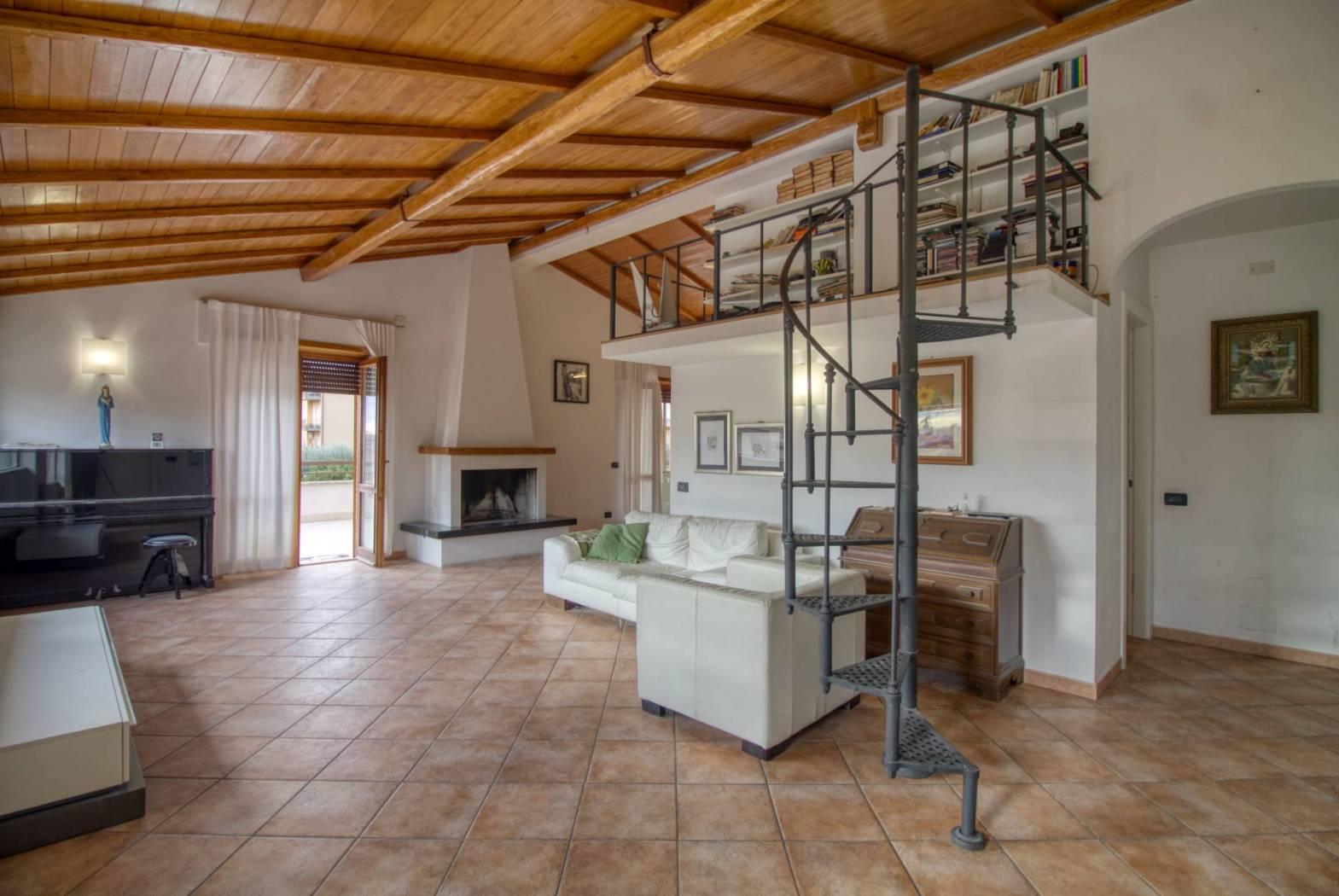 Roma - Ottavia - Proponiamo la vendita di un appartamento posto al primo ed ultimo piano (secondo catastalmente) di un piccolo fabbricato in cortina di sole tre unità abitative. L'immobile si compone di ampio salone con camino e soppalco a vista, cucina abitabile, tre camere da letto, due bagni e due ampi terrazzi collegati tra loro. L'immobile, in ottimo stato di conservazione, è dotato di porta blindata, parquet nella zona notte ed infissi in legno doppio vetro. Vista l'ampia metratura e la disposizione interna si presta ad essere suddiviso in due unità abitative distinte. Completa la proprietà una corte esterna con accesso carrabile ottima come parcheggio di numerose autovetture.