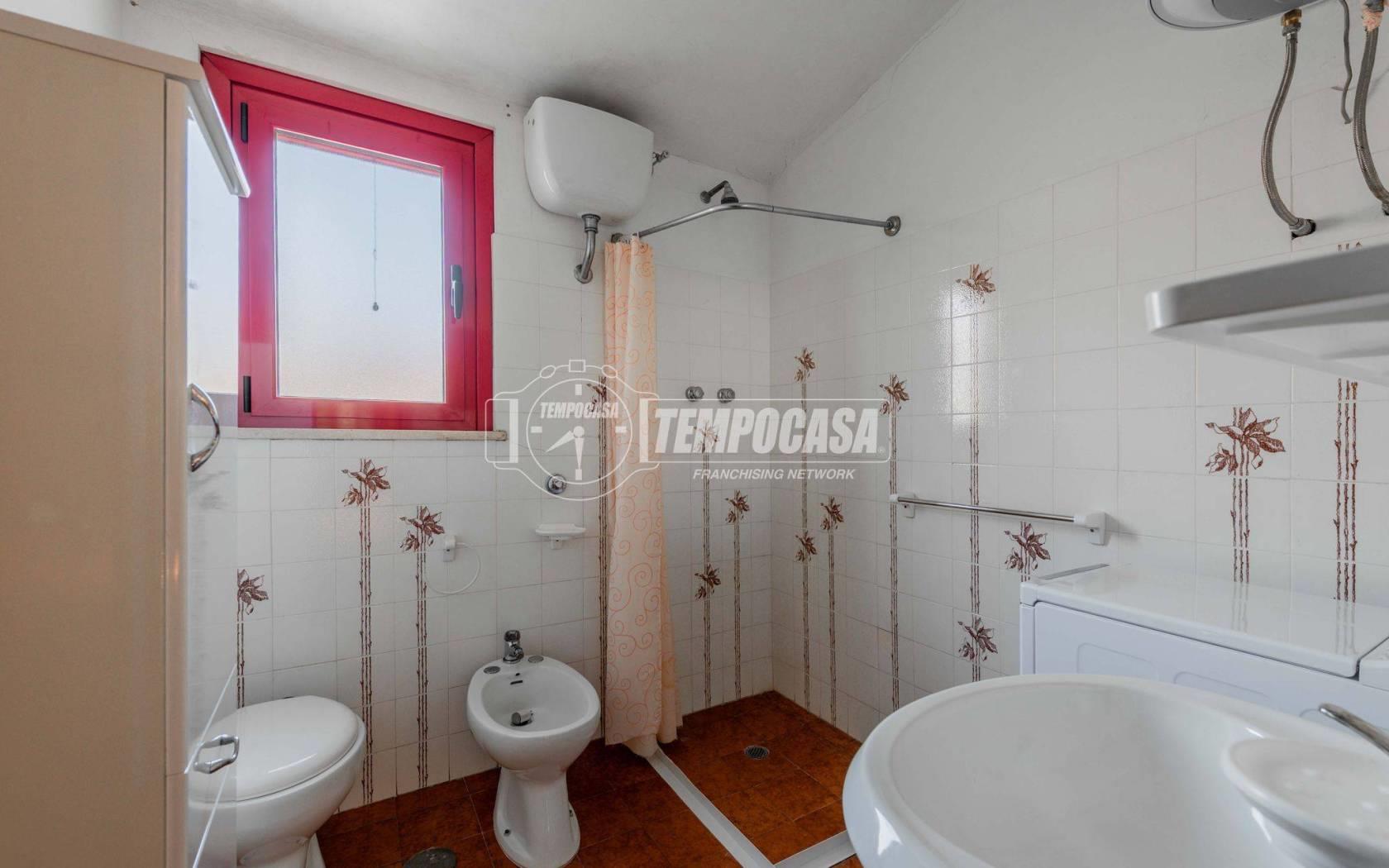 Il bagno è completo di doccia a terra ed è dotato di una finestra, dettaglio sempre più raro ma essenziale per garantire comfort e ventilazione naturale.