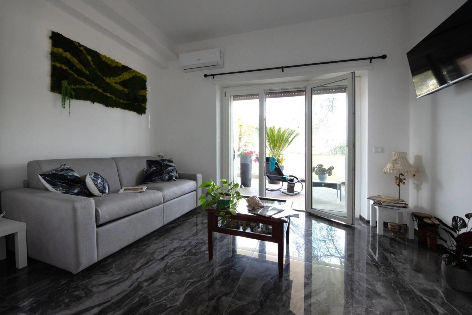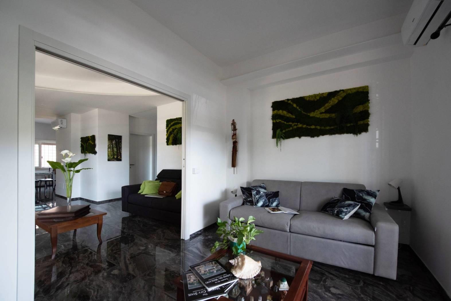 Immobile completamente e finemente ristrutturato di recente, luminosissimo, con quadrupla esposizione esterna, dotato di infissi in PVC con doppio vetro, serrande elettriche, inferriate e zanzariere. Immobile con impianto di riscaldamento autonomo e dotato, altresì, di climatizzatori. Il triplo ingresso (attualmente chiuso con cartongesso) permetterebbe una suddivisione interna per realizzare due unità immobiliari autonome. Attualmente l'immobile è composto di ampio disimpegno d’ingresso, soggiorno, quattro ampie camere da letto (di cui una che si apre con doppia porta a scrigno sul soggiorno) ampia cucina abitabile, disimpegno/studio ( con predisposizione per seconda piccola cucina), tripli servizi (di cui uno senza finestra ed un en-suite), balcone e grande terrazza vivibile angolare, libera su due lati di circa 70 Mq. con accesso dal soggiorno.