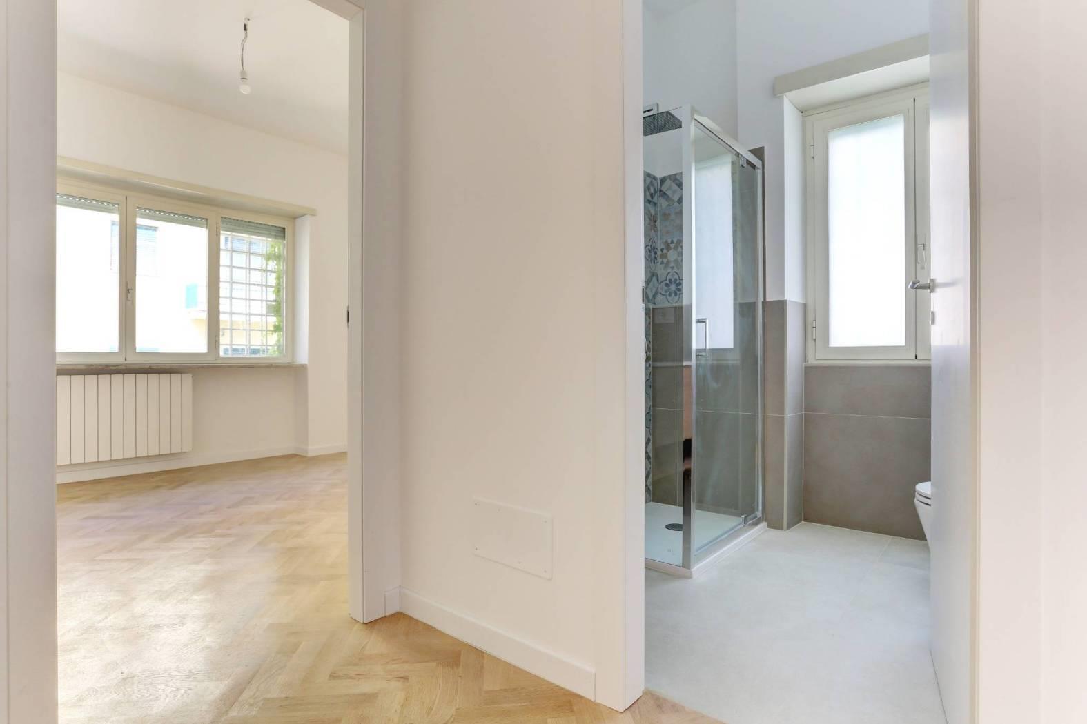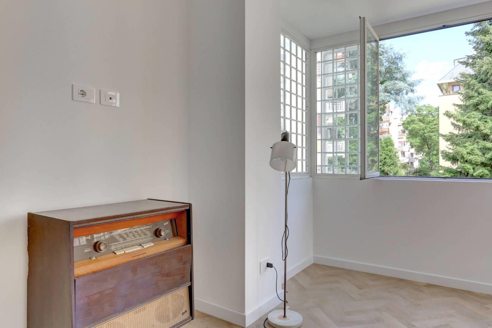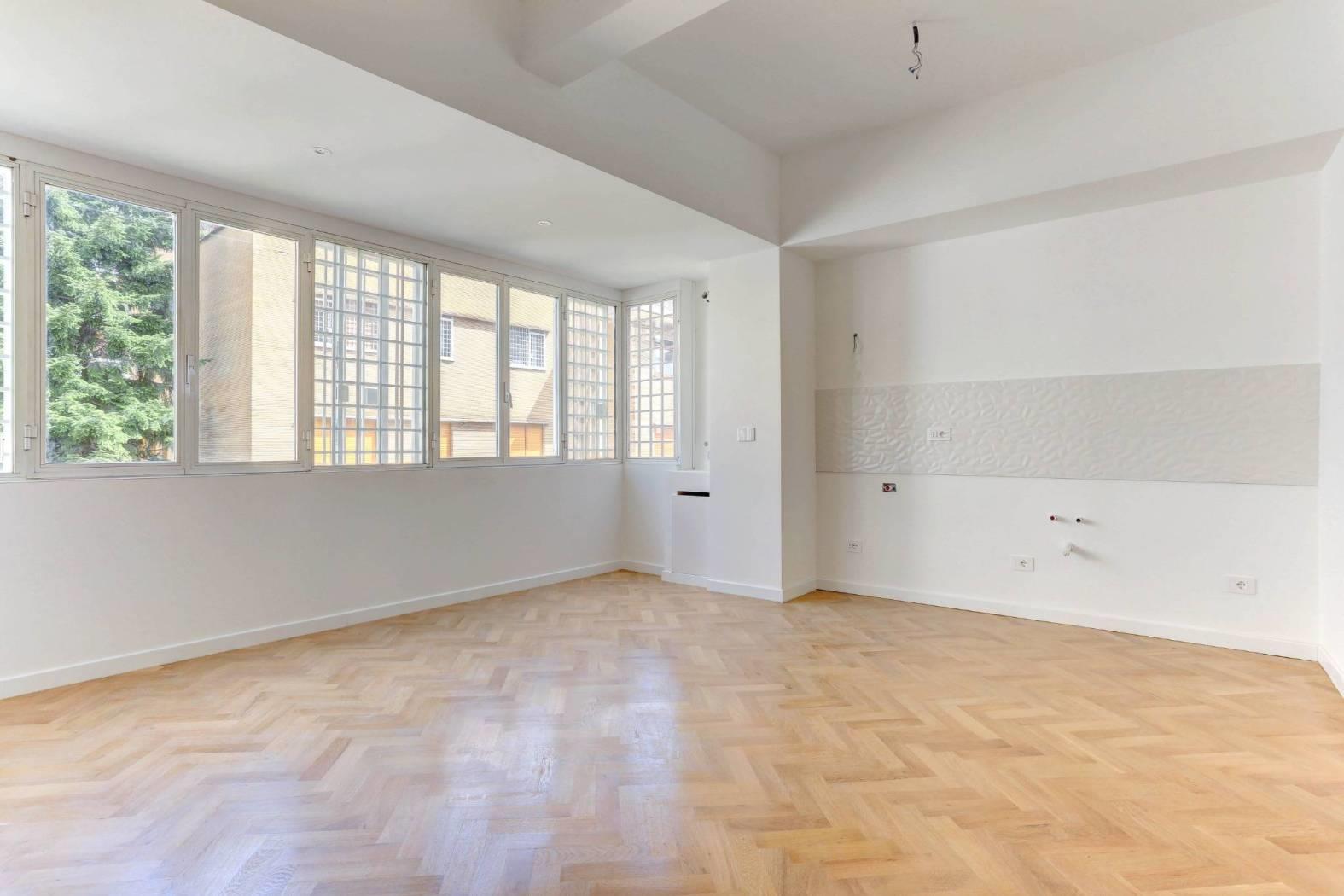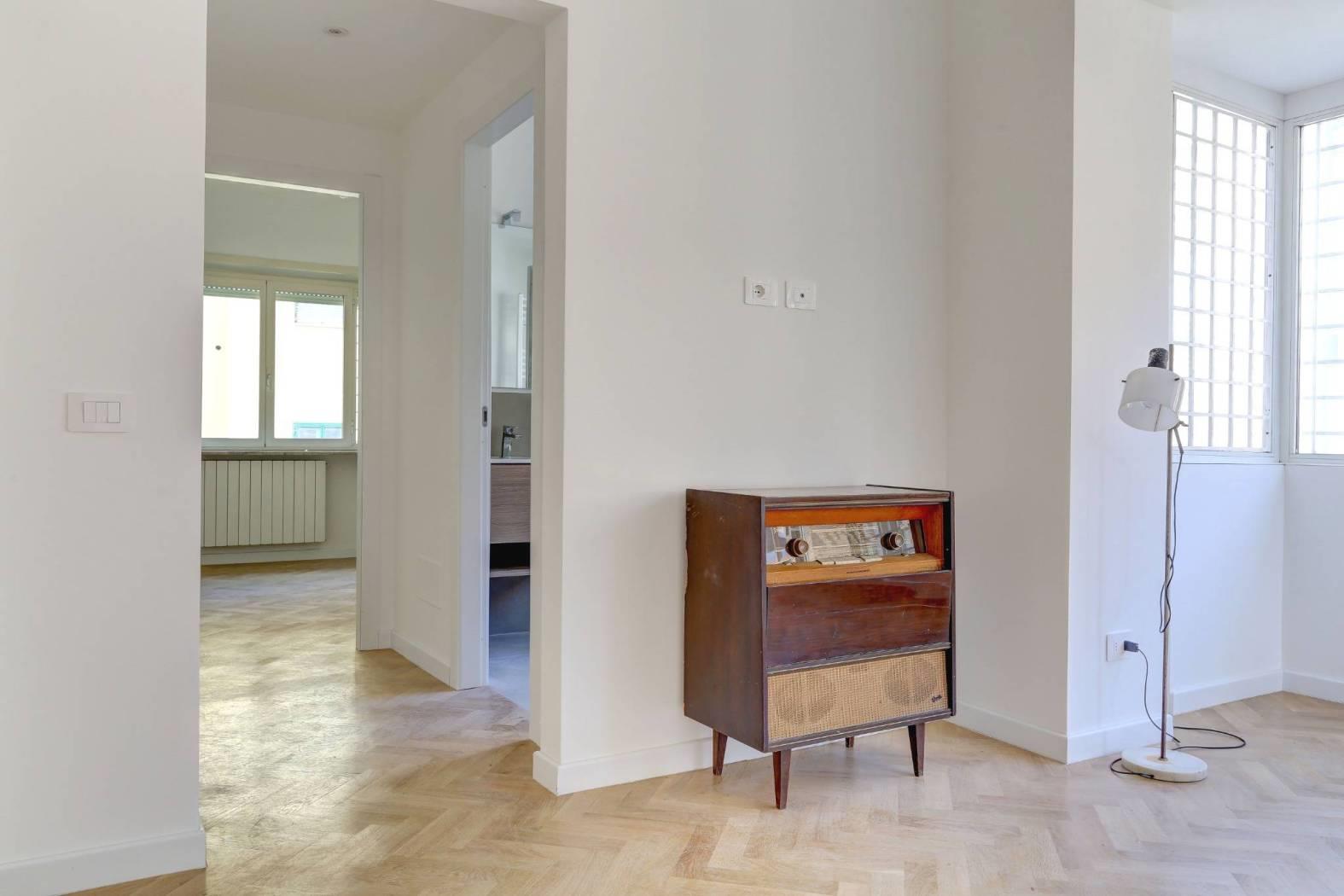 L’immobile gode di ottima luminosità grazie alla presenza di ampie finestre e di un'esposizione favorevole, che lo rendono particolarmente arioso e accogliente. La recente ristrutturazione ha valorizzato ogni dettaglio, con finiture di pregio e pavimentazione in parquet in tutti gli ambienti, ad eccezione del servizio.