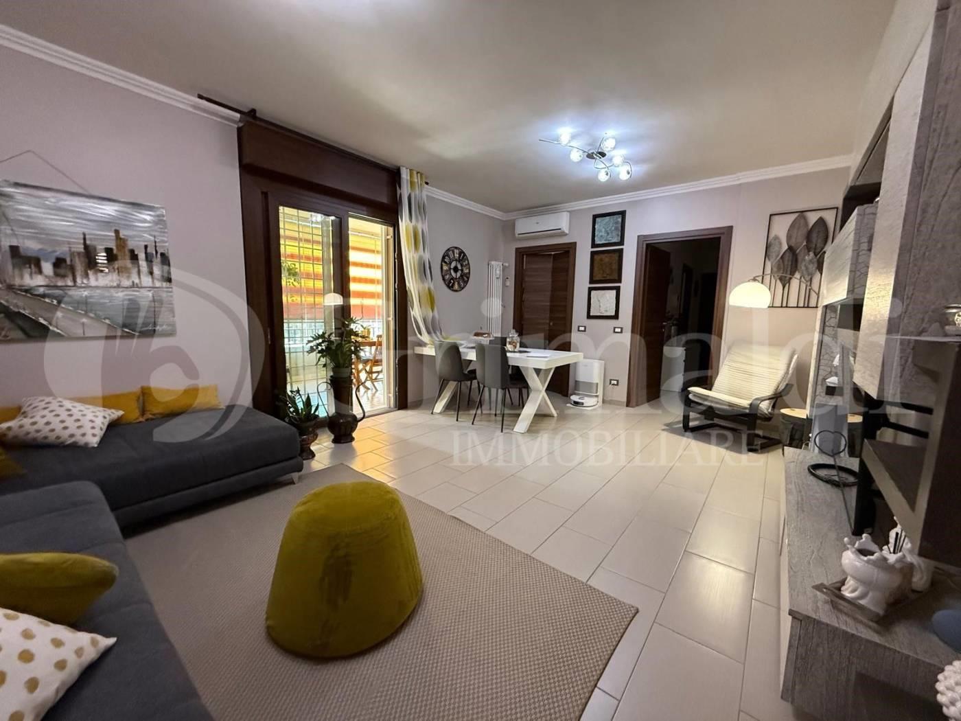 Scopri questo splendido appartamento totalemente ristrutturato sito al primo piano, dotato di ascensore, ideale per chi cerca spazio e comodità. Il salone spazioso invita a momenti di convivialità. Le due camere da letto, una delle quali con bagno in suite, garantiscono privacy e tranquillità. La cucina abitabile è perfetta per preparare deliziosi pasti da condividere con amici e familiari.