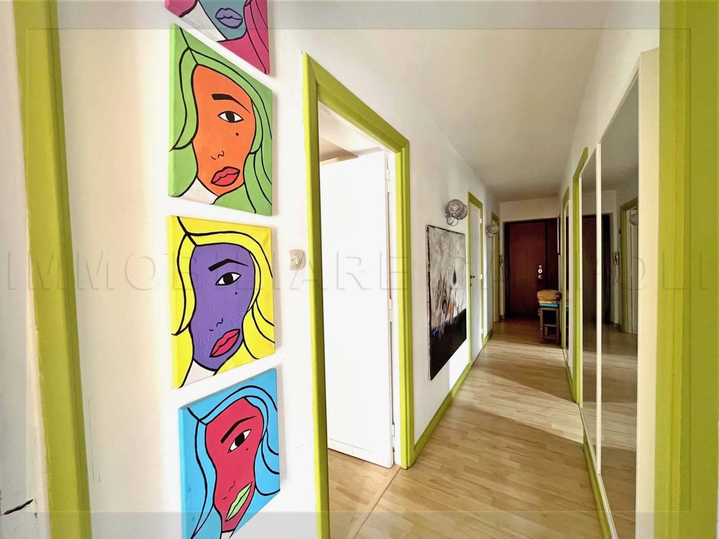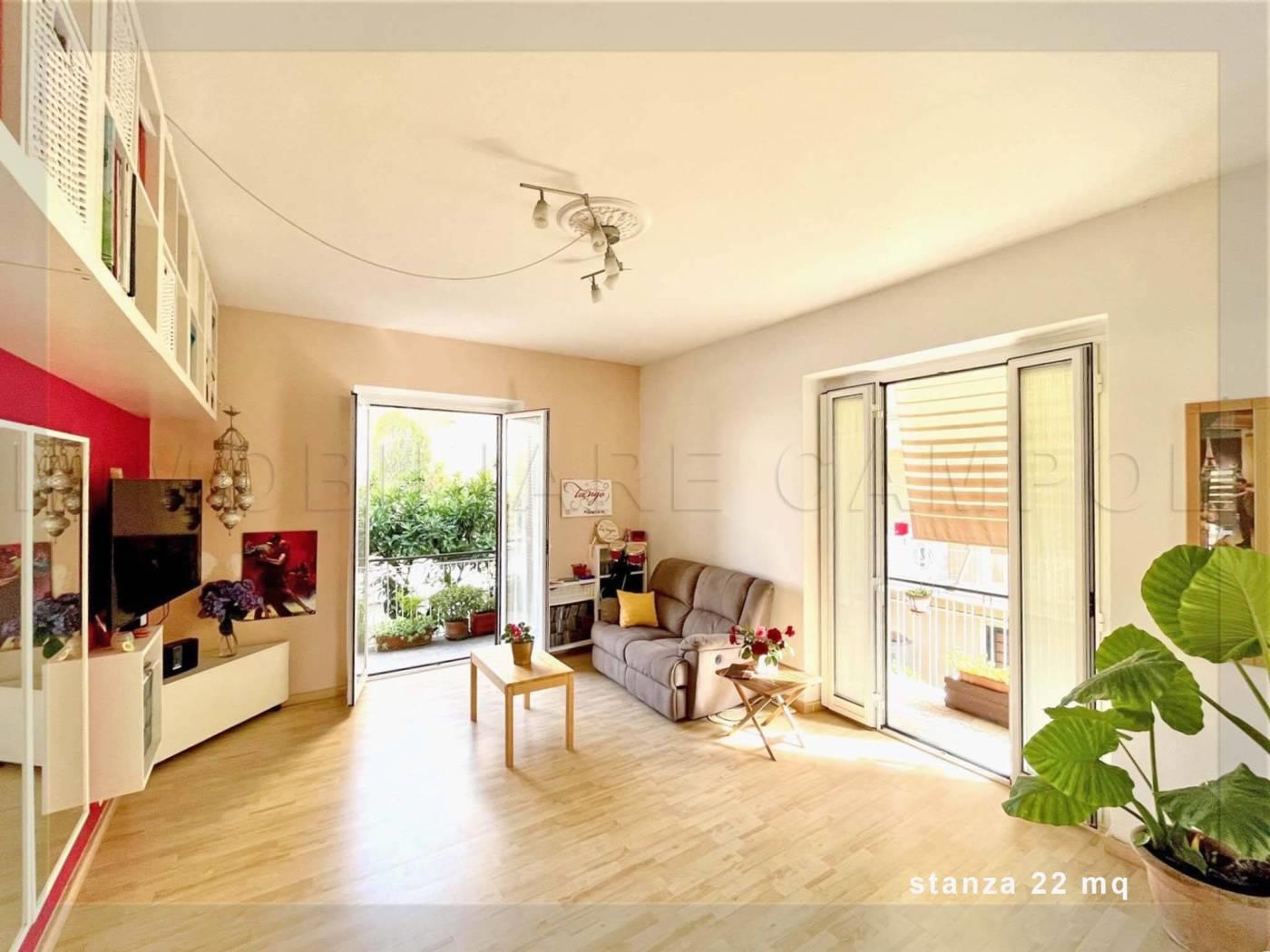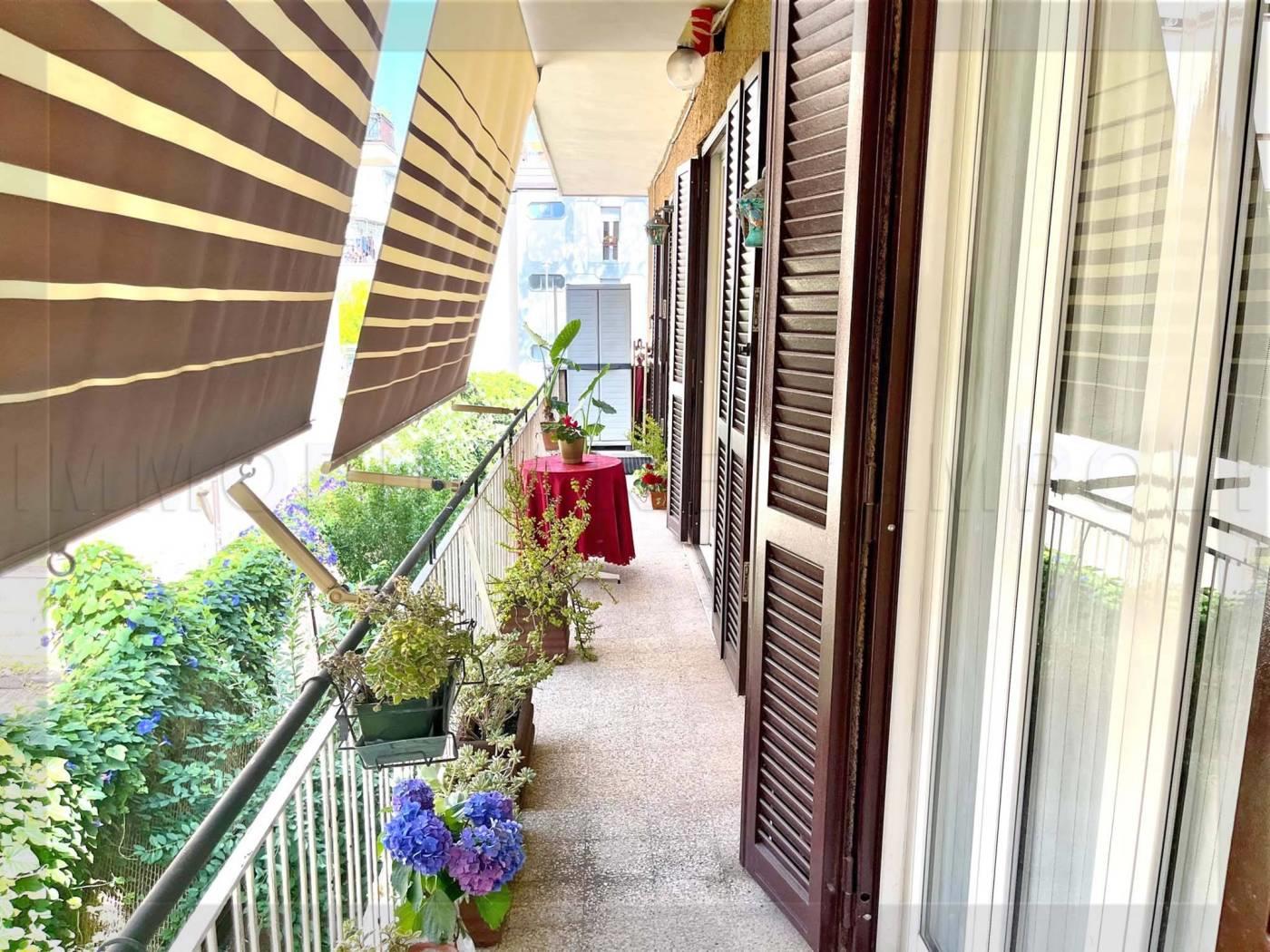 Ha una superficie di 120 mq commerciali come da scheda catastale, circa 100 mq calpestabili interni misurati. La sua composizione attuale è: Lungo corridoio centrale, ampio soggiorno, 2 camere, cucina abitabile di 9 mq, 2 bagni entrambi con finestra (uno con doccia ed uno con vasca). Altra camera di 16 mq con entrata indipendente. La casa è abbracciata su due lati da 2 balconi accessibili da tutte le stanze presenti nell’immobile. Metratura, doppi ingressi e pianta rettangolare con affacci su 4 lati, permettono a questo immobile di poter essere trasformato per molteplici soluzioni (2 appartamenti, appartamento + ufficio/studio ecc).
