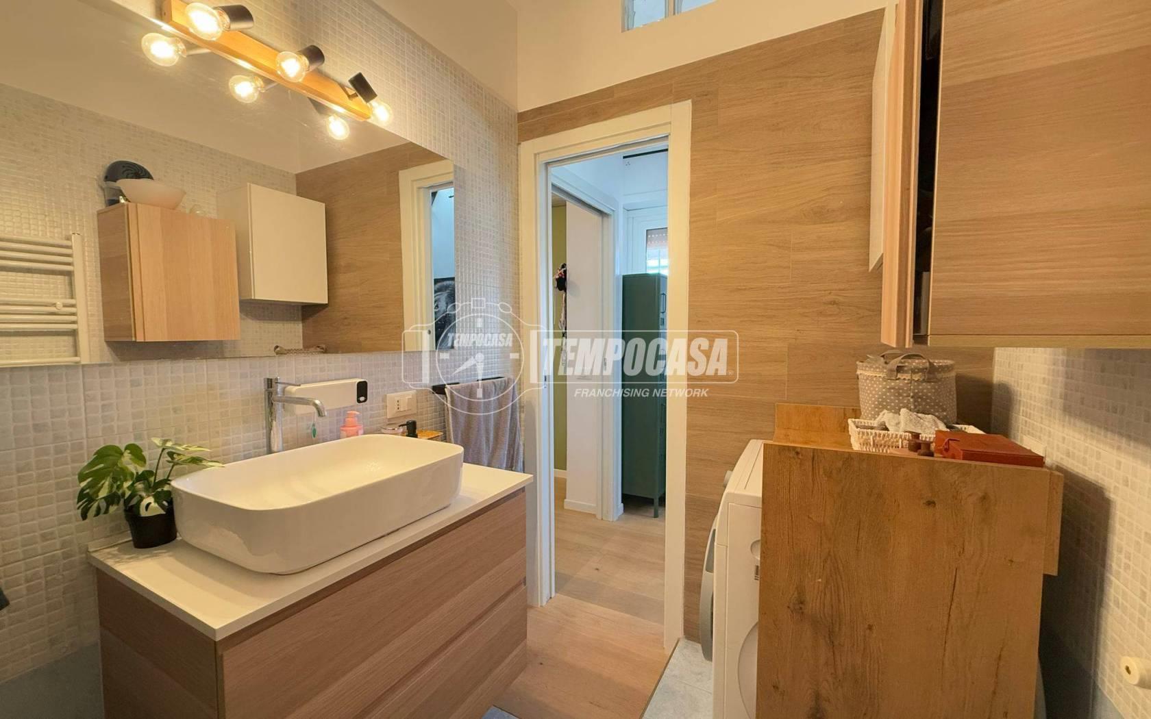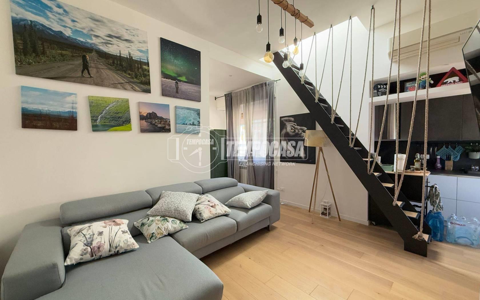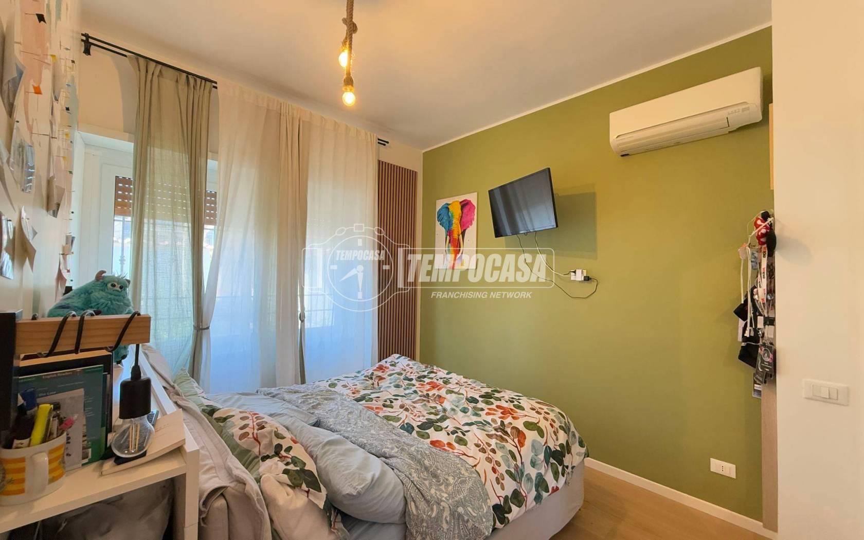 L’immobile è stato oggetto di riqualificazione terminata nel 2023 e si presenta pari al nuovo. I pavimenti sono in parquet laminato, gli infissi in alluminio con doppio vetro a taglio termico e acustico, mentre il bagno è stato completamente ristrutturato. Viene venduto semi arredato, comprensivo di cucina su misura, impianto di climatizzazione, cabina armadio attrezzata, arredo bagno, oltre a lampadari e complementi già presenti, rendendo l’abitazione immediatamente fruibile.