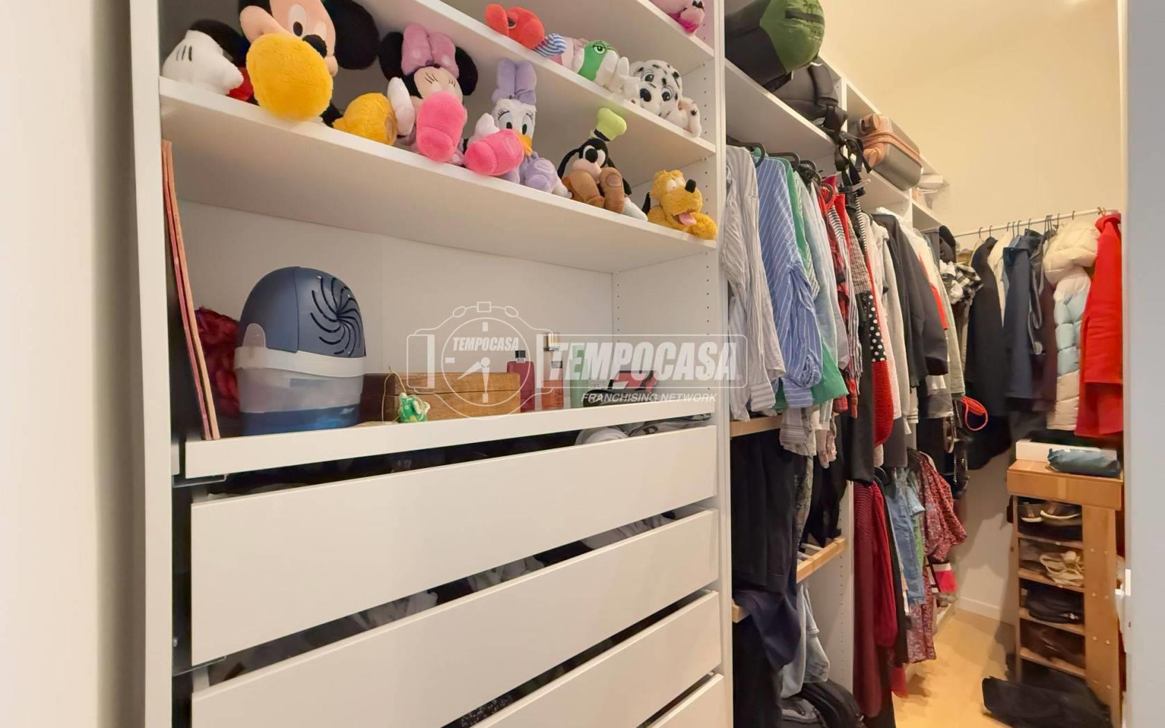 La zona notte, accessibile da un disimpegno, comprende un bagno finestrato con doccia in cristallo e una spaziosa camera matrimoniale, impreziosita da una cabina armadio arredata e funzionale.