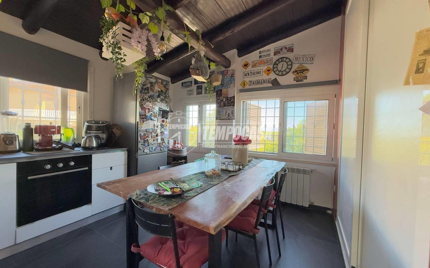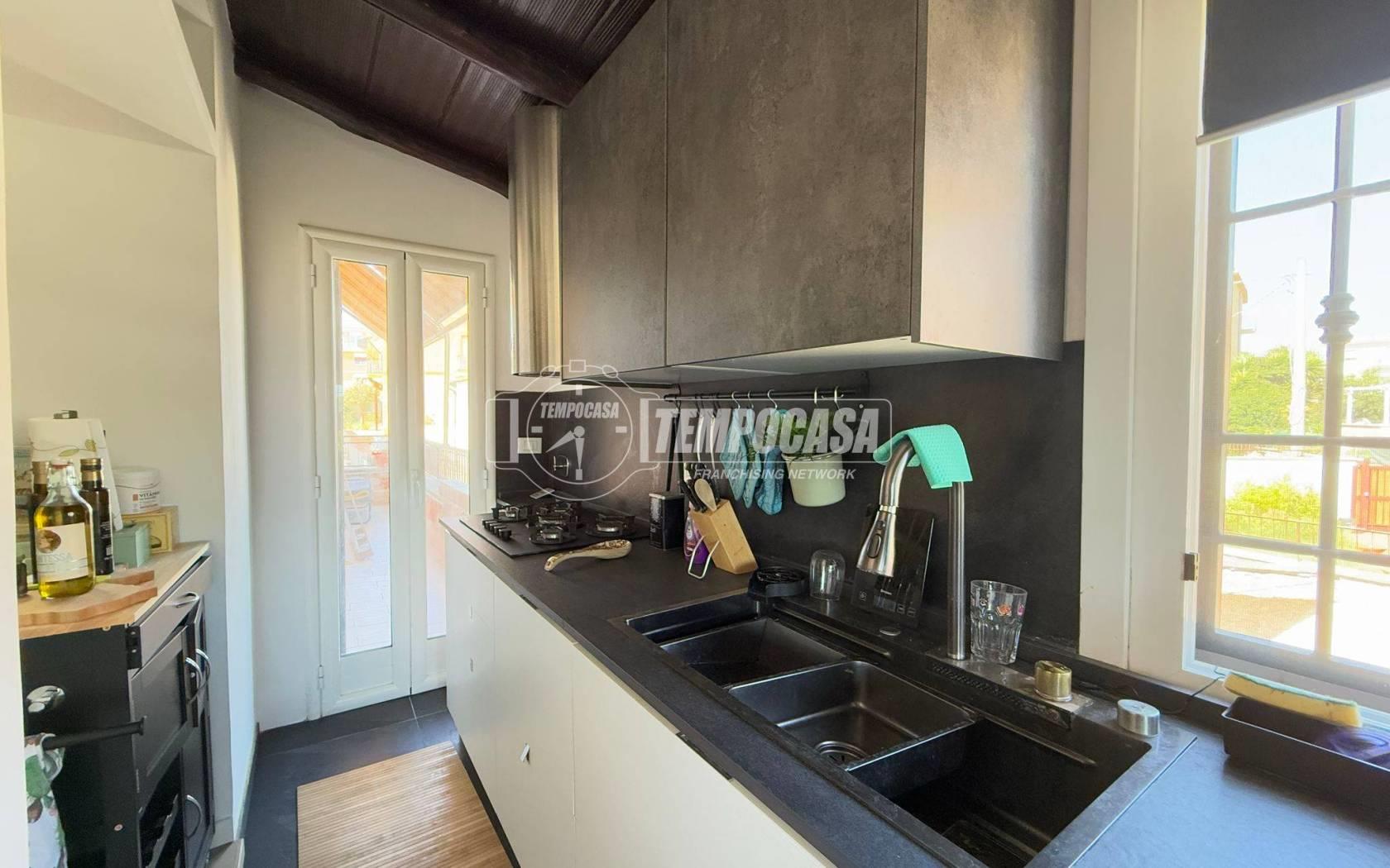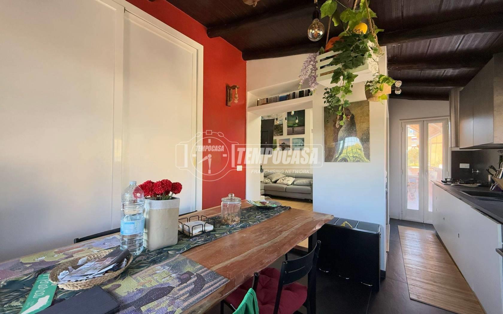 L’ingresso si apre su un accogliente soggiorno, separato dalla cucina abitabile.