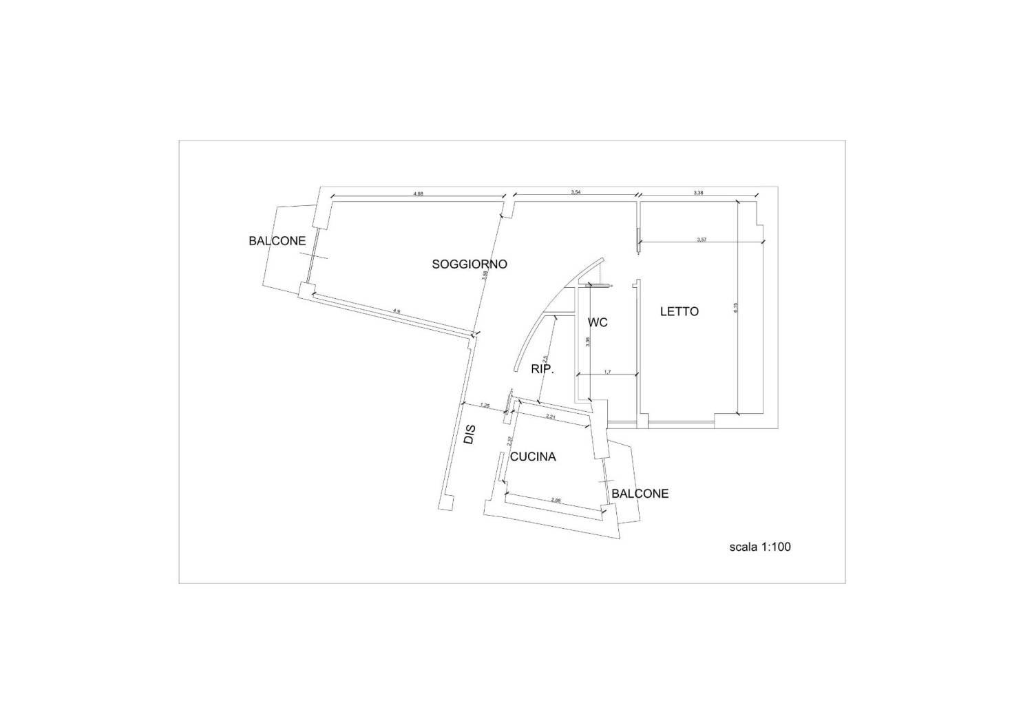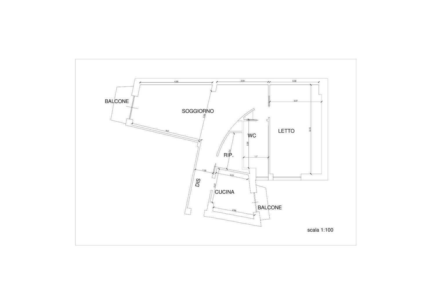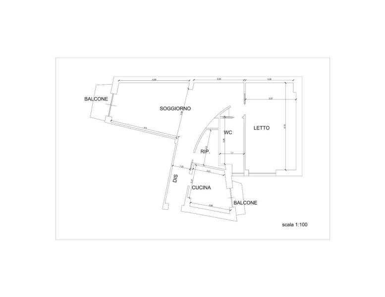 E' composto da un ingresso, ampio salone, camera da letto, disimpegno, cucina abitabile, bagno, ripostilgio e due balconi.