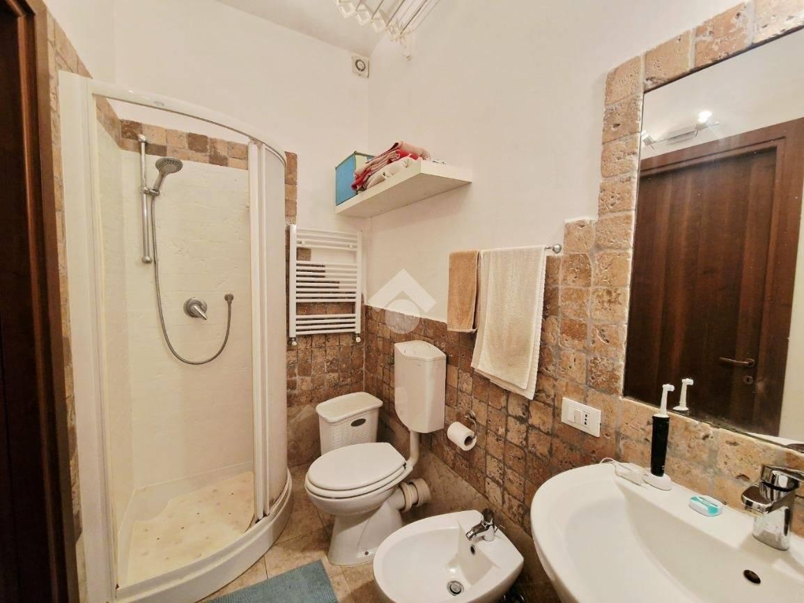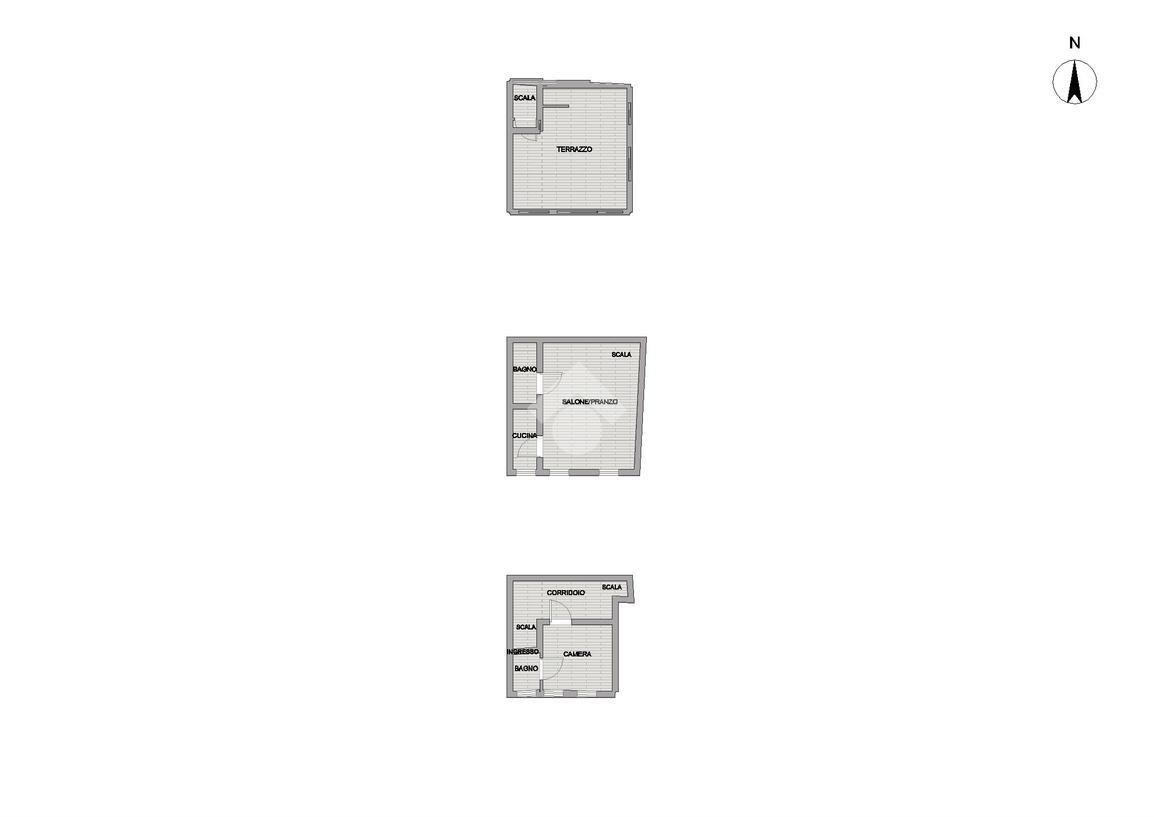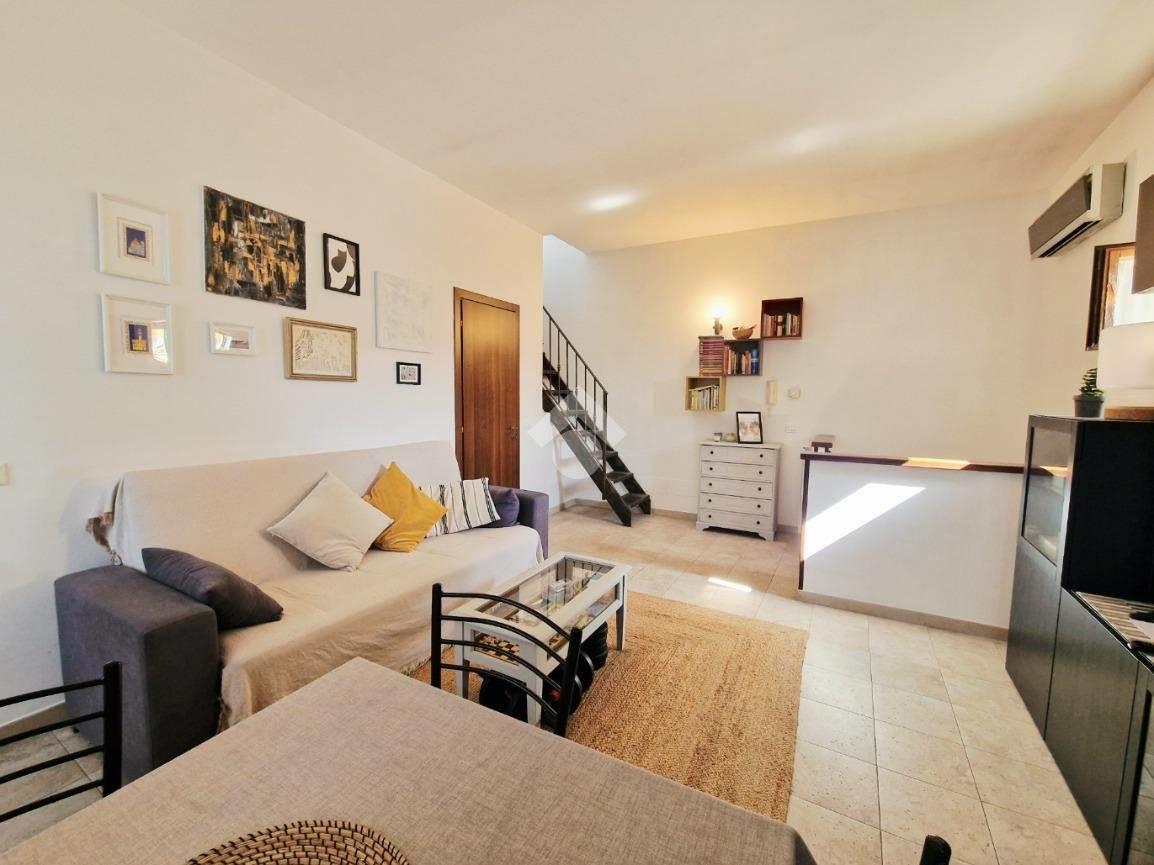 L’appartamento, di circa 80 mq, è composto al primo piano da una camera da letto con bagno finestrato mentre al secondo è presente un soggiorno con cucinotto e bagno con doccia.