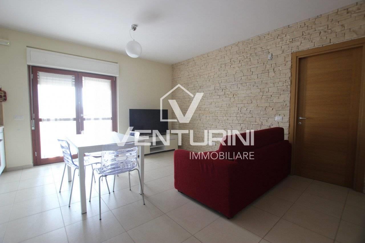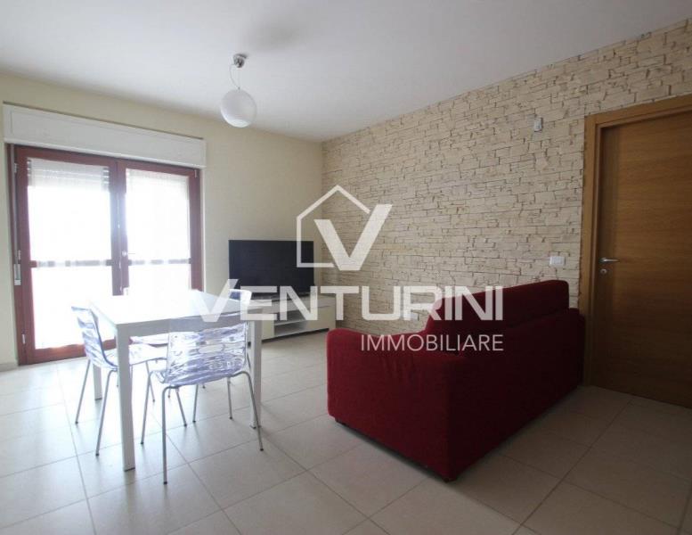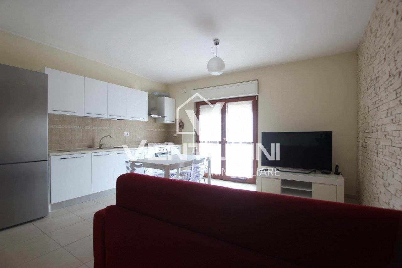 L'appartamento si compone di ingresso su soggiorno con angolo cottura completo e funzionale, affacciato su uno spazioso balcone ideale per momenti all'aperto. La zona giorno è arredata con gusto contemporaneo: ; la parete effetto pietra aggiunge ulteriore valore estetico. Ampie vetrate donano luce naturale agli spazi rendendoli accoglienti tutto il giorno.