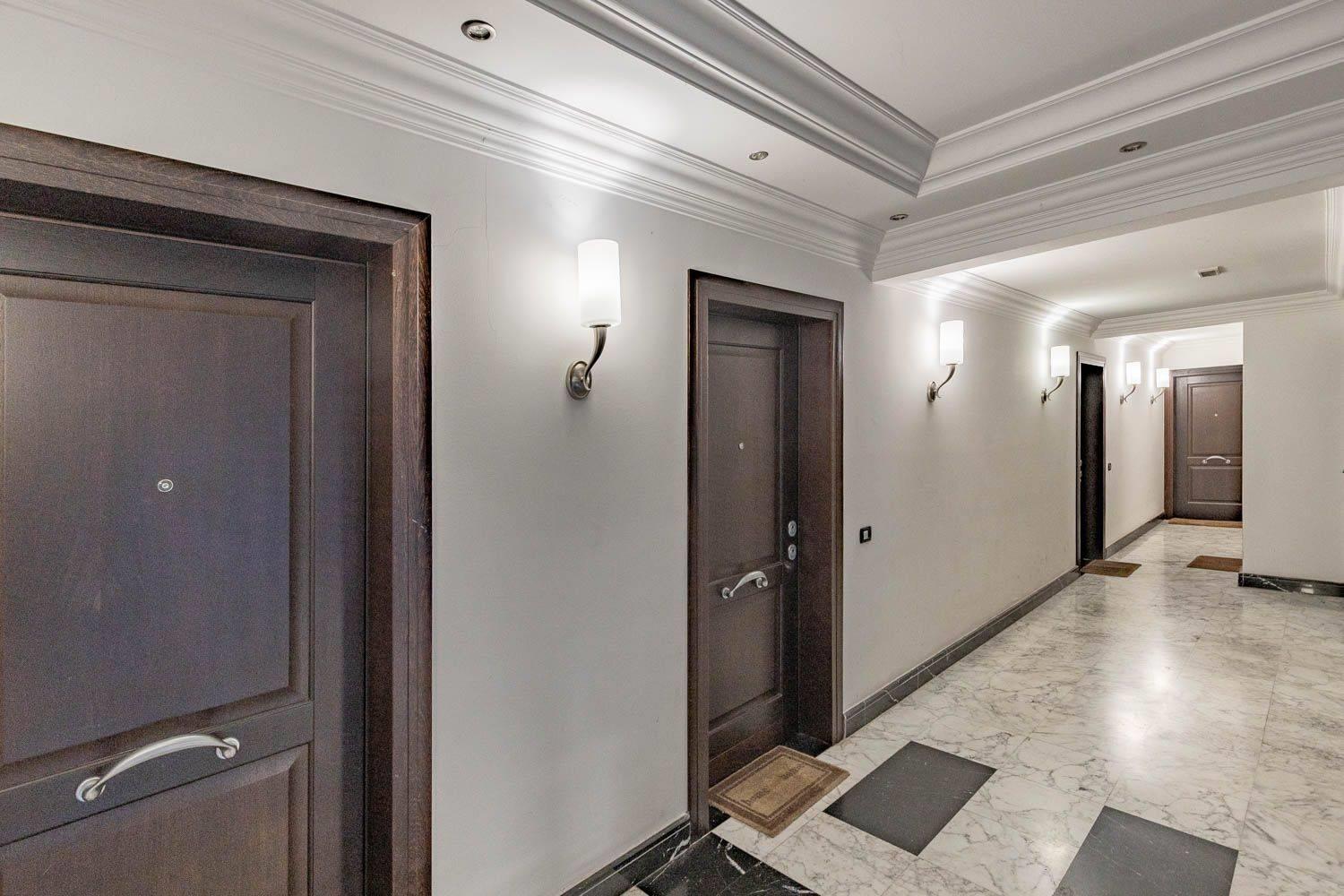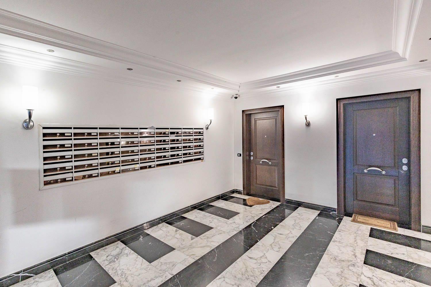L’appartamento è completo di impianto di allarme, videocitofono a colori, condizionatori d'aria a pompa di calore caldo freddo, antenna satellitare, e servizio di video sorveglianza collegato con il portiere. L’impianto termico è centralizzato ma a gestione autonoma, inoltre l'edificio è fornito di pannelli solari e di impianto fotovoltaico.