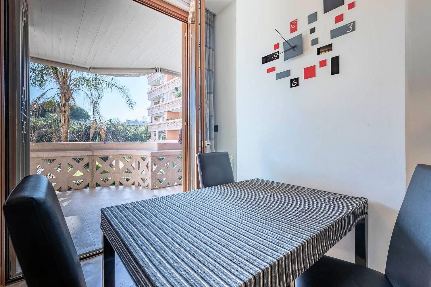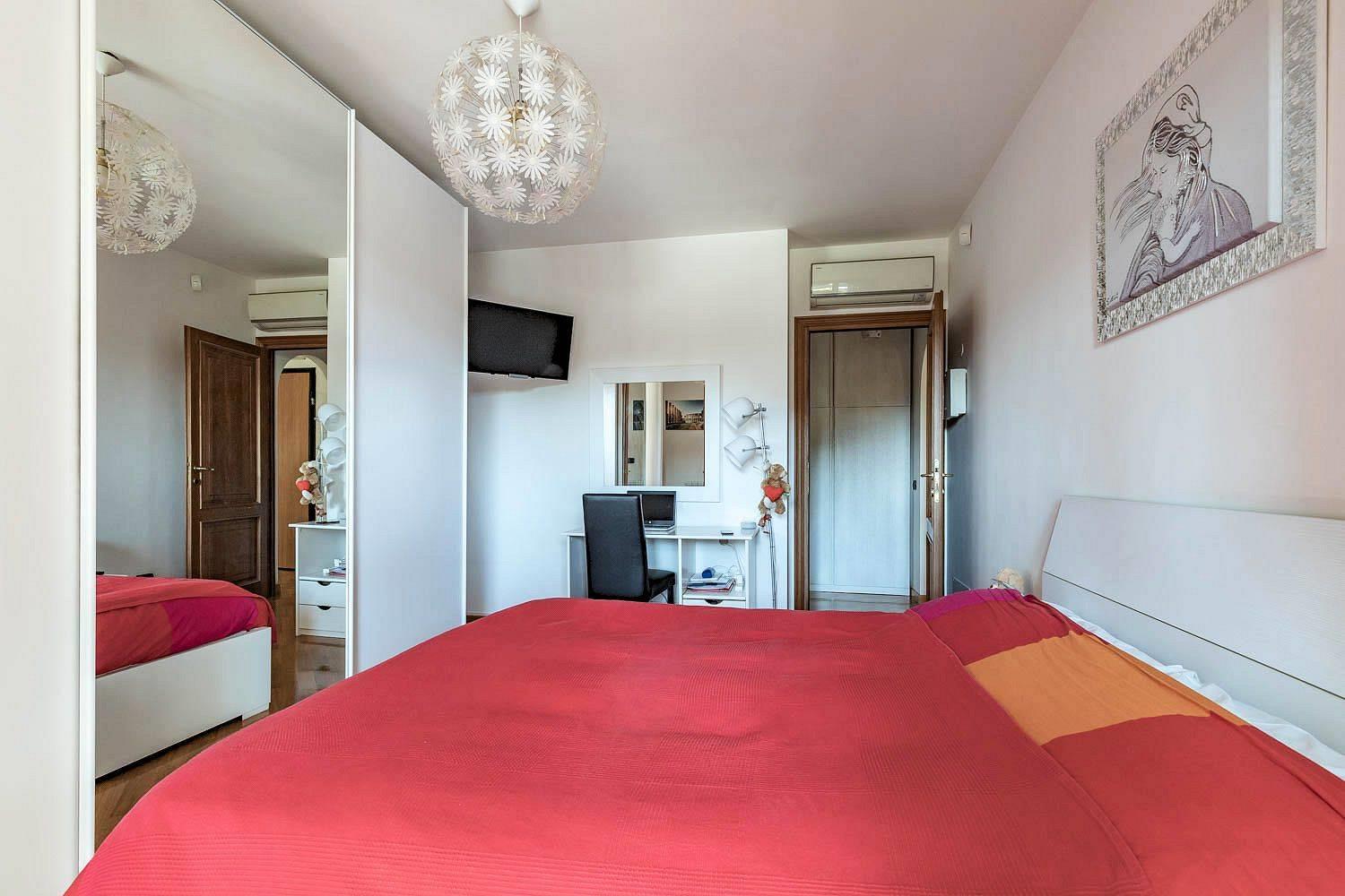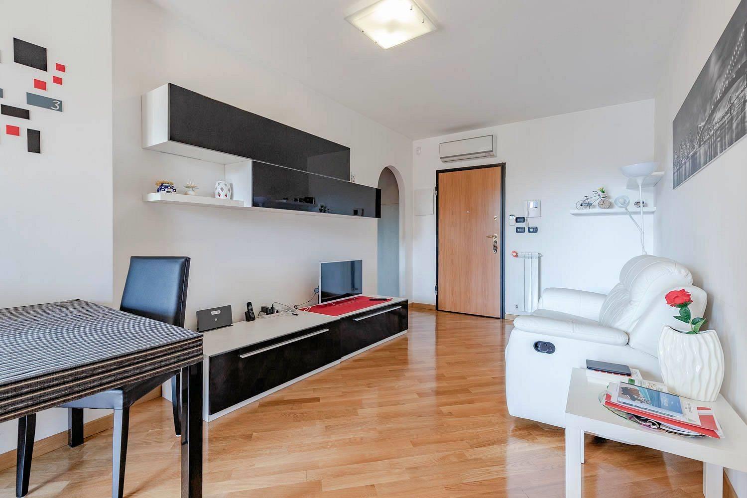 Il riscaldamento è centralizzato ma con gestione autonoma. Il complesso include un servizio di portineria una piscina condominiale e un parco giochi attrezzato. grate di protezione e zanzariere. Viene venduto completamente arredato con gusto, pronto da abitare. Il prezzo richiesto è di €270.000.