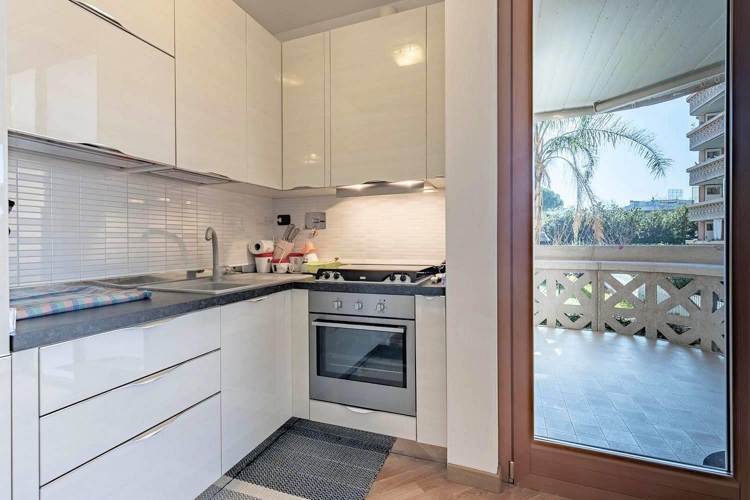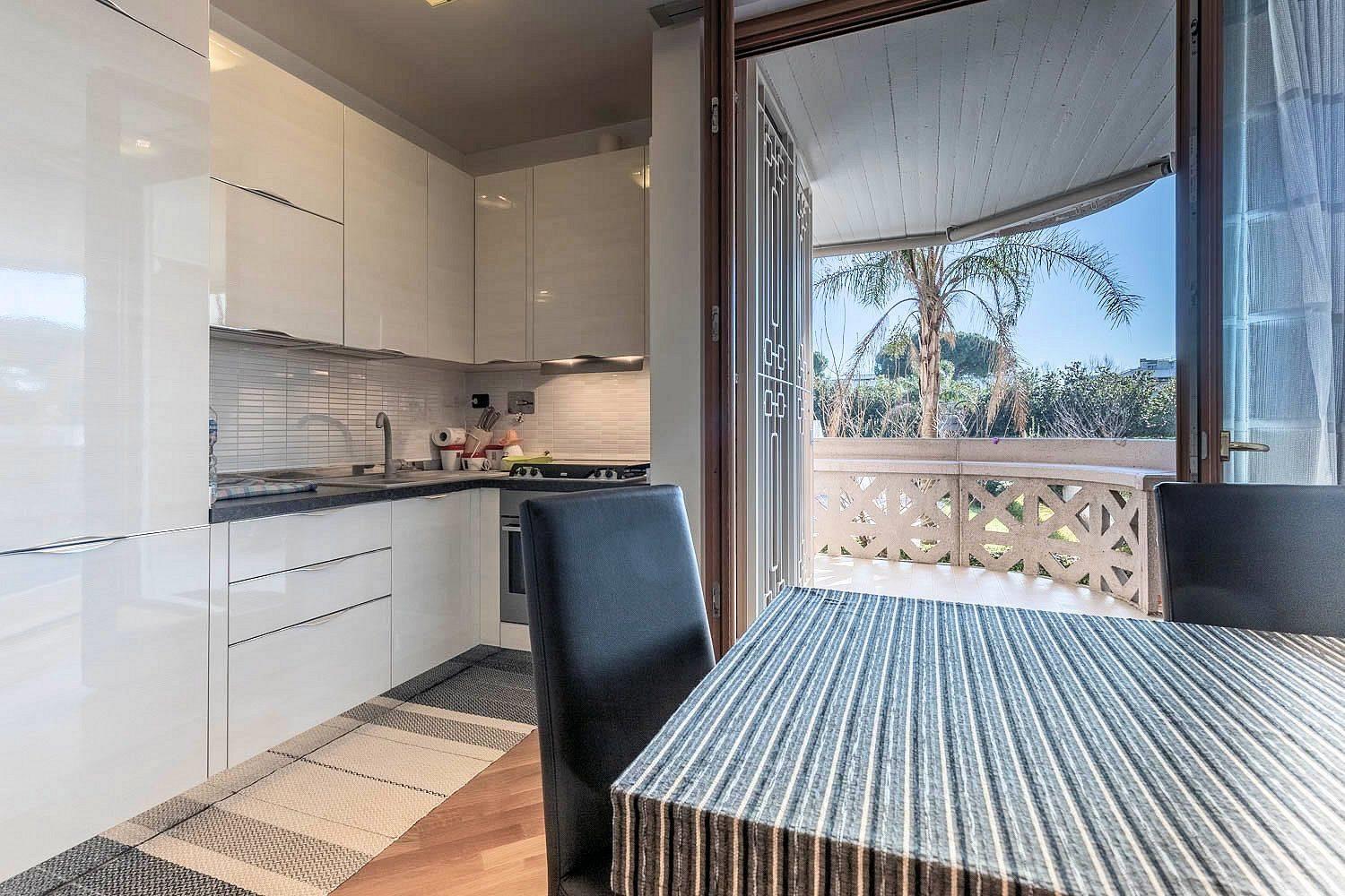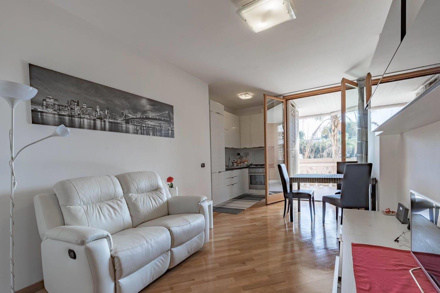Il riscaldamento è centralizzato ma con gestione autonoma. Il complesso include un servizio di portineria una piscina condominiale e un parco giochi attrezzato. grate di protezione e zanzariere. Viene venduto completamente arredato con gusto, pronto da abitare. Il prezzo richiesto è di €270.000.