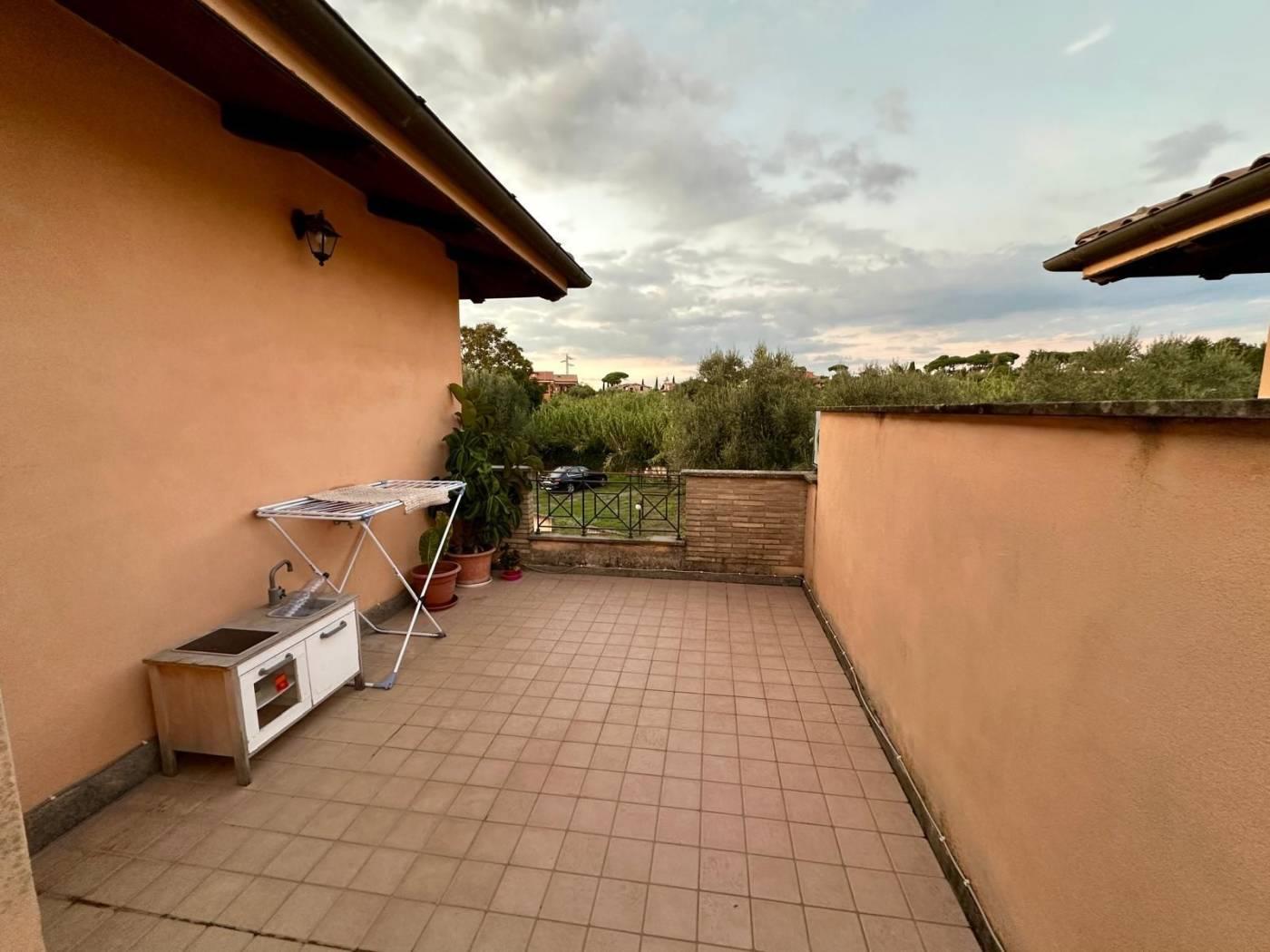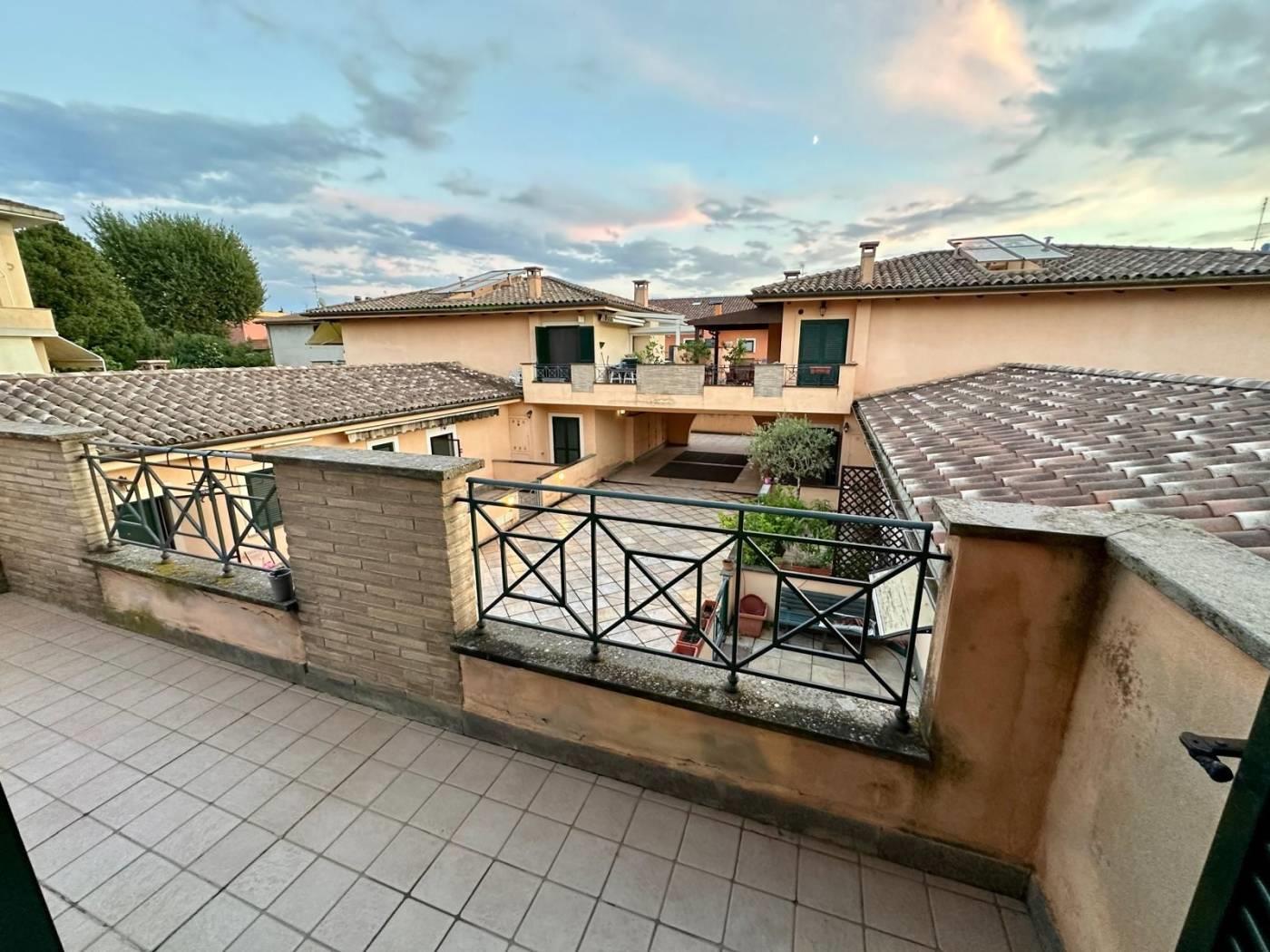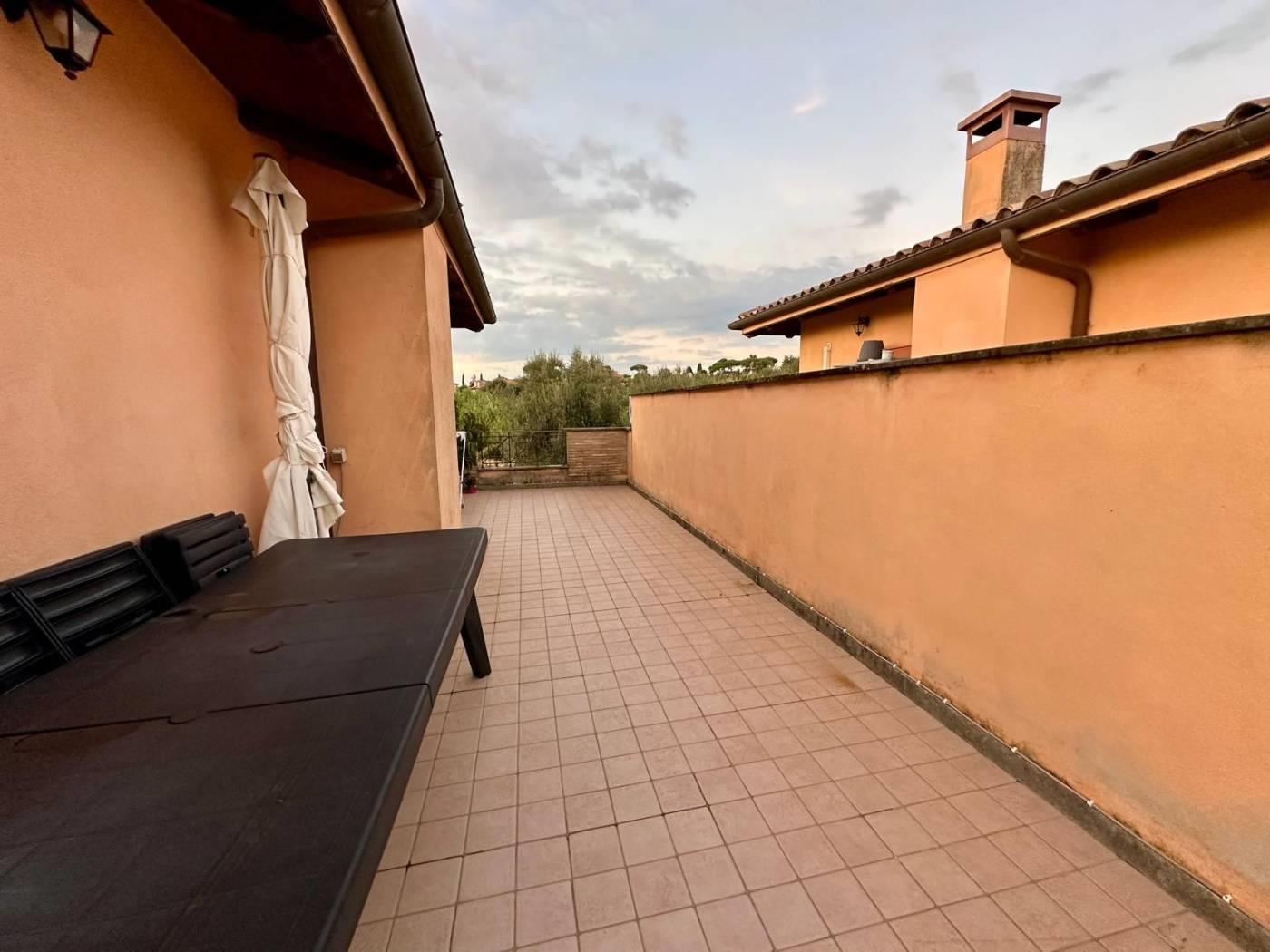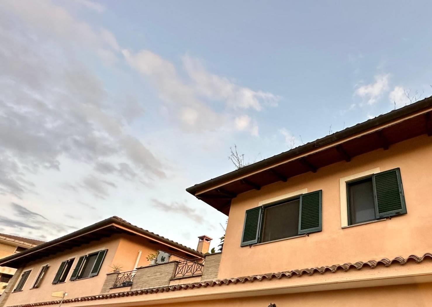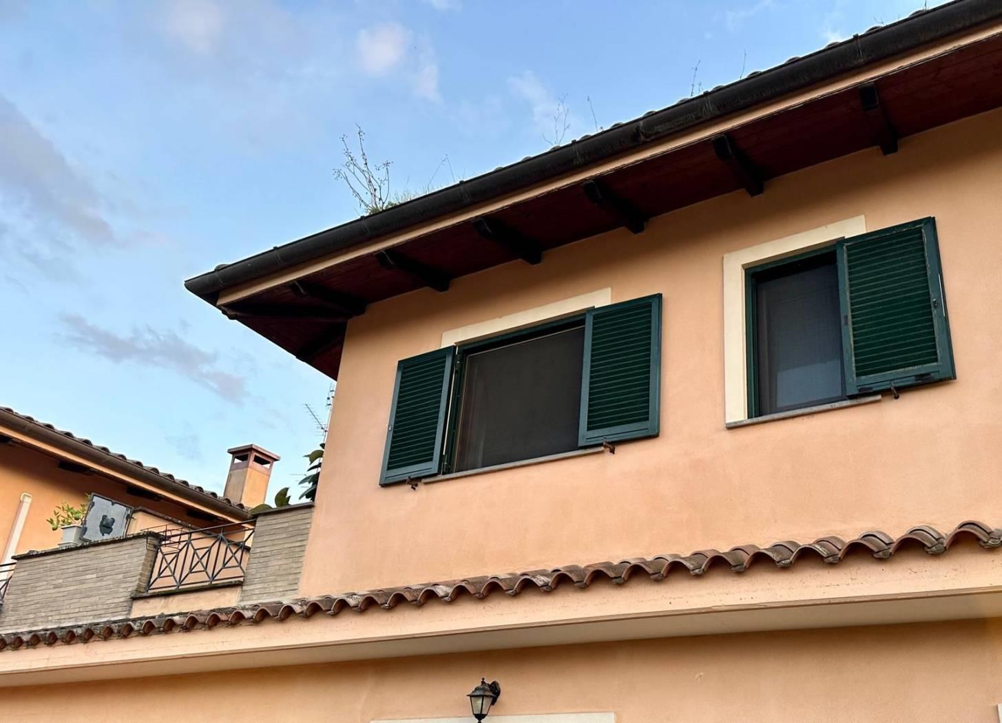 L'appartamento fa parte di un residence composto da appartamenti con ingresso indipendente, la pianta del fabbricato si sviluppa con forma quadrata e affacci sia verso la corte centrale sia verso il paesaggio campagna dei Castelli Romani