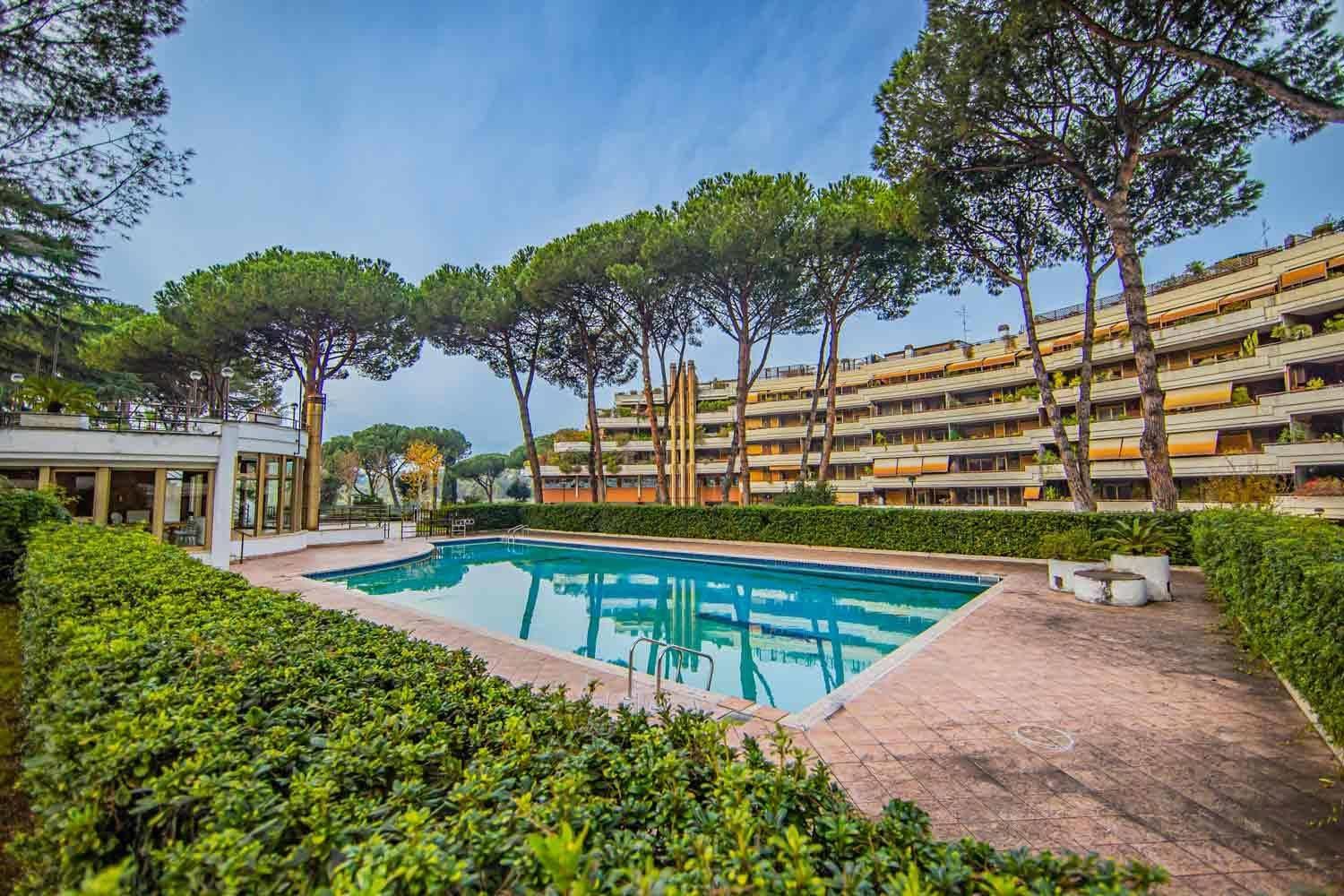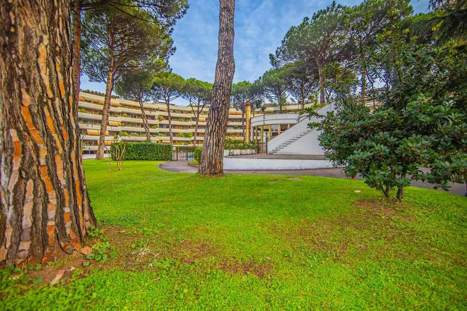 Case Roma Servizi Immobiliari è lieta di proporre la vendita un raffinato appartamento situato al secondo piano di uno stabile signorile servito da ascensore, all’interno di un esclusivo complesso residenziale con servizio di portineria e guardiania notturna, dotato di piscina condominiale, due campi da tennis e curate aree comuni. La proprietà si distingue per ambienti eleganti e ben distribuiti: l’ingresso si apre su un ampio salone di rappresentanza a vista, luminoso e accogliente, con accesso diretto al terrazzo a livello, ideale per momenti di relax o convivialità all’aperto. A seguire, un cucinotto funzionale, una camera matrimoniale e doppi servizi, studiati per garantire comfort e praticità.