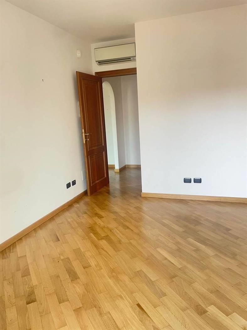 Porta blindata, parquet in tutti gli ambienti, infissi PVC effetto legno, aria condizionata.