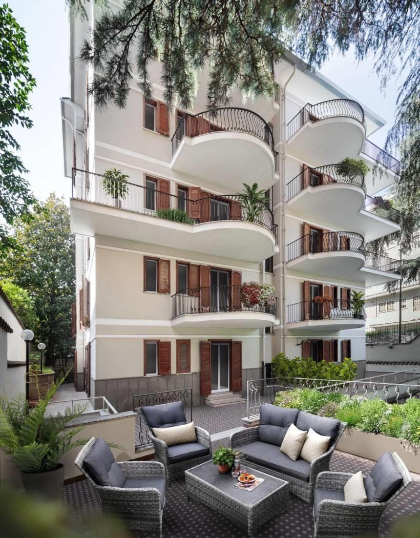 Appennini 33 trasforma un'elegante palazzina composta da 18 bilocali, dotati di giardino privato ai piani terra e balcone ai piani superiori, in un progetto residenziale innovativo e dal volto contemporaneo, inserito in un contesto iconico. Ogni appartamento è progettato con soluzioni su misura, spazi interni dal layout moderno e funzionale, e ampi spazi esterni privati pensati per il benessere quotidiano.