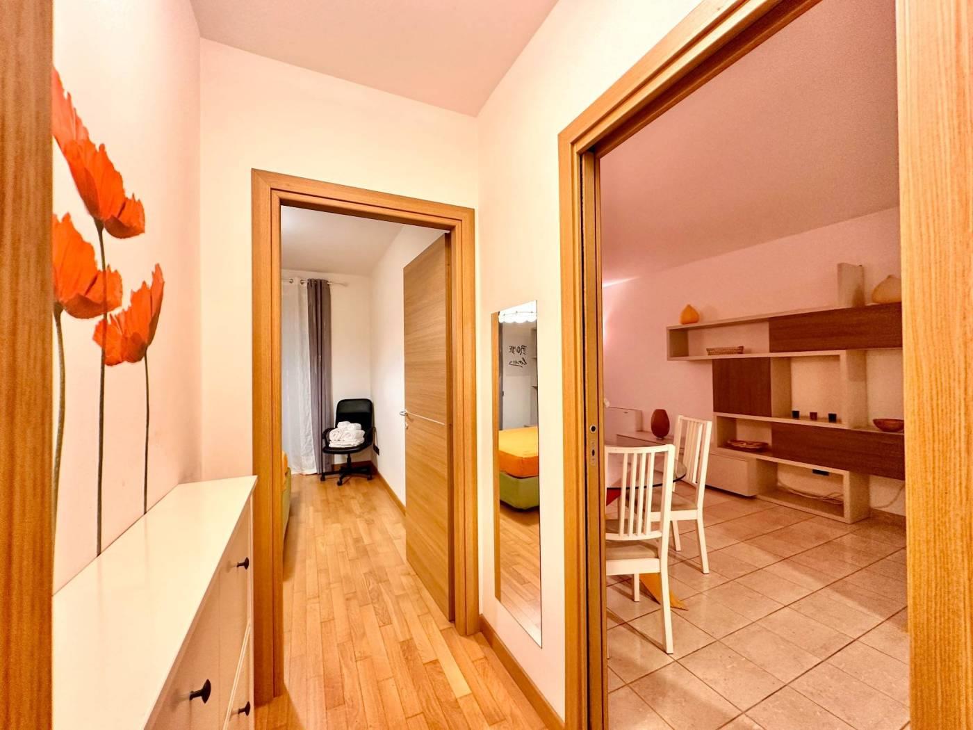 L'appartamento si compone di soggiorno, cucina abitabile, disimpegno, una camera matrimoniale dotata di cabina armadio, un bagno e un ampio terrazzo vivibile, ideale per momenti di relax all’aperto.