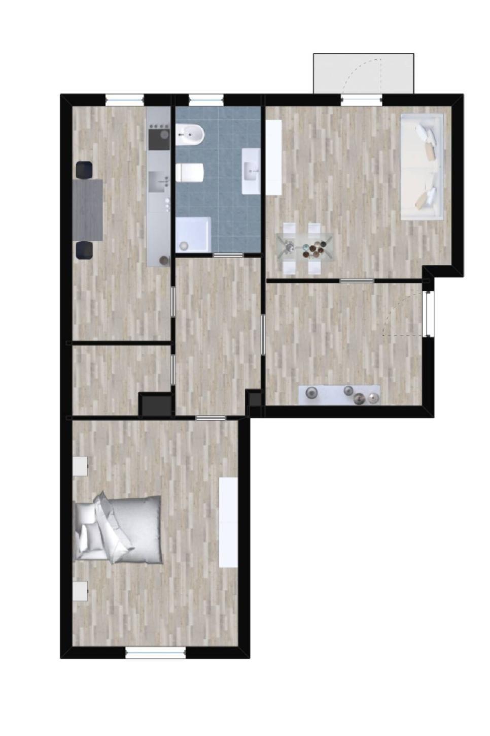 L’ingresso è ampio e conduce a una spaziosa zona soggiorno, luminosa e accogliente, dotata di porta-finestra con accesso a un piacevole balconcino interno. Un comodo disimpegno accompagna alla zona di servizio, dove troviamo un bagno finestrato di generose dimensioni, una cucina abitabile, un pratico ripostiglio e un’ampia camera matrimoniale, ideale per chi cerca comfort e spazio.
