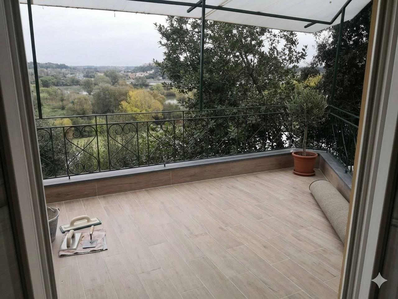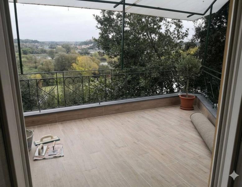 L'appartamento si trova all'interno di una villa, immersa nel verde con affaccio vista Tevere, non ci sono negozi, serve spostarsi con auto per supermercati.