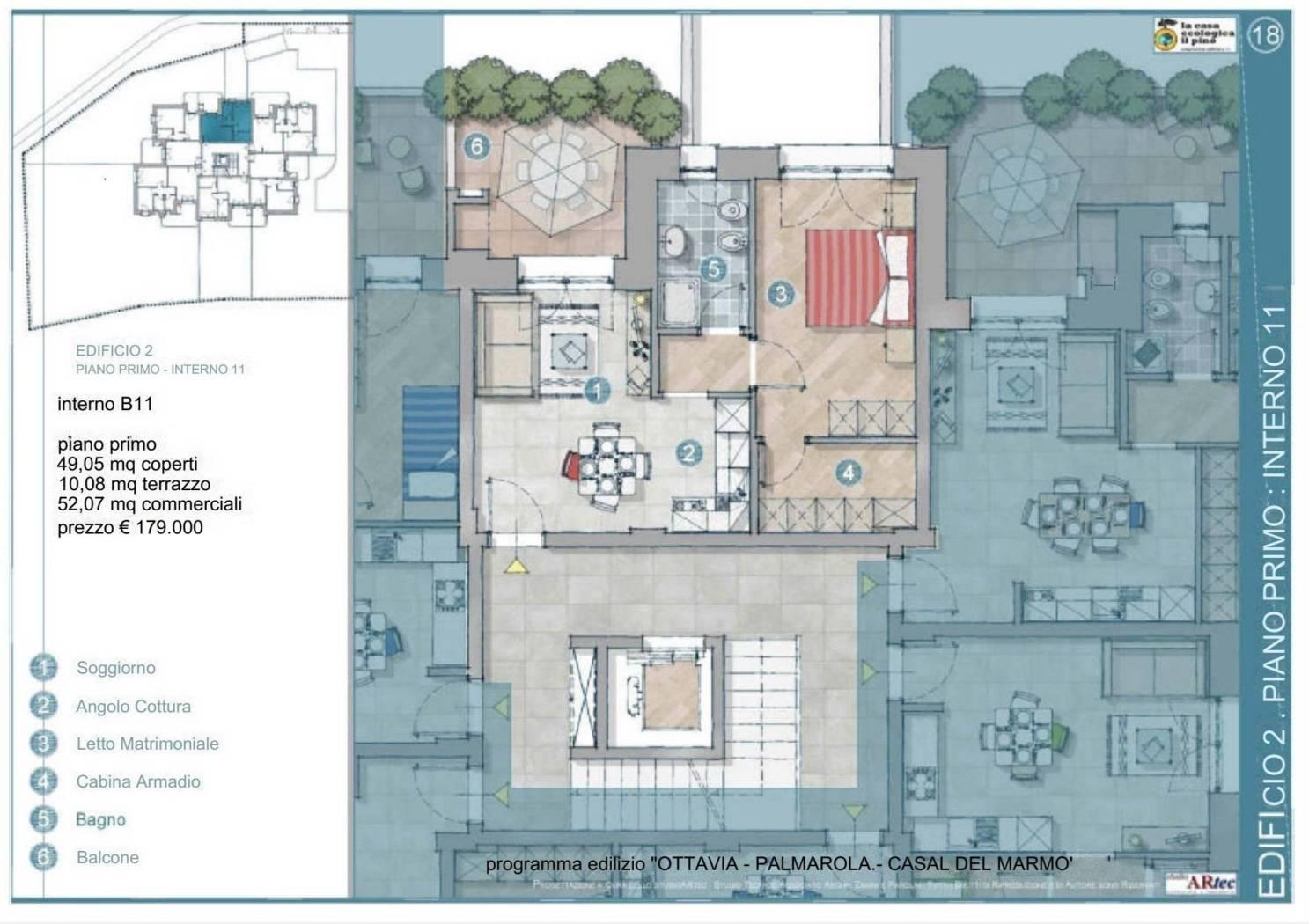 Primo piano € 179.000 CONFRONTA IL PREZZO Ultime disponibilità CONSEGNA 2026, straordinario Complesso Residenziale, composto da due palazzine che ripeteranno il successo ottenuto per il primo comparto adiacente all’area in oggetto, dove stiamo realizzando 40 appartamenti (20 per palazzina) su soli 3 piani. Il capitolato prevede una struttura di ultima generazione ed alcuni accorgimenti tecnologici molto performanti . Ottima la dotazione In particolare, pavimento radiante, climatizzatori montati, serrande elettriche ecc.. Tutto questo concorrerà all’ottenimento di una struttura solida, elegante ed in classe energetica A. la tipologia proposta prevede Soggiorno con Cucina a Vista, Camera da Letto, cabina armadio, bagno, loggia di 10 MQ CIRCA sono disponibili BOX da 15 a 30 mq CANTINE e POSTI AUTO a prezzi incredibili. E’ stato possibile mantenere questo straordinario listino mai a discapito di qualità e tecnologia applicata, ma solo per la natura della compagine che realizzerà l’intervento, che fa capo ad una cooperativa che da anni opera nell'edilizia romana con elevato successo , ogni inziativa è sold out a conferma della bontà dell'opera svolta ( www.lacasaecologicailpino.it) *Le planimetrie sono indicative e possono essere soggette a successive modifiche, non costituiscono elemento contrattuale