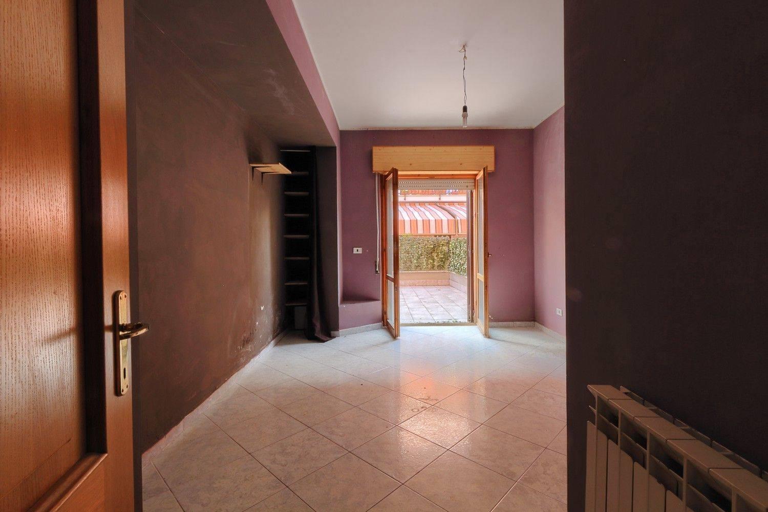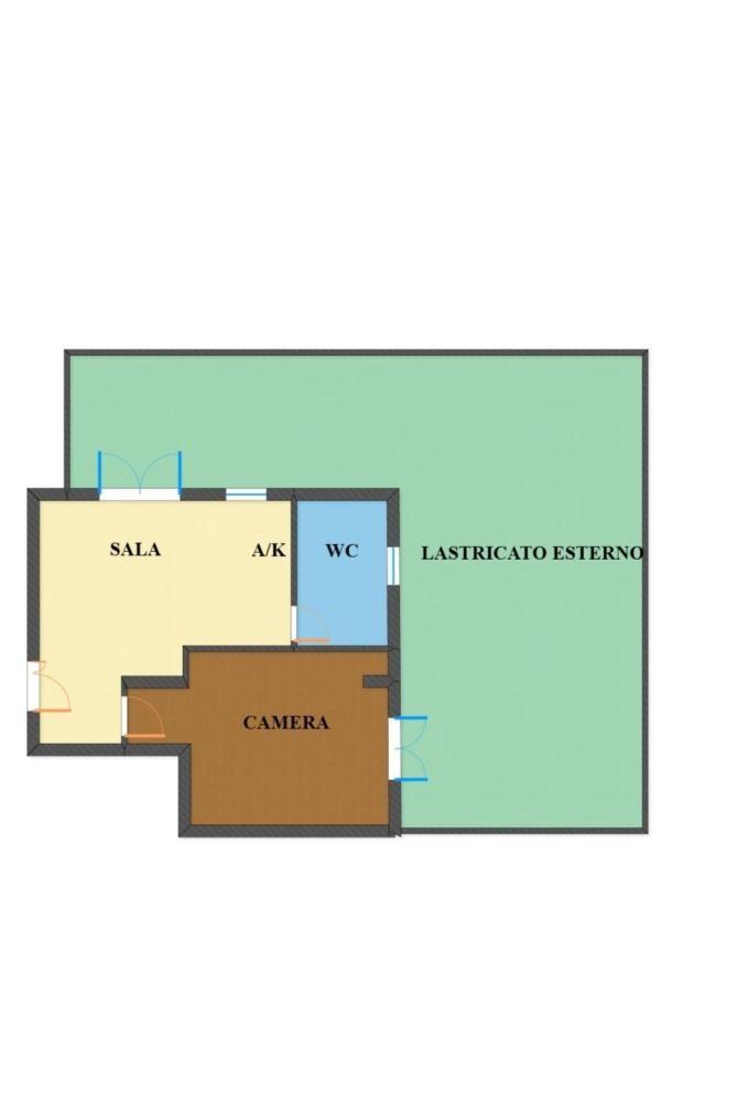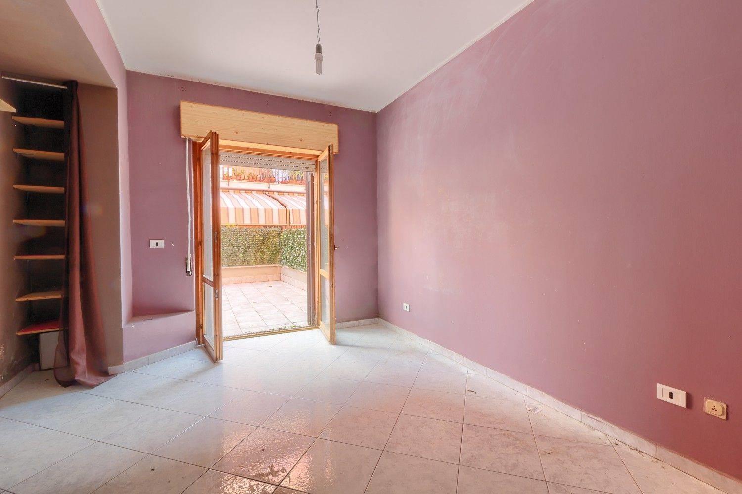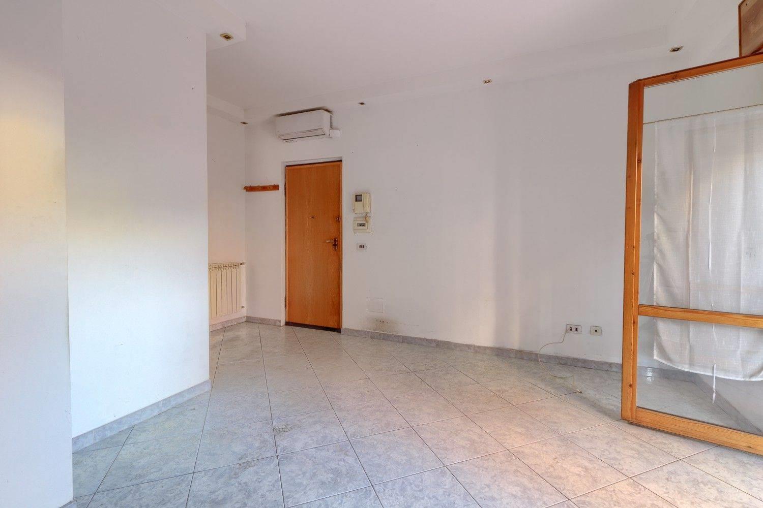 composto da sala con angolo cottura, camera matrimoniale, bagno con doccia, lastricato esterno e box. Palazzina in cortina con ascensore, grate di sicurezza. Da ripulire.SUPERFICI:appartamento 52 mq,lastricato 60 mq,box mq 12.