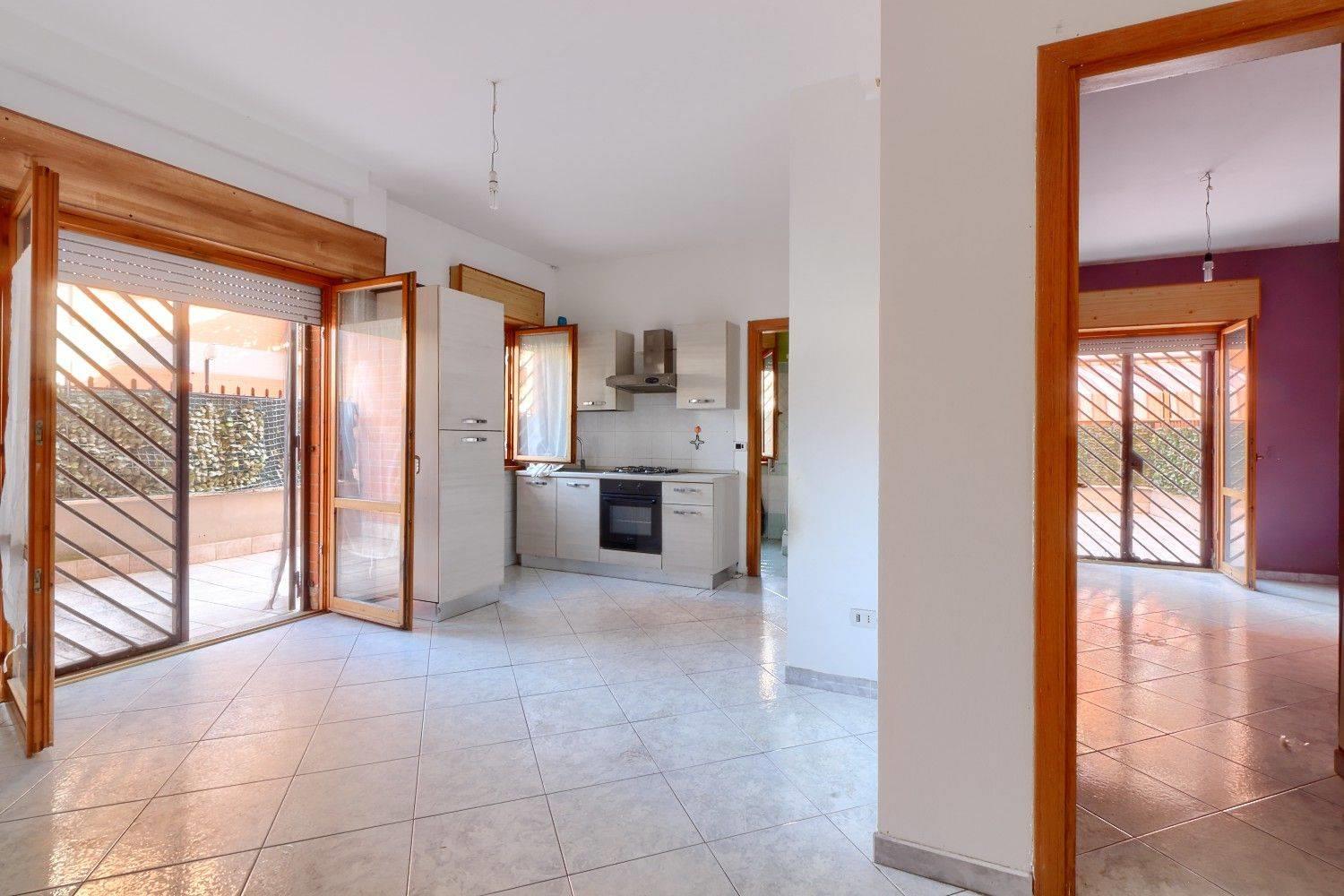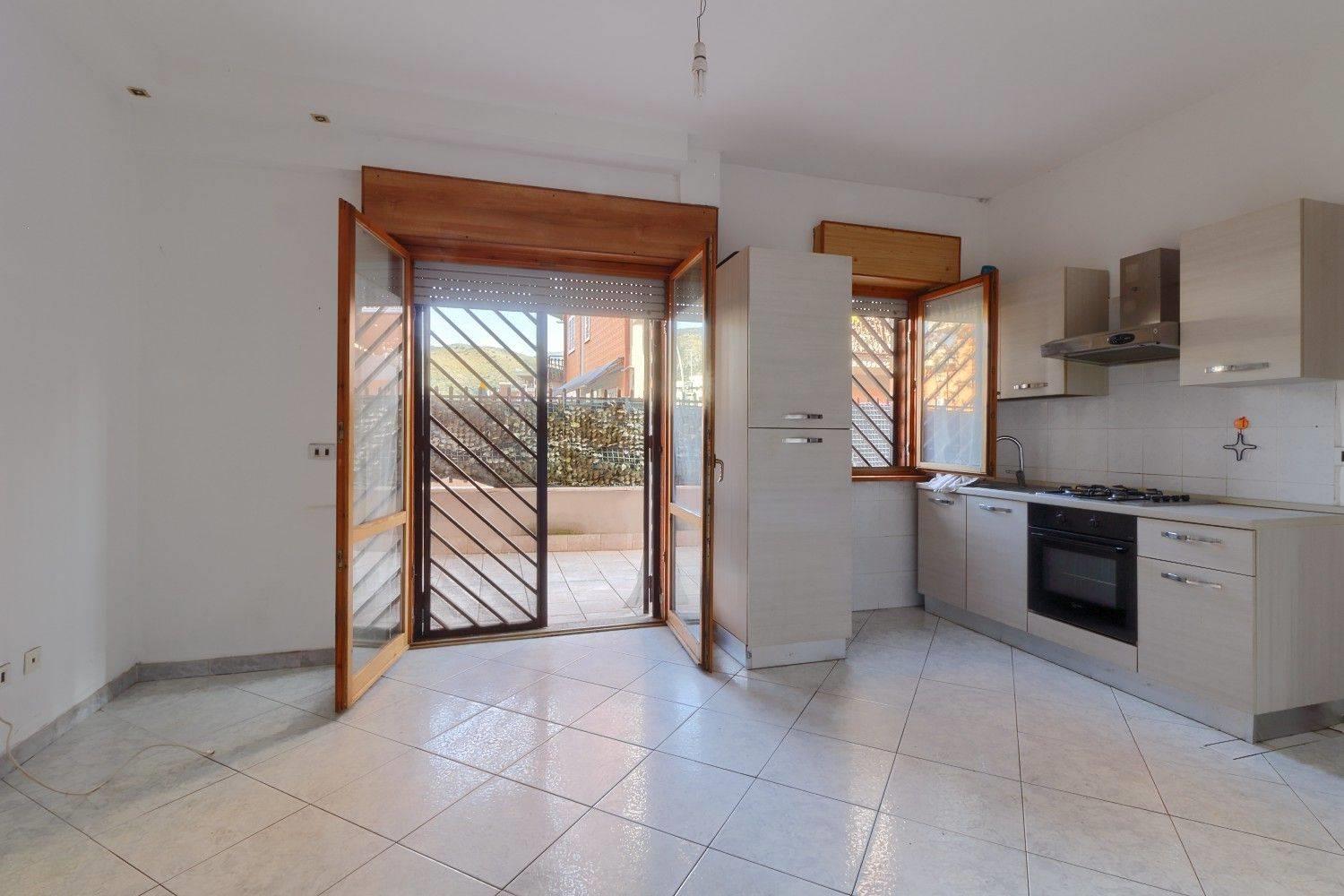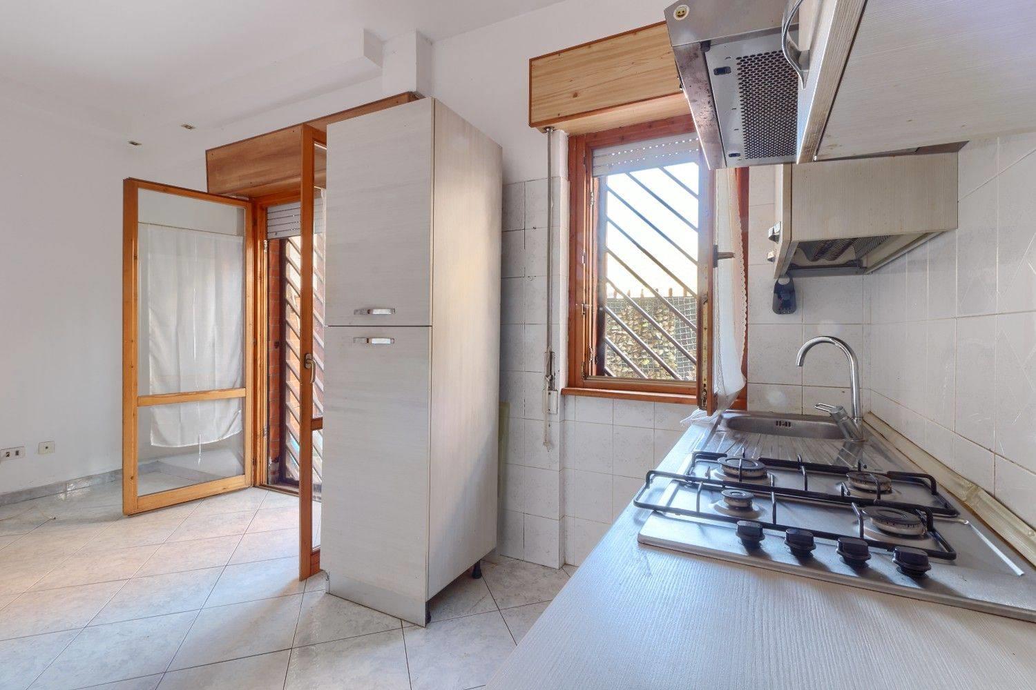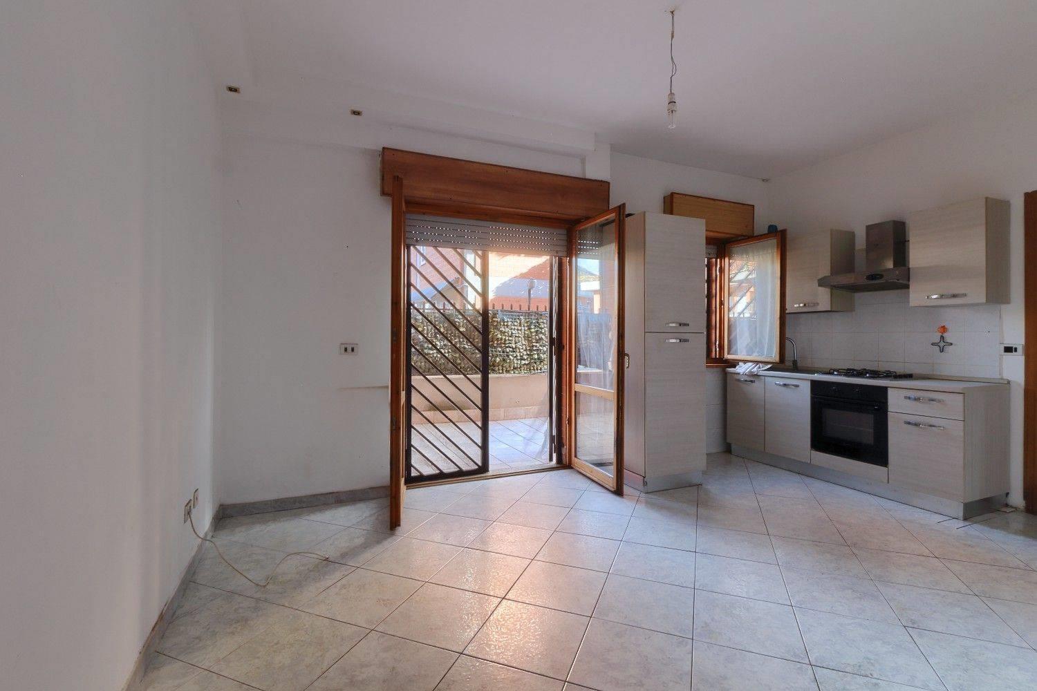 composto da sala con angolo cottura, camera matrimoniale, bagno con doccia, lastricato esterno e box. Palazzina in cortina con ascensore, grate di sicurezza. Da ripulire.SUPERFICI:appartamento 52 mq,lastricato 60 mq,box mq 12.