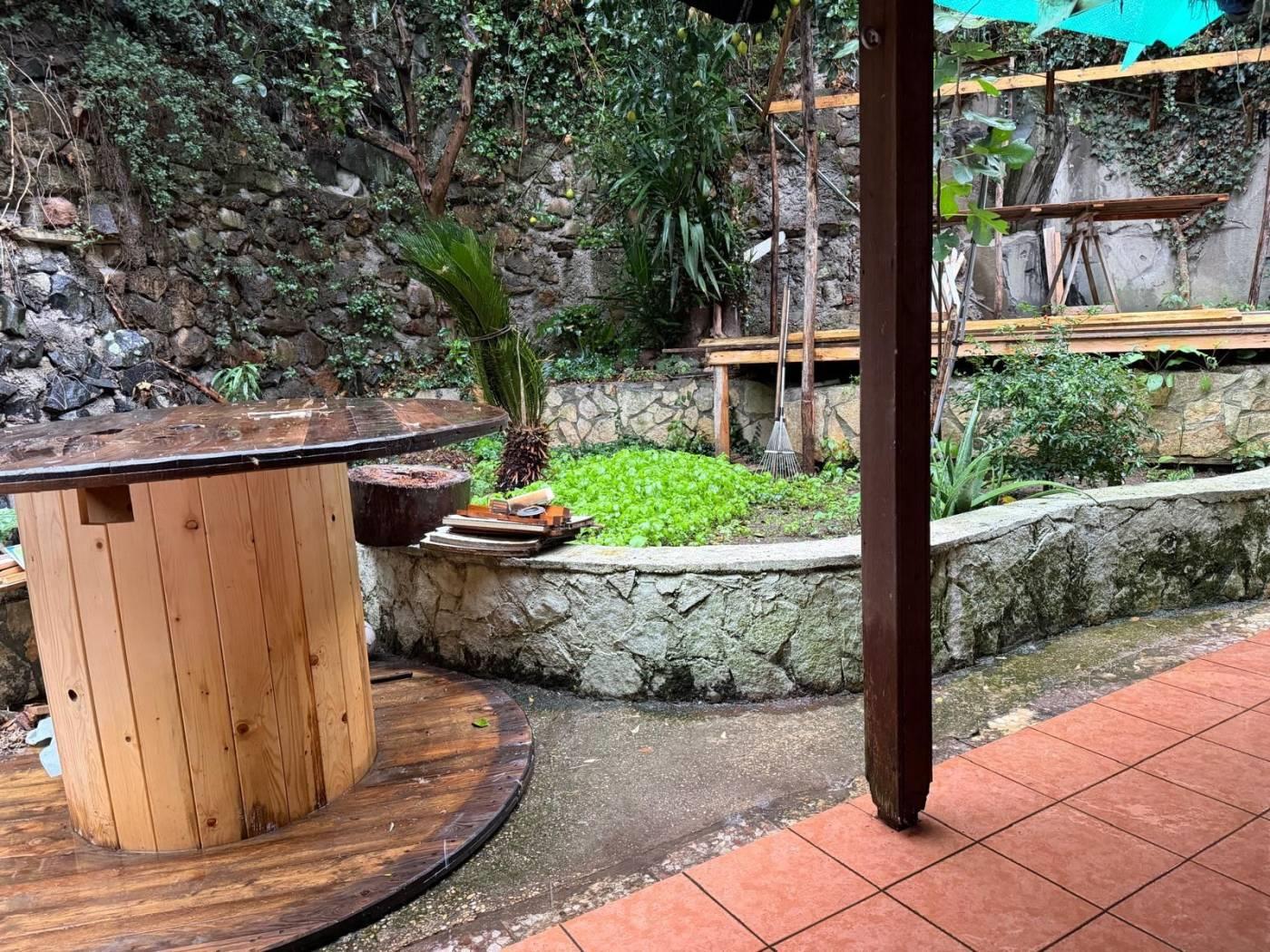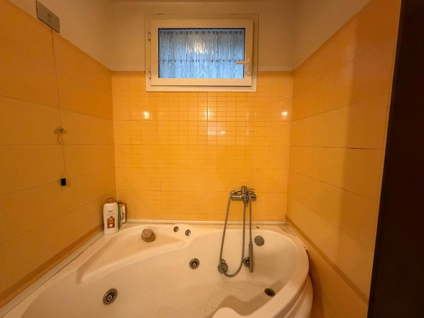 L'ingresso a casa è molto accogliente su un salone di grandi dimensioni con angolo cottura, un piccolo disimpegno conduce al grande bagno con vasca idromassaggio e finestra sul giardino protetta da grate, mentre sul lato destro della porta di ingresso troviamo l'accesso alla camera matrimoniale di forma rettangolare con finestra sul giardino.