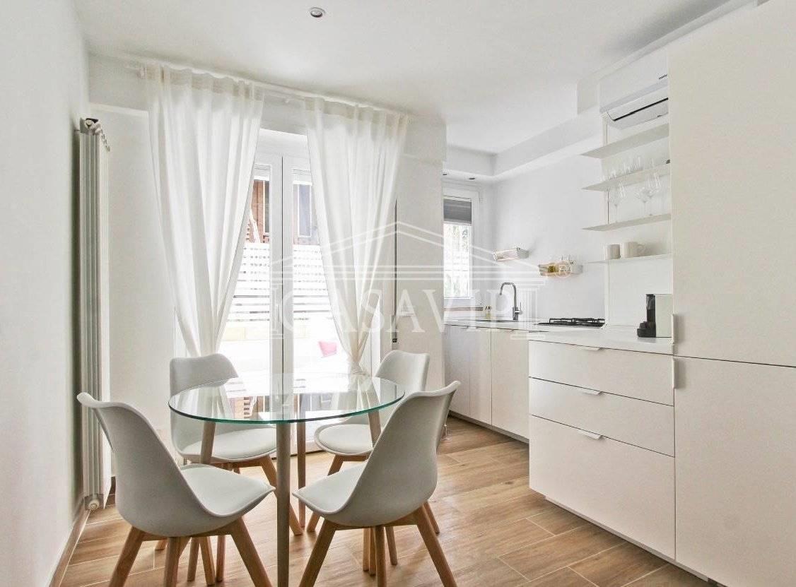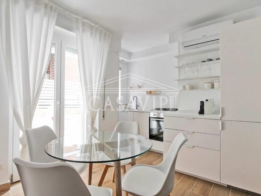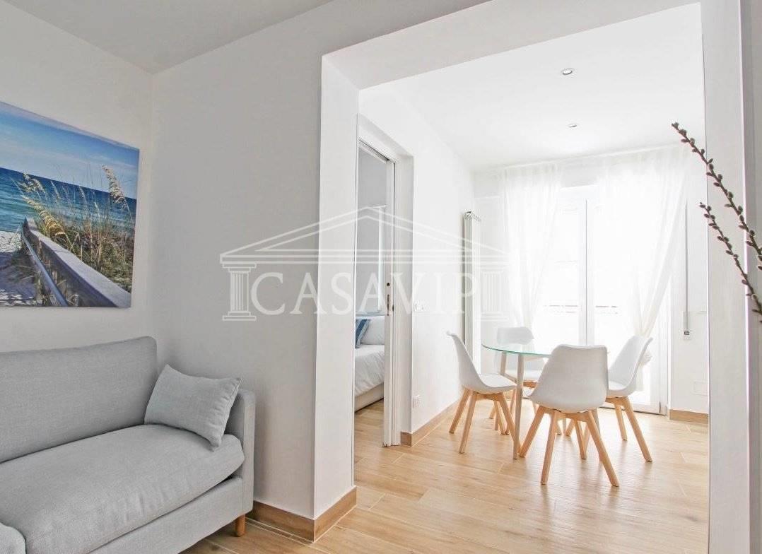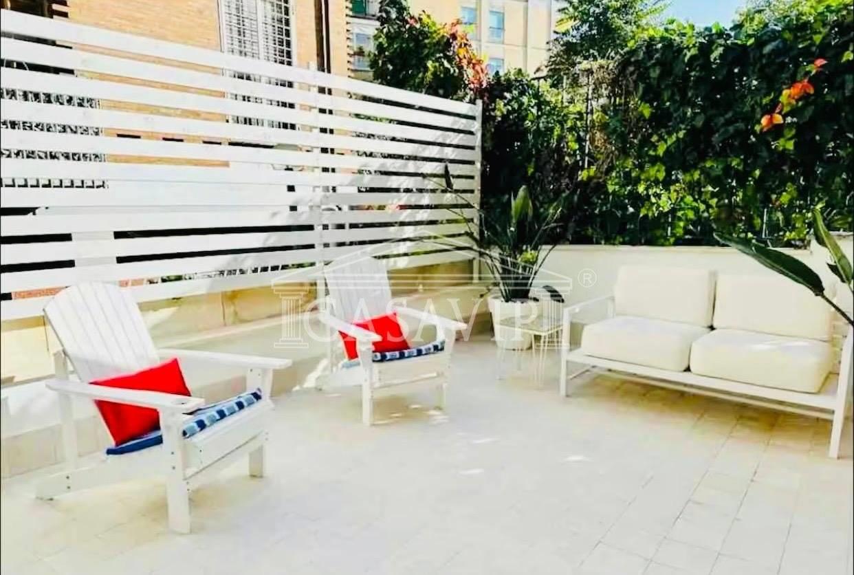 In affitto elegante bilocale completamente ristrutturato, composto da 40mq interni e una splendida terrazza di 45mq, anch’essa rinnovata e attrezzata con ogni comfort.