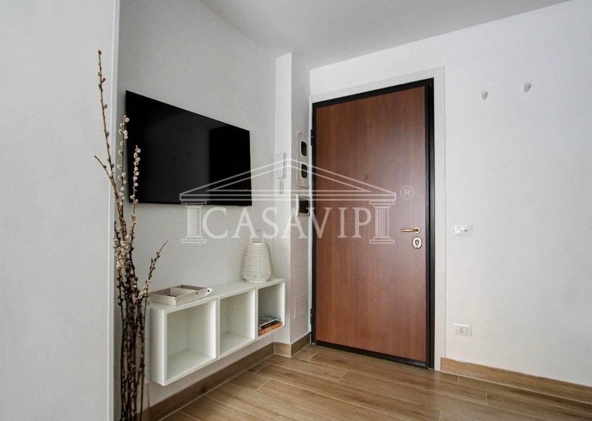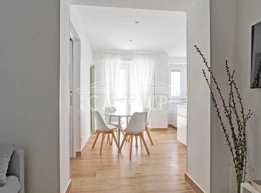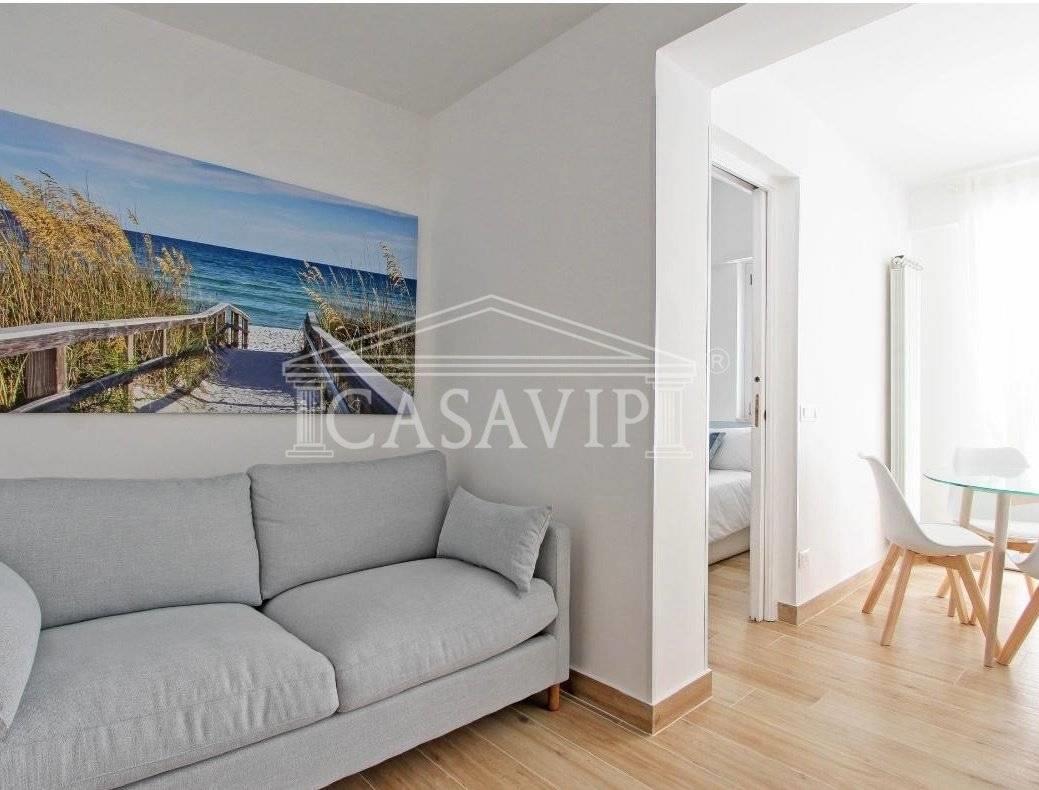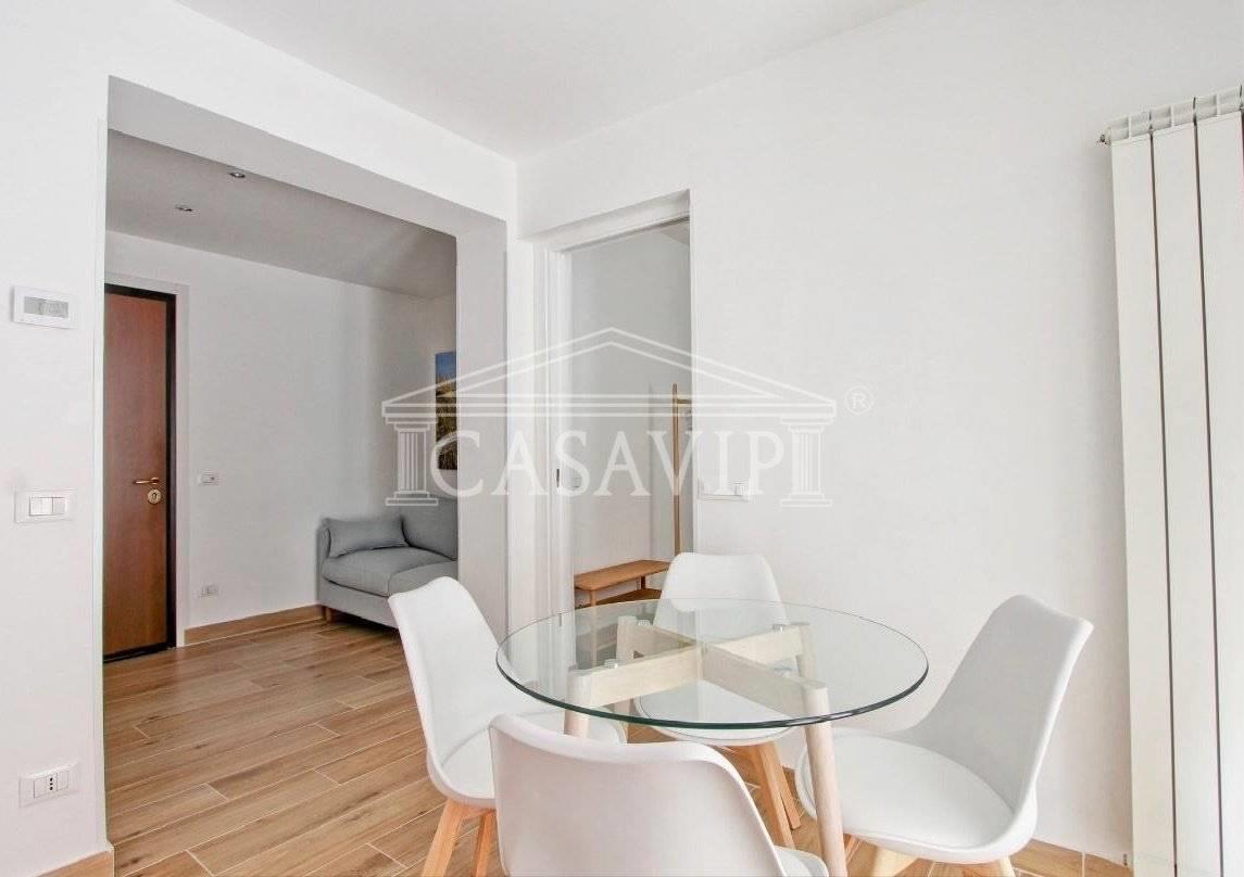 In affitto elegante bilocale completamente ristrutturato, composto da 40mq interni e una splendida terrazza di 45mq, anch’essa rinnovata e attrezzata con ogni comfort.