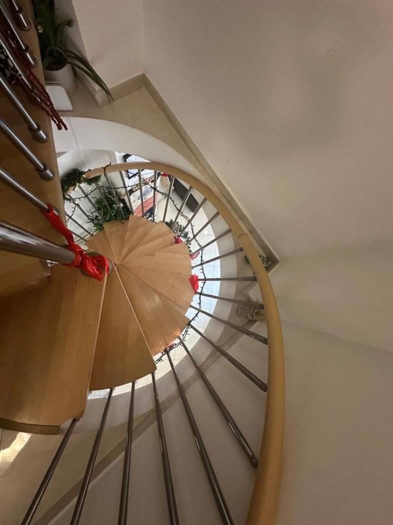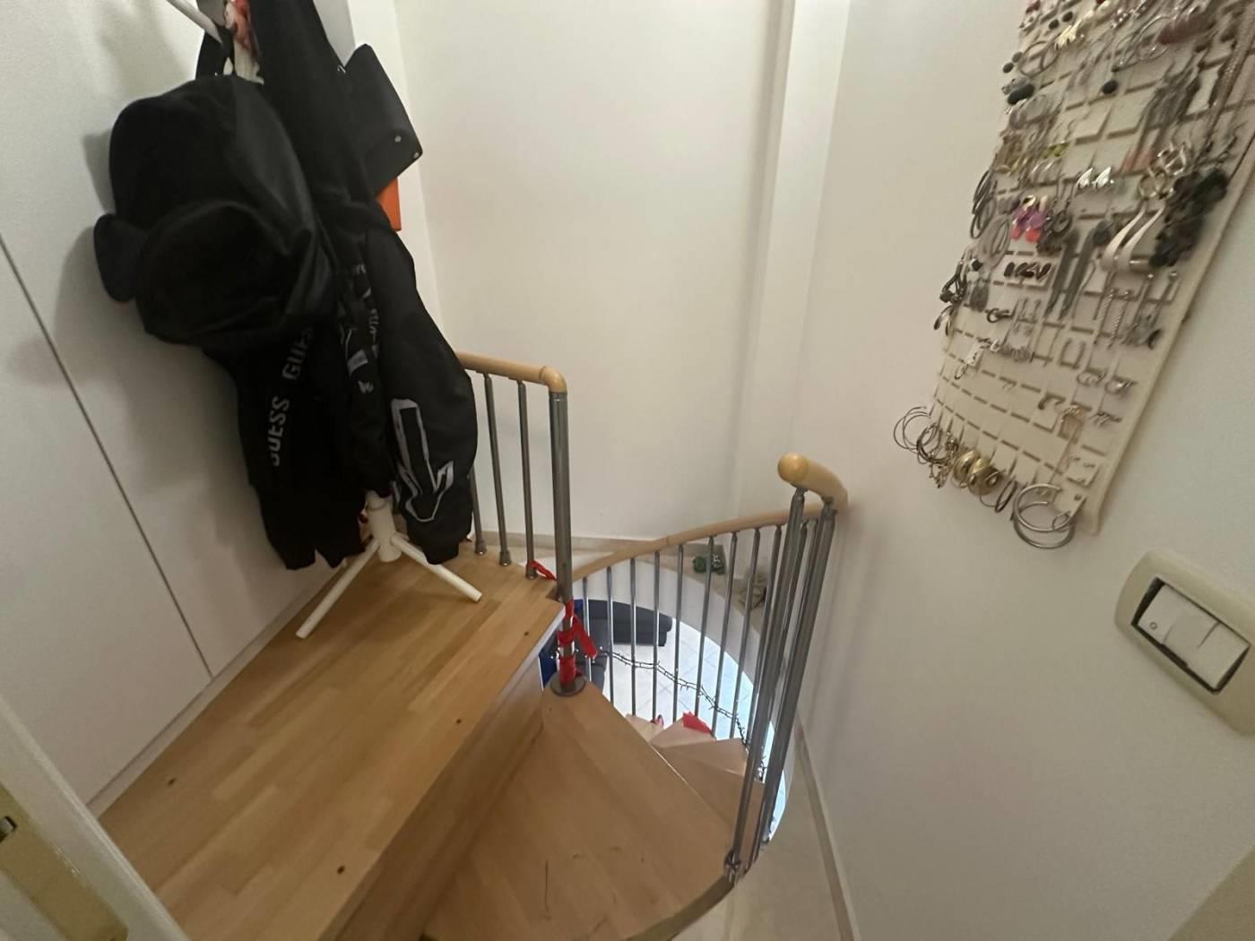 Una scala a chiocciola collega il piano superiore, dove si sviluppa la camera da letto, riservata e silenziosa, dotata di bagno en suite.