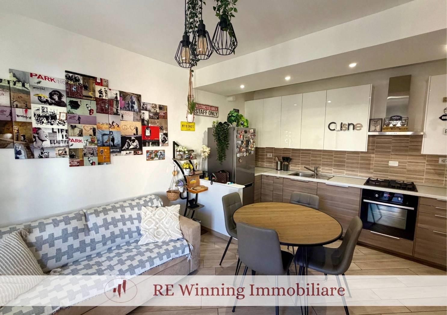 L’immobile è composto da ingresso su soggiorno con cucina a vista arredata, disimpegno con comodo armadio a muro, camera matrimoniale, bagno con box doccia e terrazzino condominiale ad uso praticamente esclusivo.