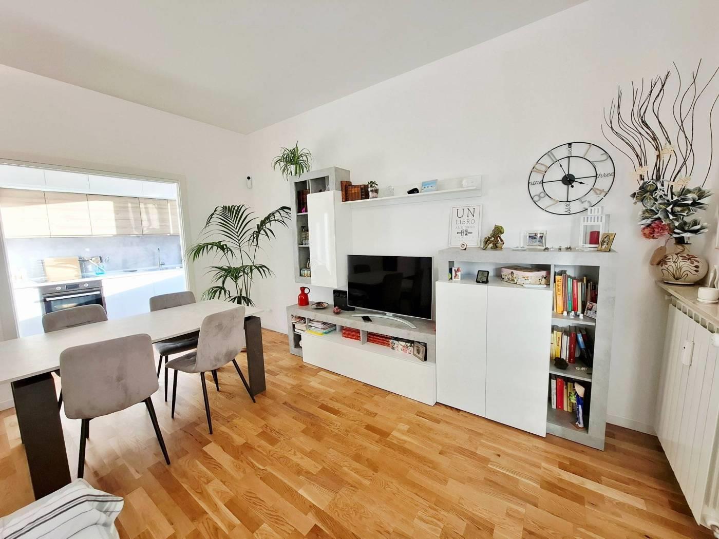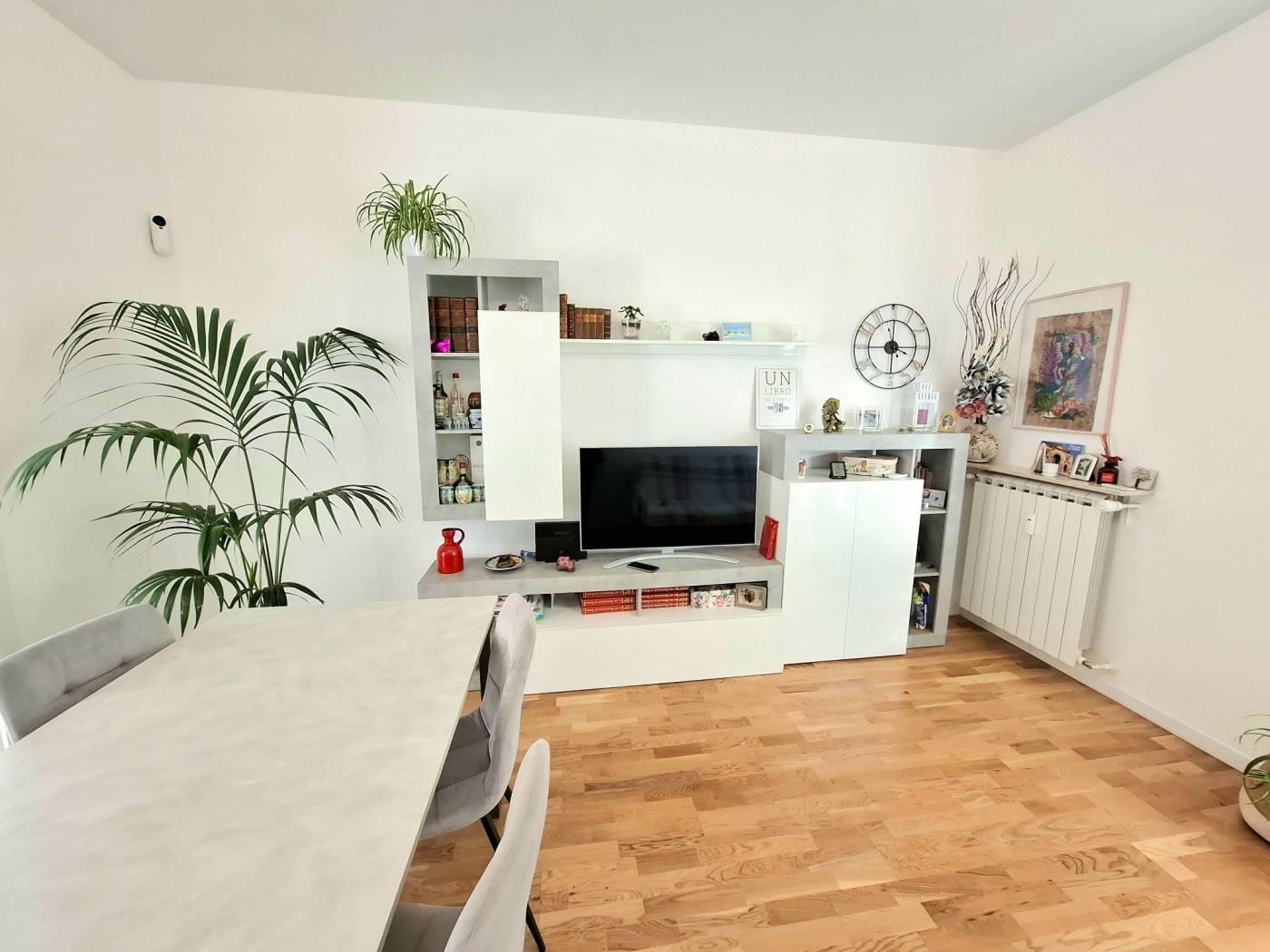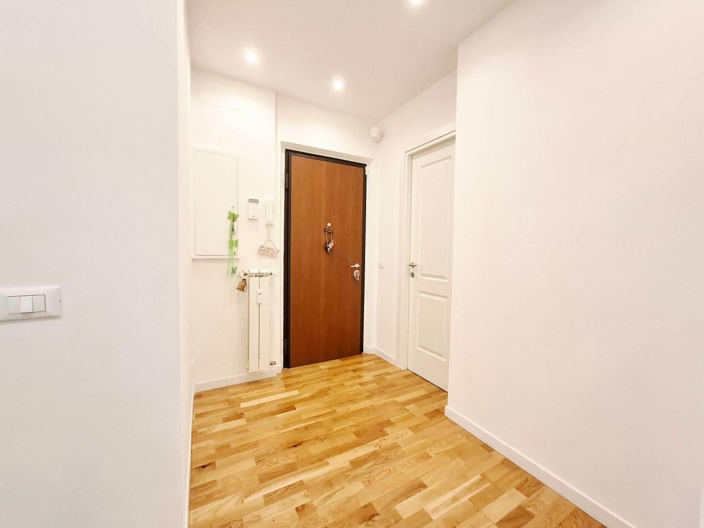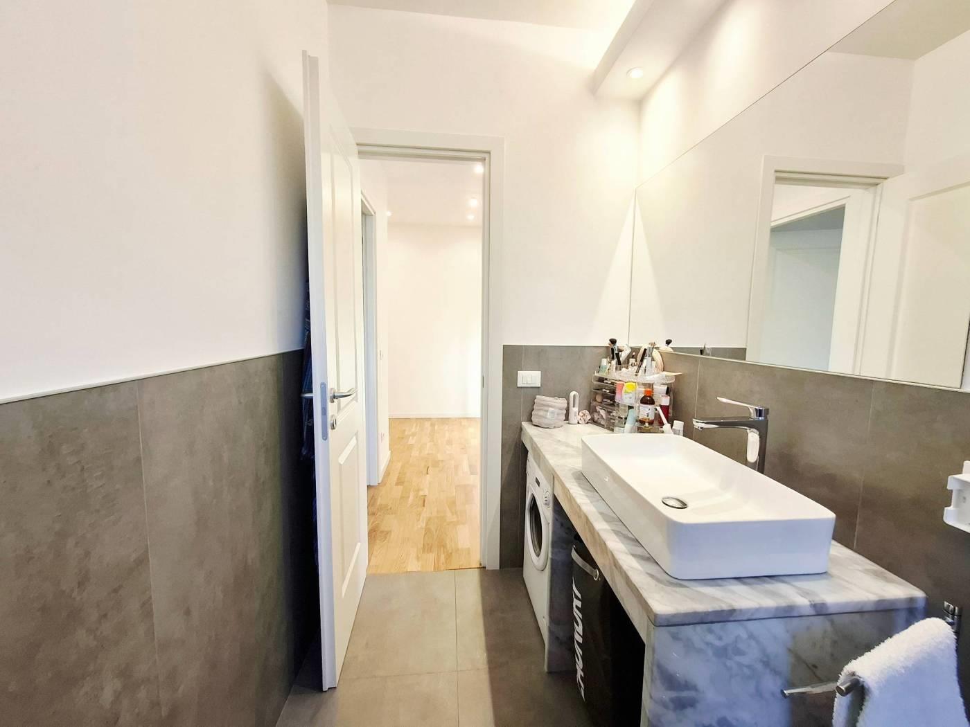 La proprietà è completata da un'ampia cantina al piano seminterrato e dalla possibilità di usufruire del posto auto non assegnato all'interno di un'area condominiale delimitata.