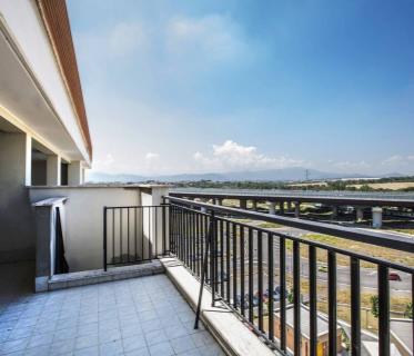 La soluzione presenta un luminoso soggiorno con cucina a vista, un disimpegno da cui si accede al bagno finestrato con ampia doccia e alla camera matrimoniale. La tipologia comprende un terrazzo frontale con armadiatura esterna in cui è presente la caldaia e l'allaccio per la lavatrice.