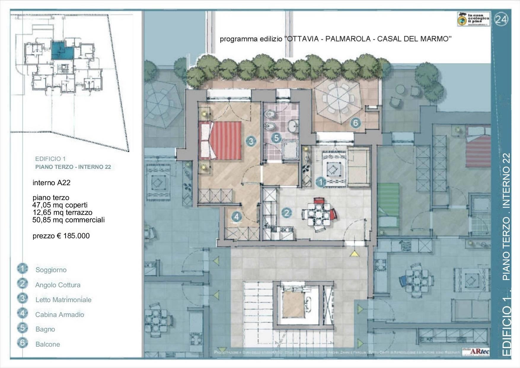 La posizione è ottima, poiché è dentro il Grande Raccordo Anulare (vicina all'uscita Casal del Marmo), è vicina alla fermata Ottavia della linea FL1 (che arriva a S.Pietro, trastevere, Ostiense, Termini, Tiburtina) ed è inserita in un’area perfettamente urbanizzata e ricca di servizi e di attività commerciali.