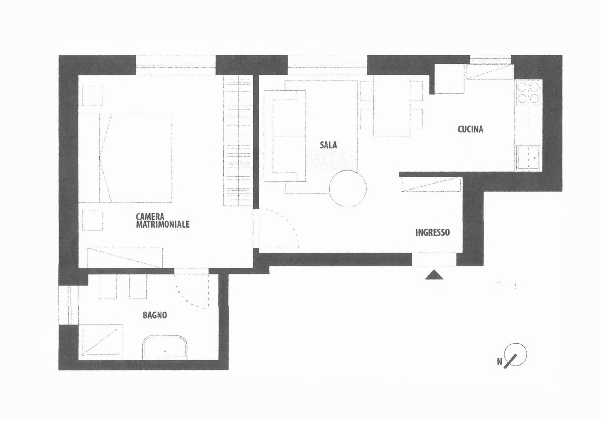 Si compone di ingresso, soggiorno con zona pranzo e cucina a vista, camera matrimoniale, bagno con finestra.