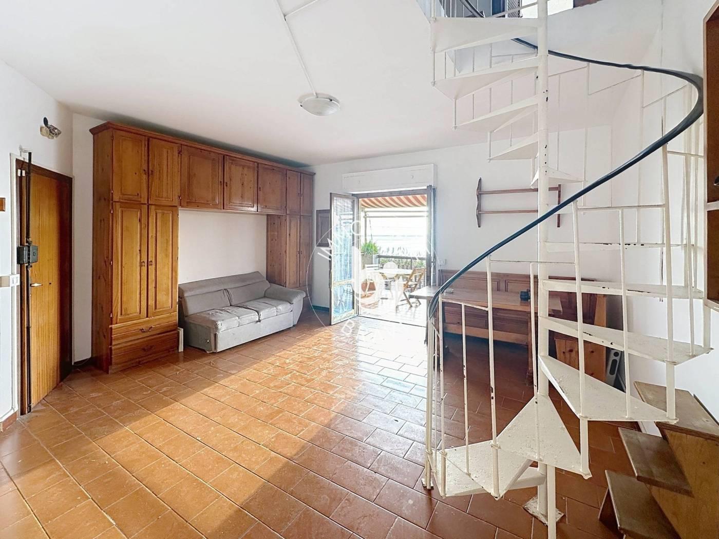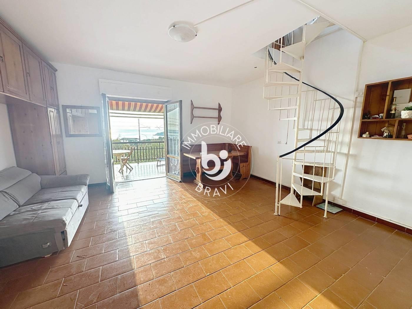 Immobiliare Bravi propone in vendita, in zona Quartaccia, un appartamento VISTA MARE di circa 65 mq disposto su due livelli, con ingresso esclusivo attraverso un giardinetto privato di circa 40 mq, dotato di patio dal quale si accede alla scala condominiale. L’immobile si trova al secondo piano di una palazzina senza ascensore ed è composto, al primo livello, da un ambiente salone/camera, una cucina abitabile, un bagno, un terrazzo VISTA MARE. Al secondo livello è presente una soffitta/mansarda con balcone e splendida VISTA MARE. Completa la proprietà un terrazzo vista mare e un posto auto di proprietà.
