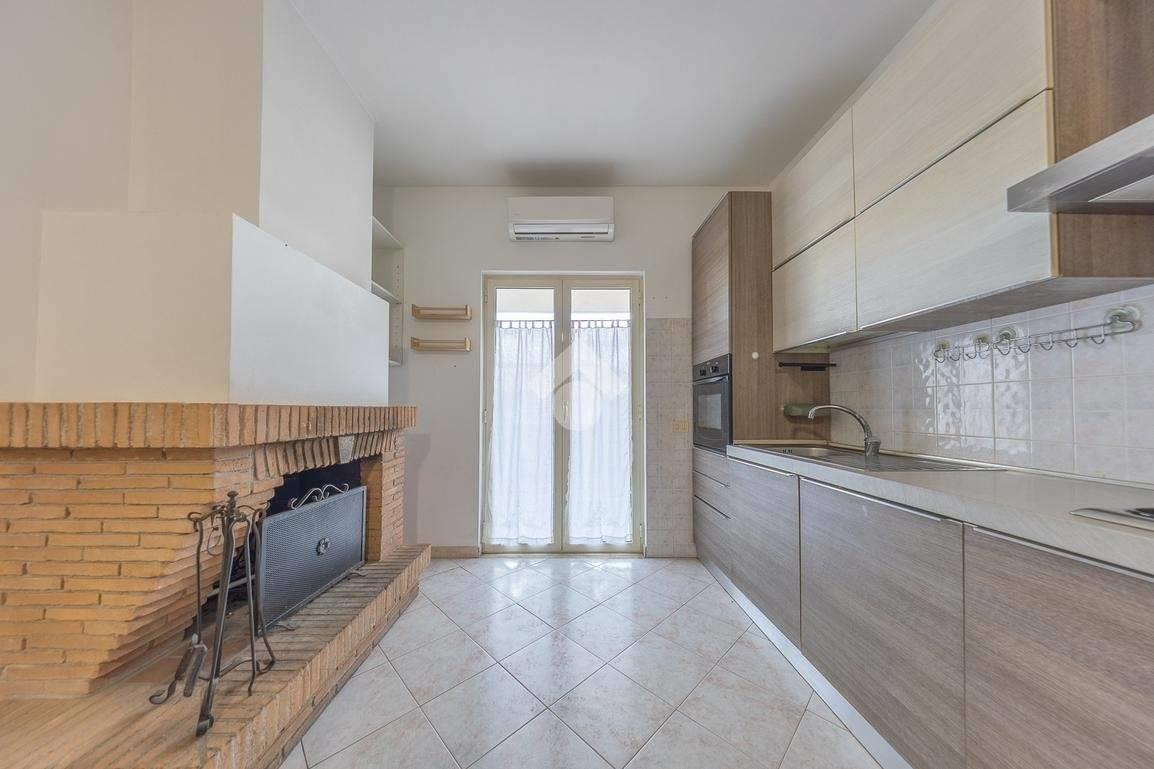 L’ingresso conduce a una zona living ampia e luminosa, arricchita da camino, con uscita sul terrazzo coperto di circa 16 mq, spazio esterno vivibile e protetto, ideale per una zona pranzo o relax utilizzabile in diverse stagioni.