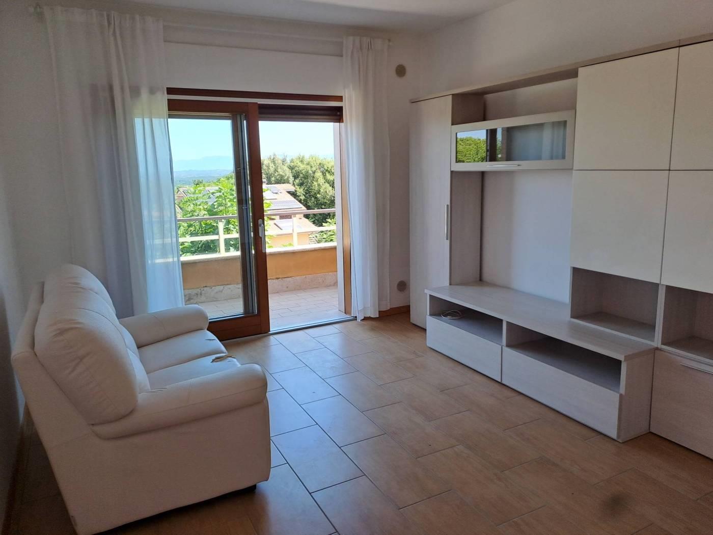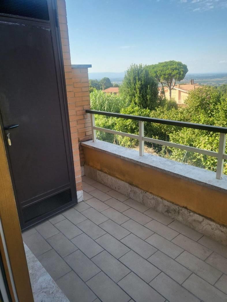 Campagnano di Roma in posizione panoramica sul monte Soratte e il centro del paese vendiamo appartamento posto al primo piano con accesso da scala esterna composto da salone con balcone angolo cottura camera bagno con balcone di servizio in comprensorio ultimato nel 2011 dotato di accesso con cancello automatico video citofono cappotto termico infissi in legno con vetrocamera impianto riscaldamento autonomo dotato di posto auto scoperto all'interno del condominio. Attualmente locato ad € 500/mensili.