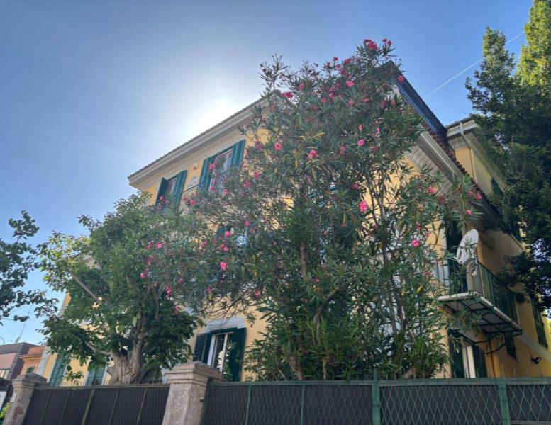 L'appartamento, al piano seminterrato di un villino liberty è così composto: doppio ingresso, due camere, cucina, due bagni e corte esterna.