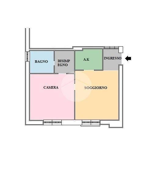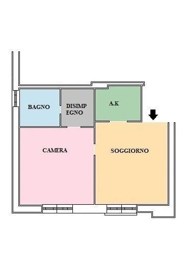 L'immobile internamente presenta infissi in alluminio con vetrocamera ed è composto da un ingresso che conduce al soggiorno con angolo cottura, proseguendo troviamo la camera da letto matrimoniale con disimpegno che dà accesso al bagno completo con doccia e finestra.