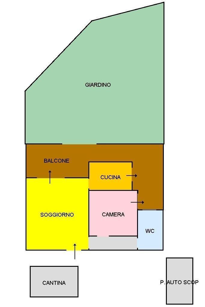 Situato al piano terra, questo immobile è composto da un soggiorno a vista, un cucinotto, camera e bagno.
