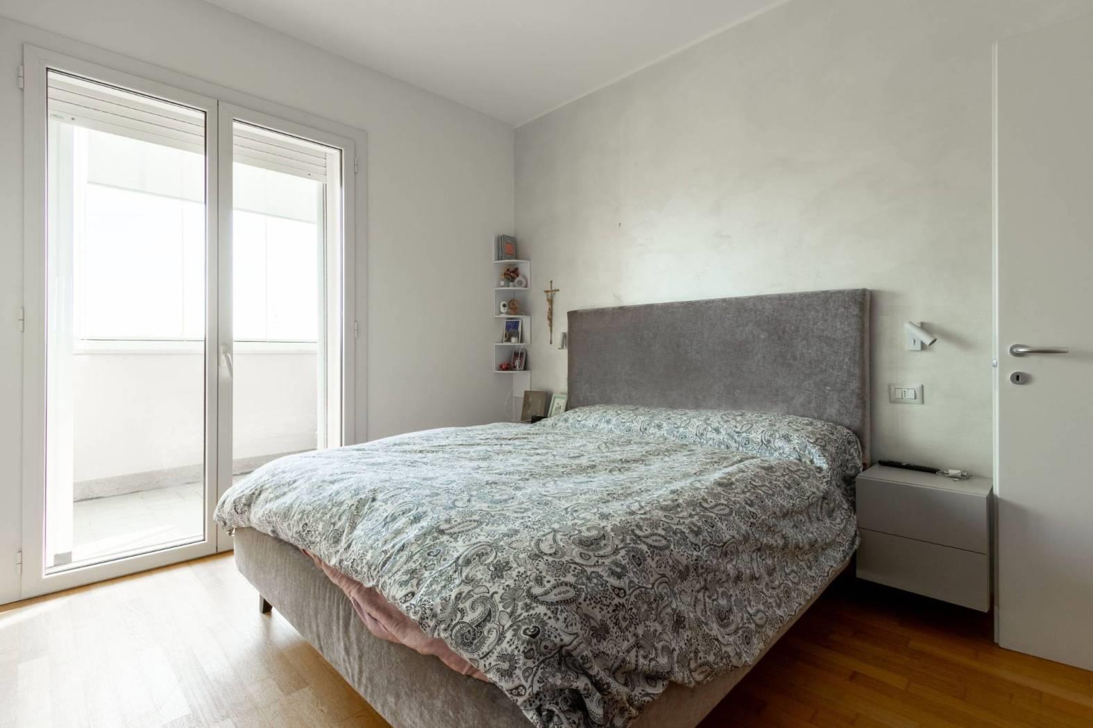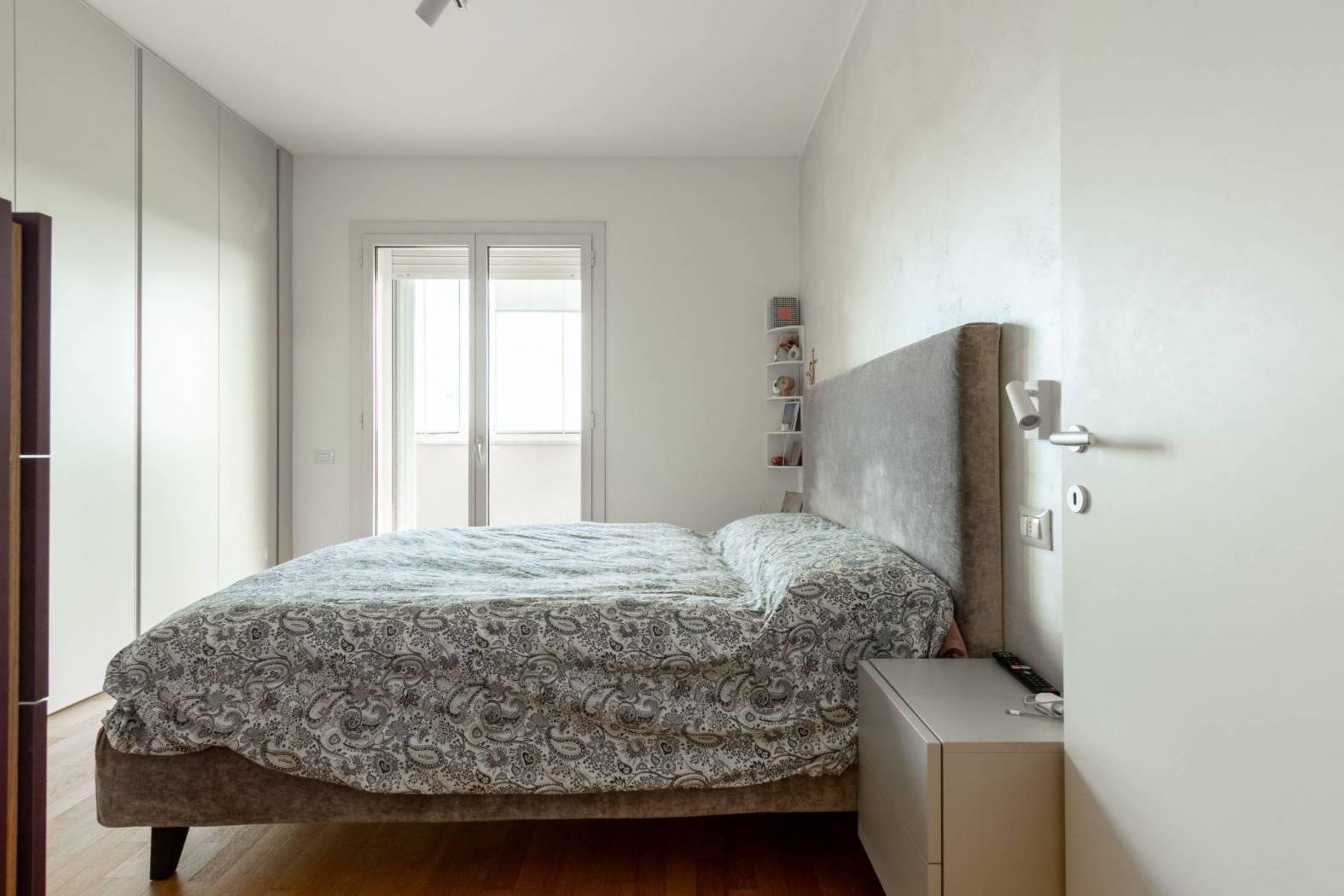 La zona notte, riservata e silenziosa, ospita una camera da letto impreziosita da un importante armadio su misura a tutta altezza, che occupa un’intera parete: una soluzione elegante e altamente funzionale, capace di offrire grande capacità contenitiva mantenendo ordine e pulizia estetica. Un elemento distintivo che valorizza ulteriormente l’immobile. Il bagno, moderno e funzionale, completa l’abitazione con gusto e praticità.