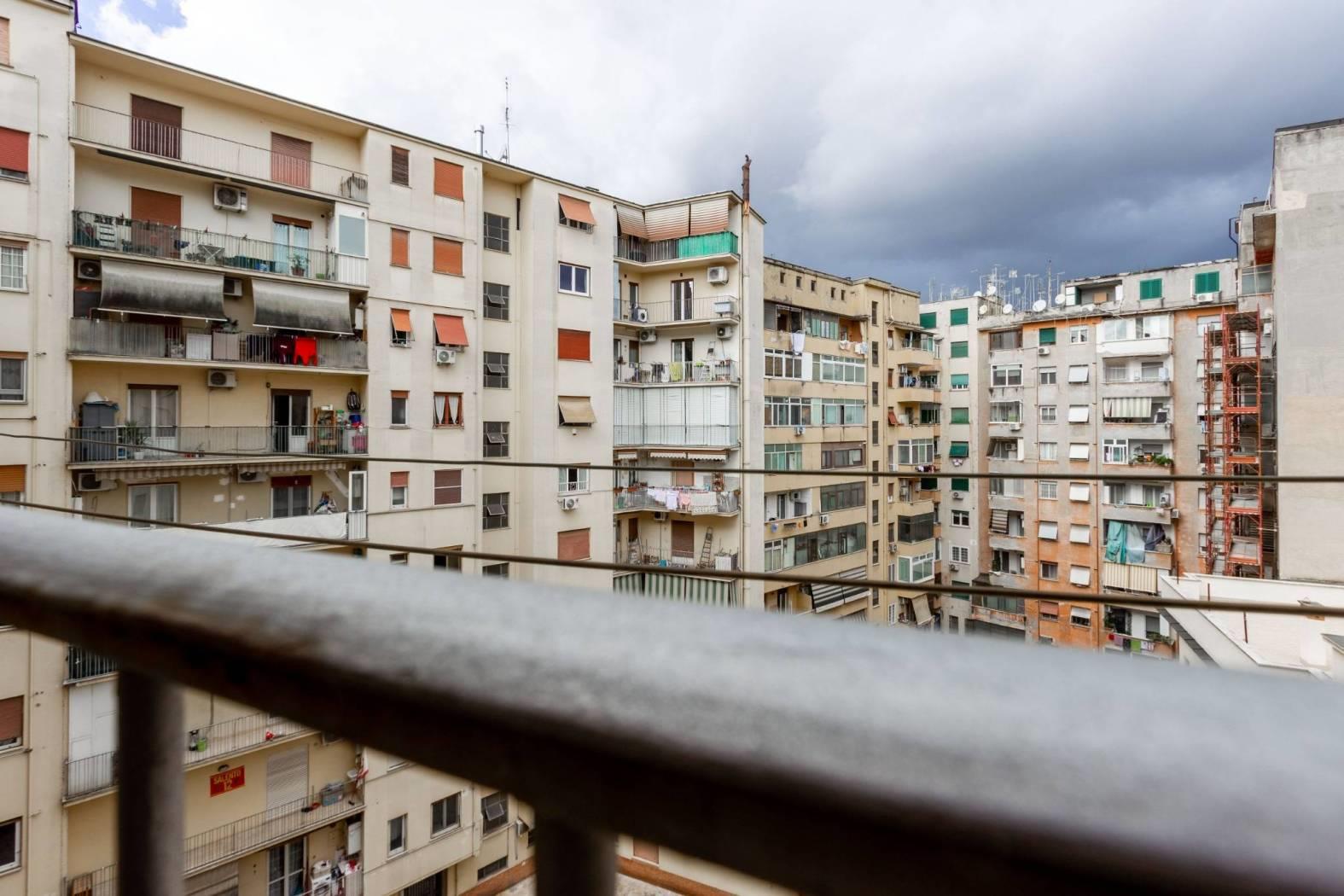 Il soggiorno, vero cuore della casa, gode di un balcone con affaccio sulla piazza principale del quartiere, luogo simbolo della vita quotidiana, animato da persone, attività e servizi: uno scorcio vivo e piacevole che regala luce e carattere all’ambiente.