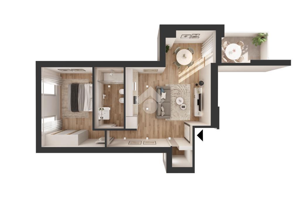 L'immobile è composto da un soggiorno a vista con angolo cottura di circa 26 mq, camera, bagno e balcone abitabile. GLI IMMOBILI SONO ULTIMATI E COMPLETAMENTE ARREDATI COME NELLE FOTO ED IN PRONTA CONSEGNA.