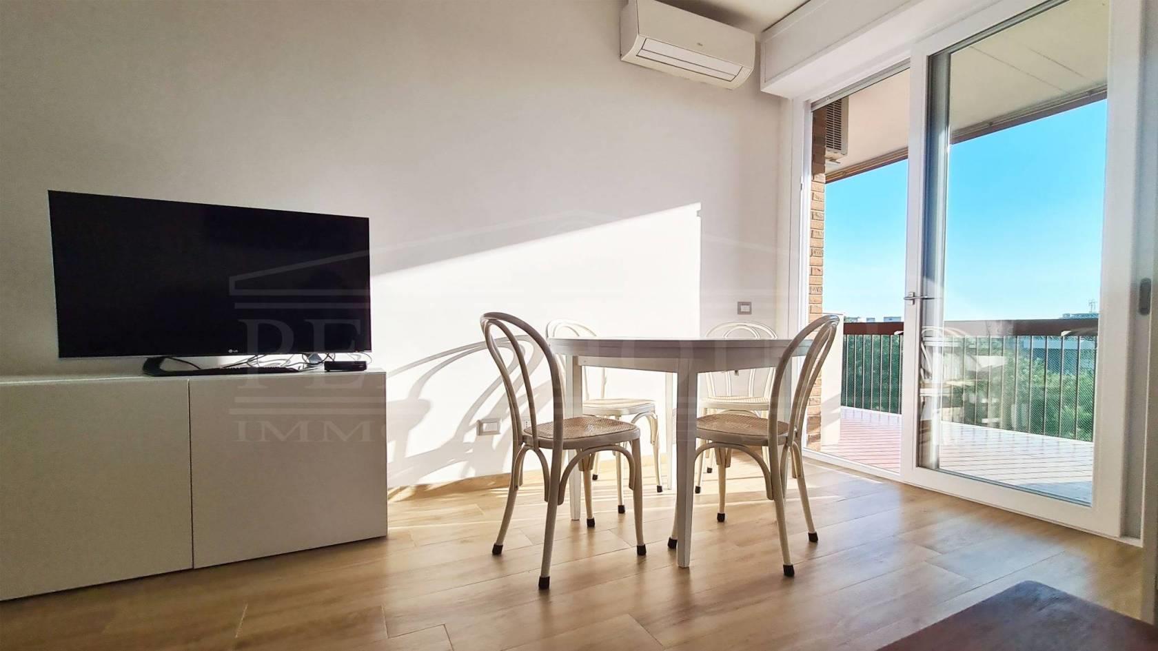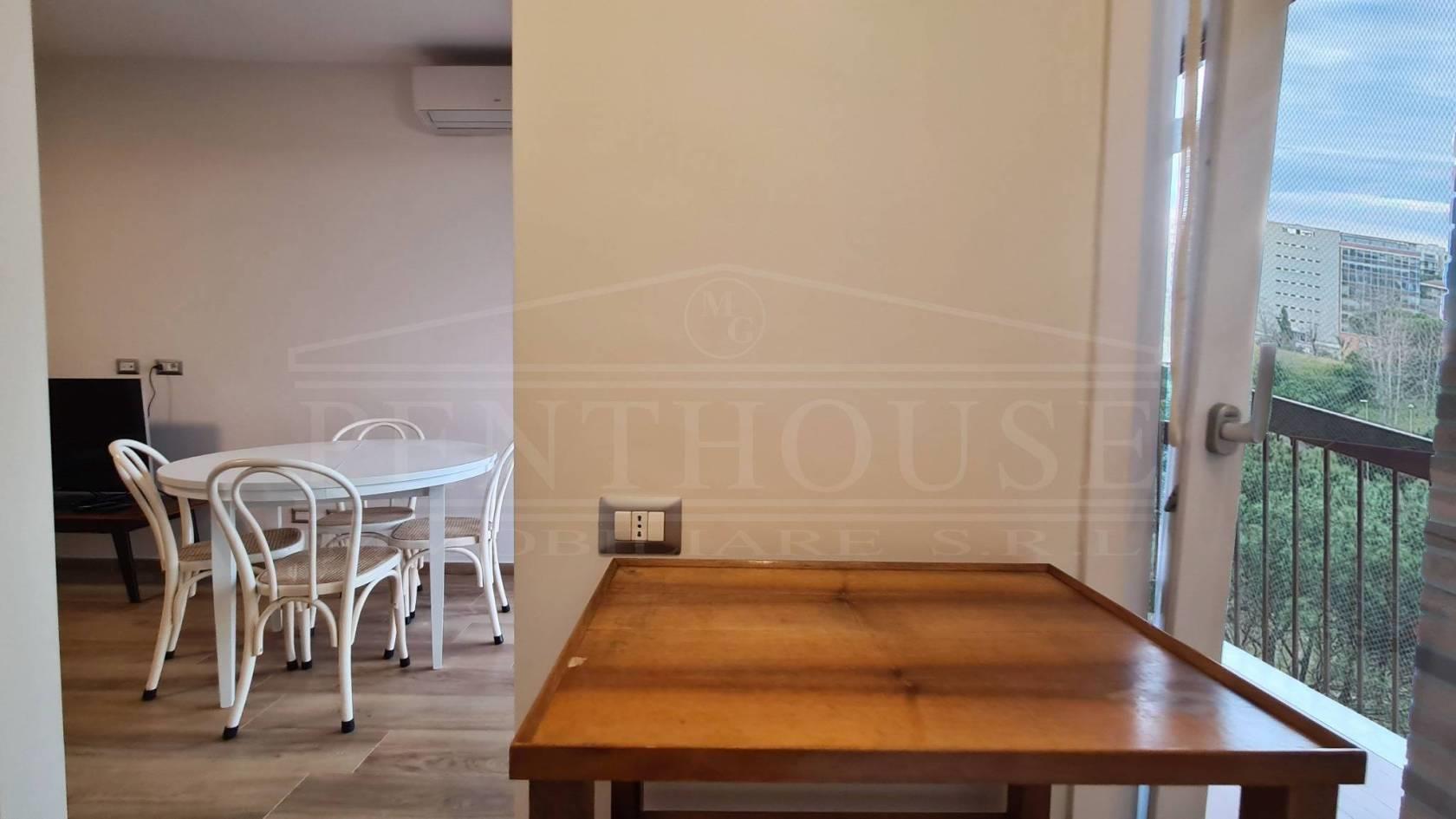 Eur Torrino, Via Monte dei Nove Draghi: Proponiamo in locazione un panoramico appartamento disponibile da subito, completamente ristrutturato e arredato. L'immobile si trova al 6° piano di un condominio dotato di ascensore. Internamente, l'appartamento è composto da:Soggiorno con cucina attrezzata, camera da letto, bagno ristrutturato, finestrato con box doccia, Il soggiorno e la camera da letto sono entrambi dotati di uscita sul terrazzo abitabile con ripostiglio/lavatrice. Dotazioni e accessori: Pavimenti in gres porcellanato effetto legno, infissi in PVC con doppi vetri, nuove tende da sole, aria condizionata, porta blindata. Completa la proprietà un posto auto nel garage condominiale e una cantina.